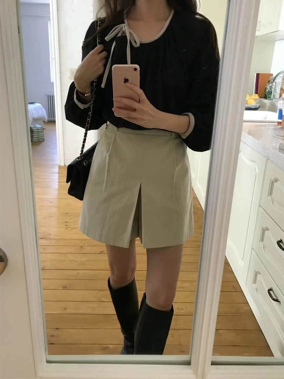 棉 拉鍊穿脫 是褲裙 Aline顯瘦 有口袋 宋宋穿S合適