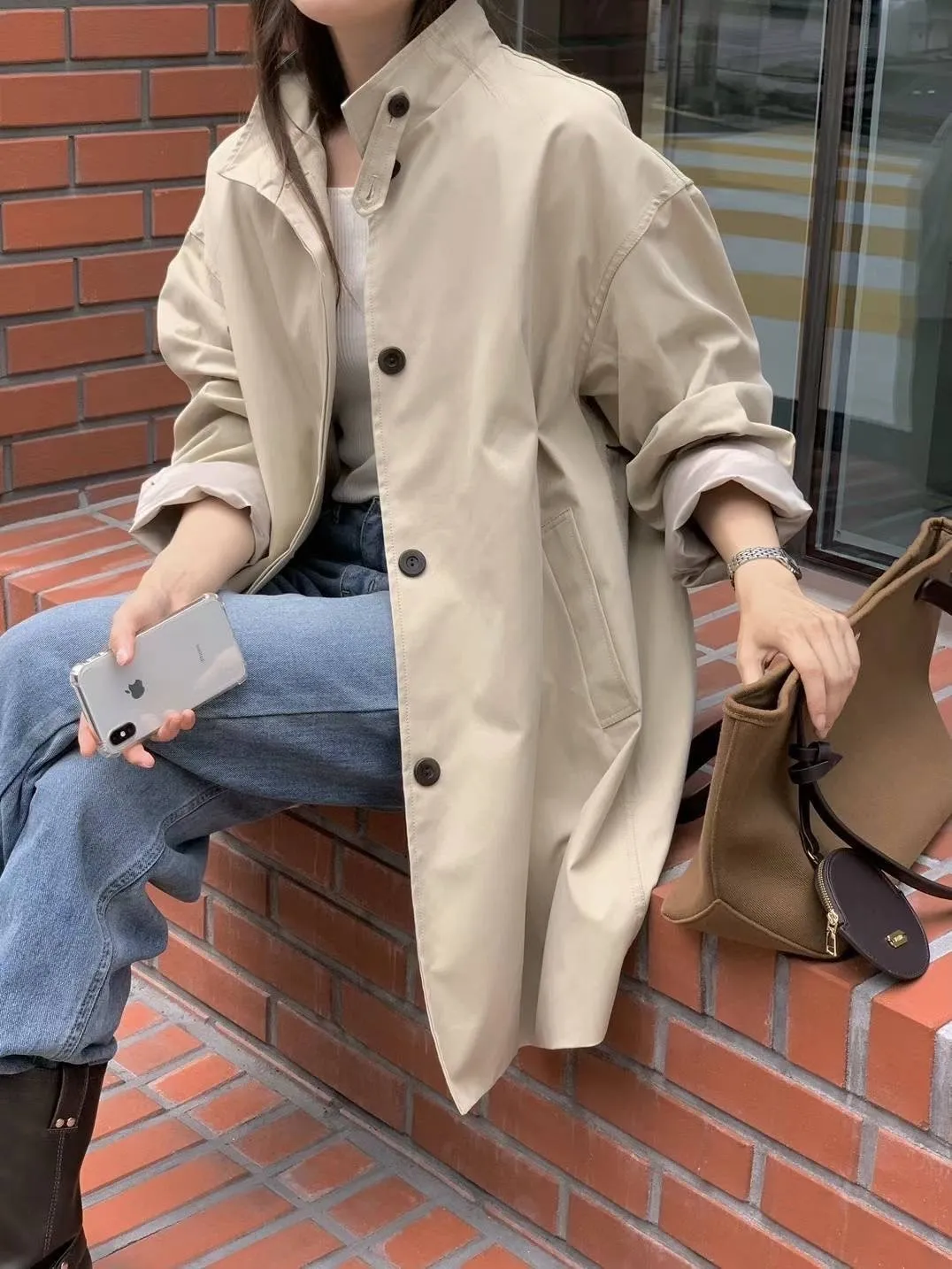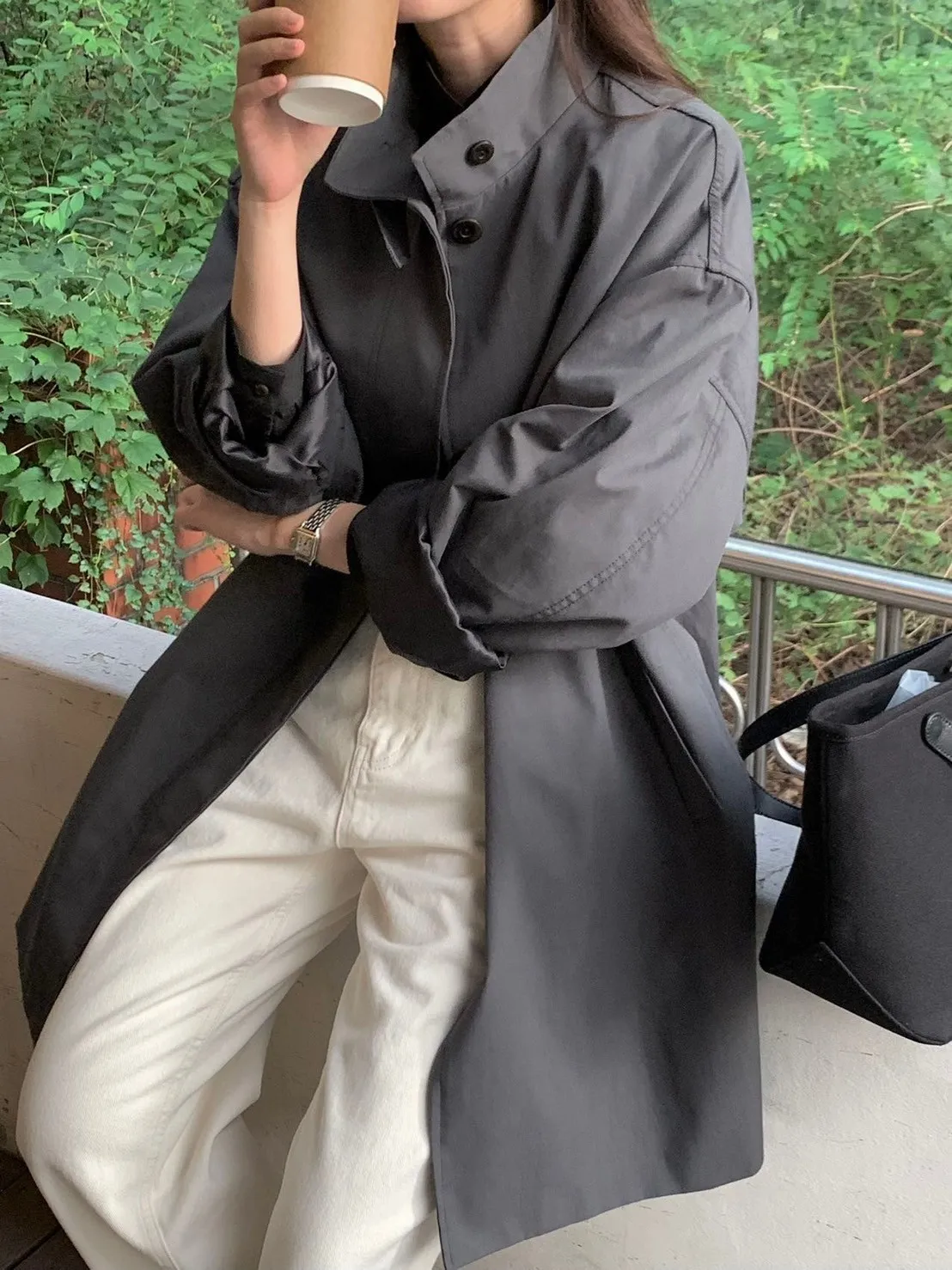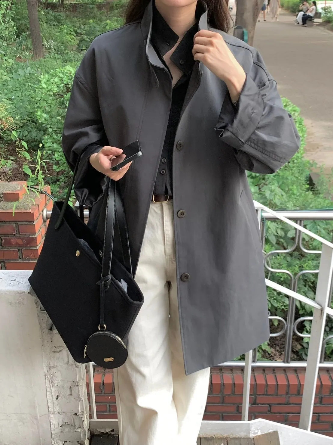 BS437質感藏釦款風衣外套 奶茶 灰 官網價$2690 線上價$2660