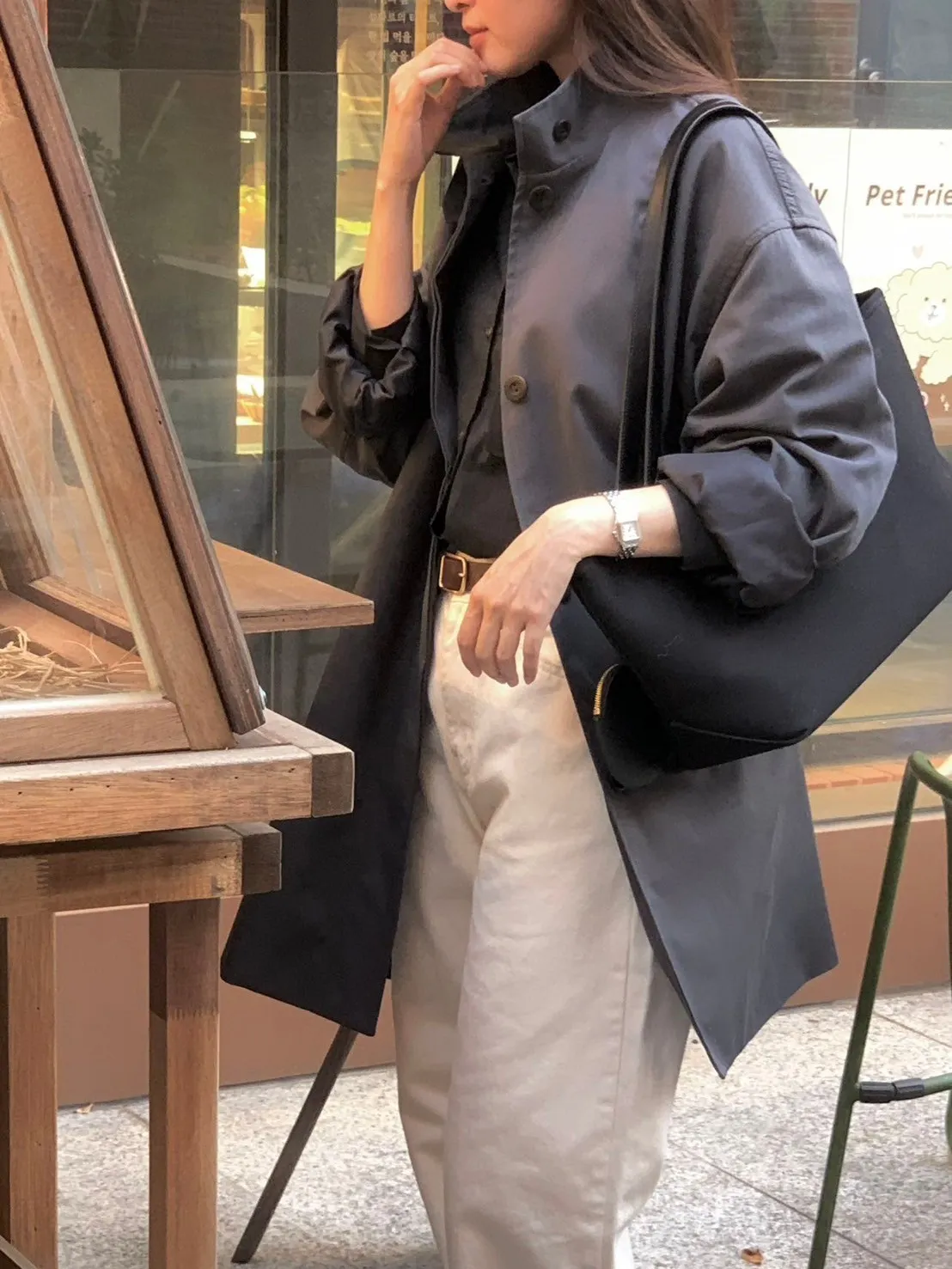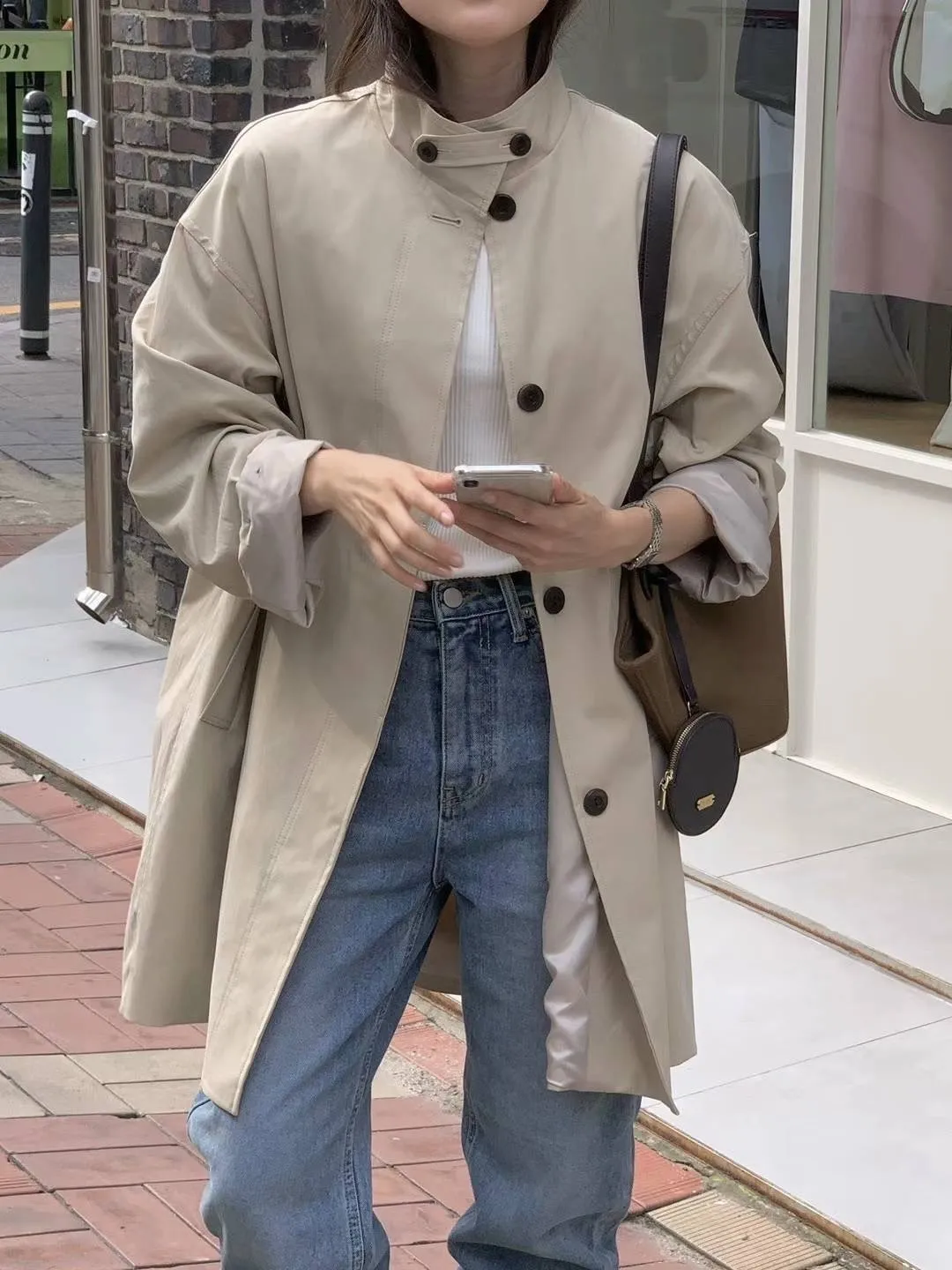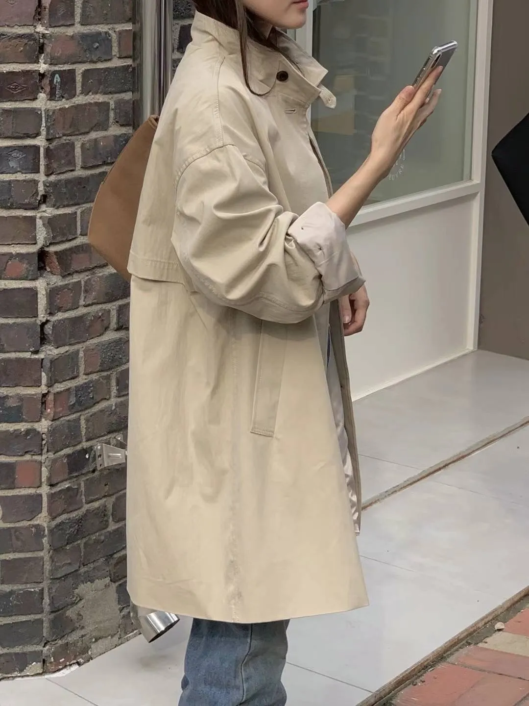 BS437質感藏釦款風衣外套 奶茶 灰 官網價$2690 線上價$2660