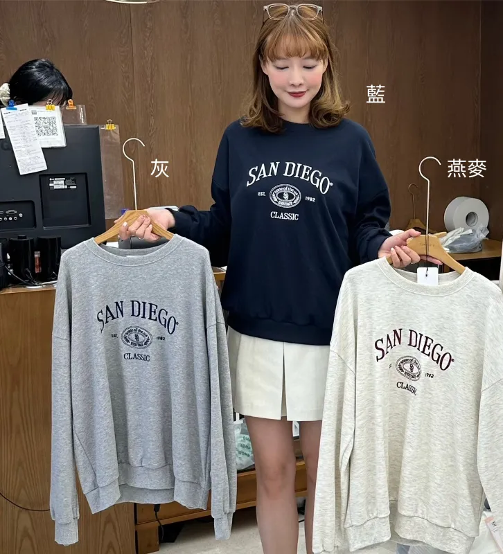 BS447必買薄款好舒服Sandiego大學T 藍 灰 燕麥 官網價$360 線上價$330