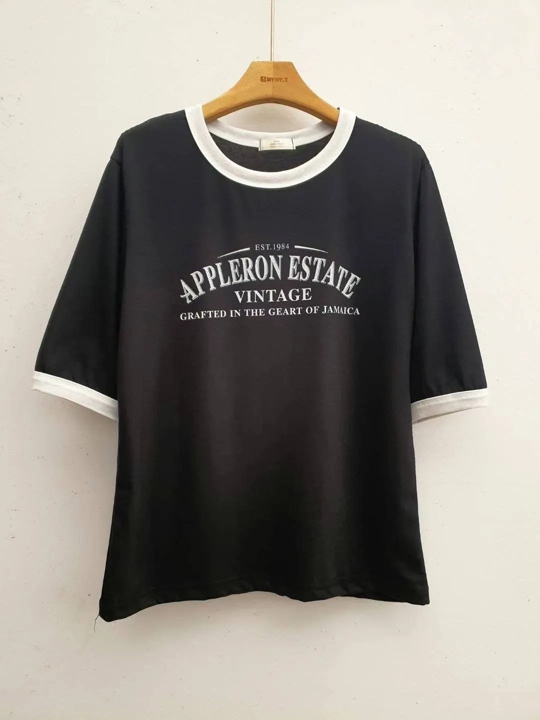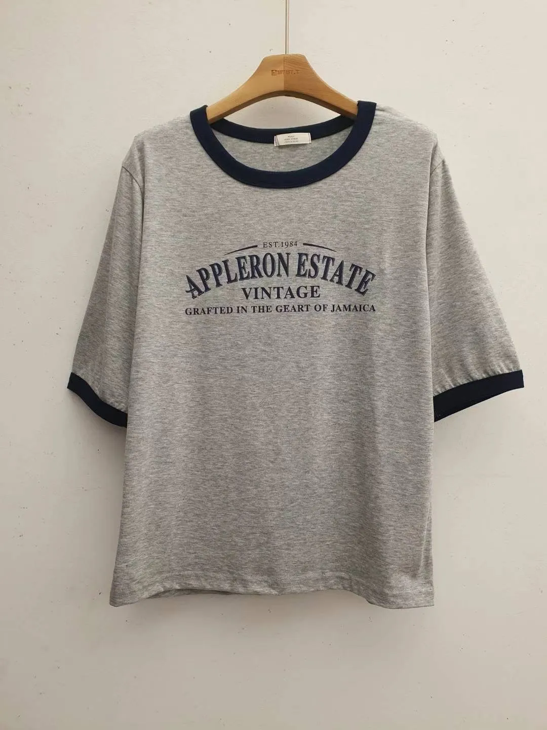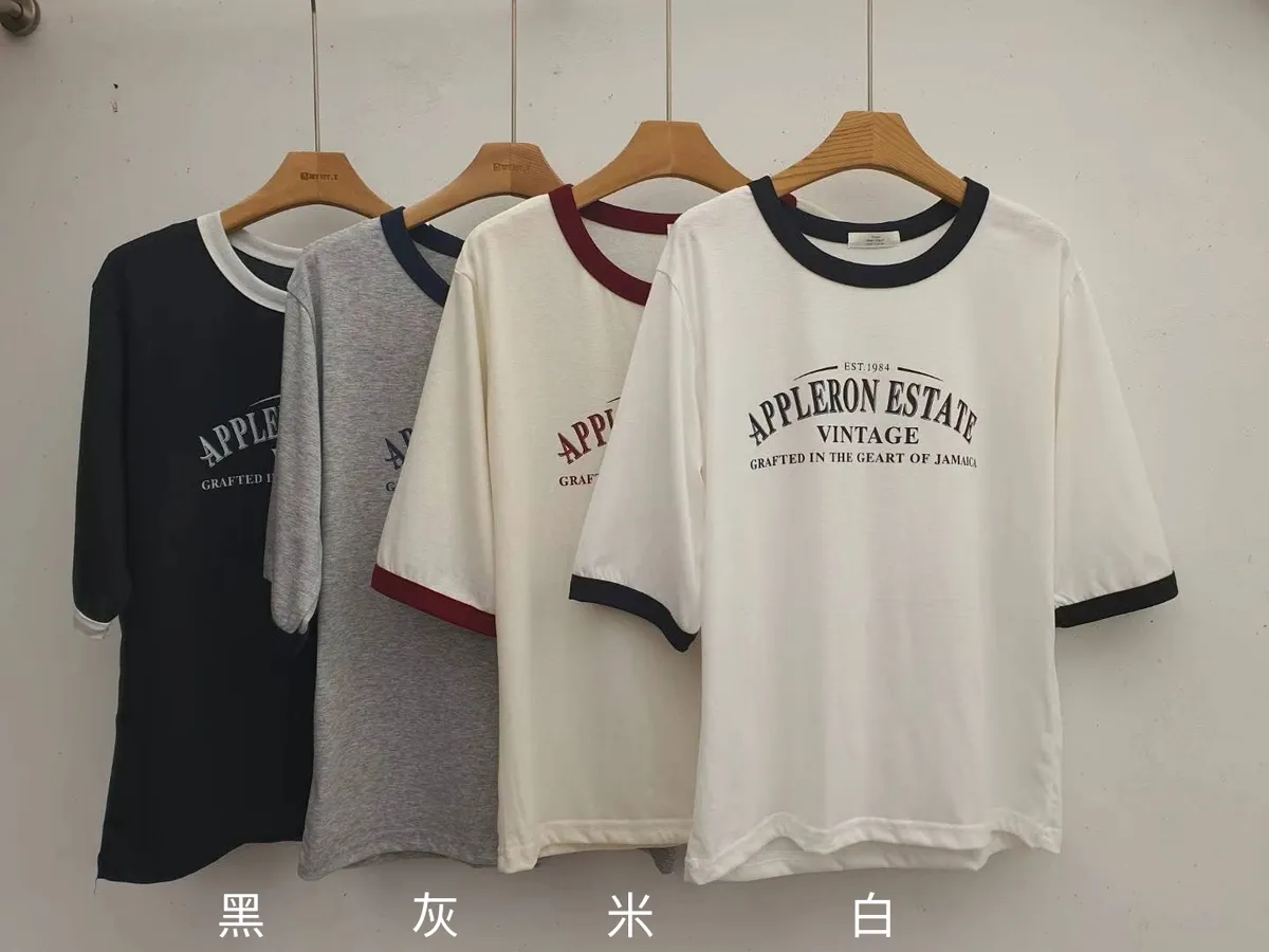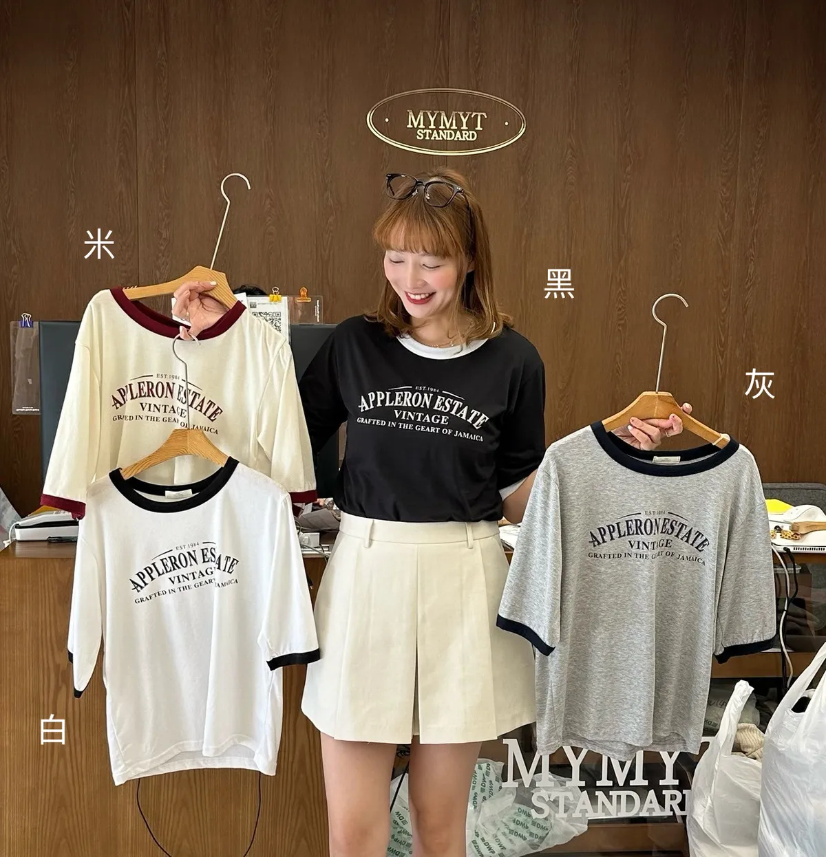 BS452薄款隨性滾邊英文Tshirt 黑 灰 白 米 官網價$240 線上價$210