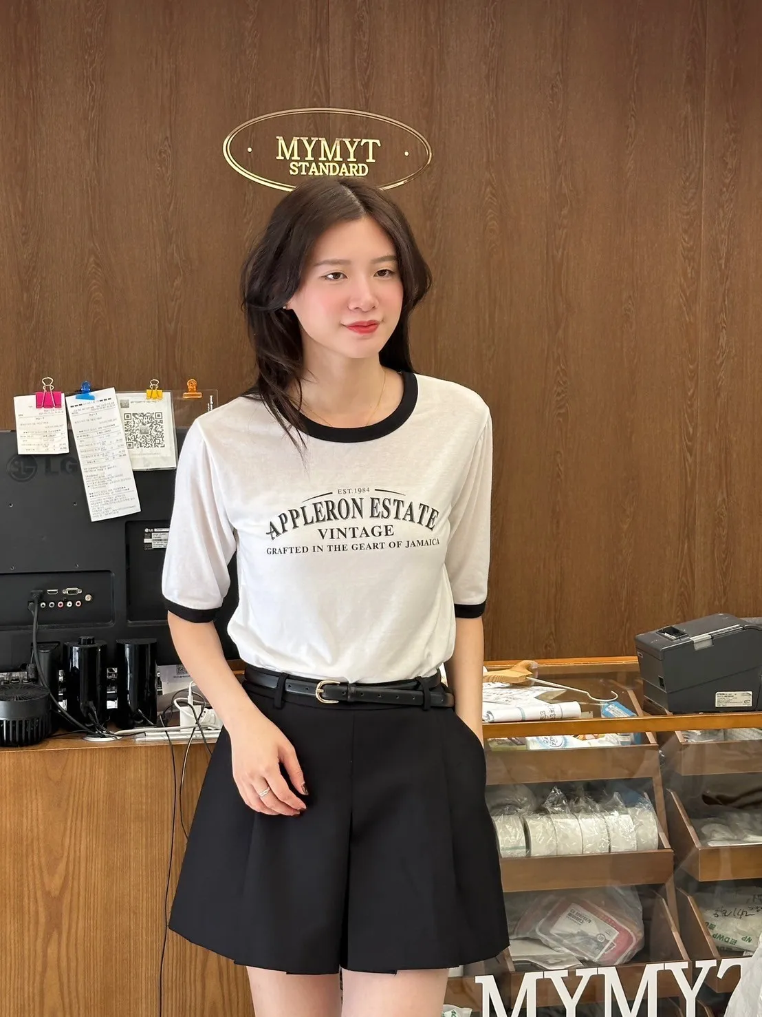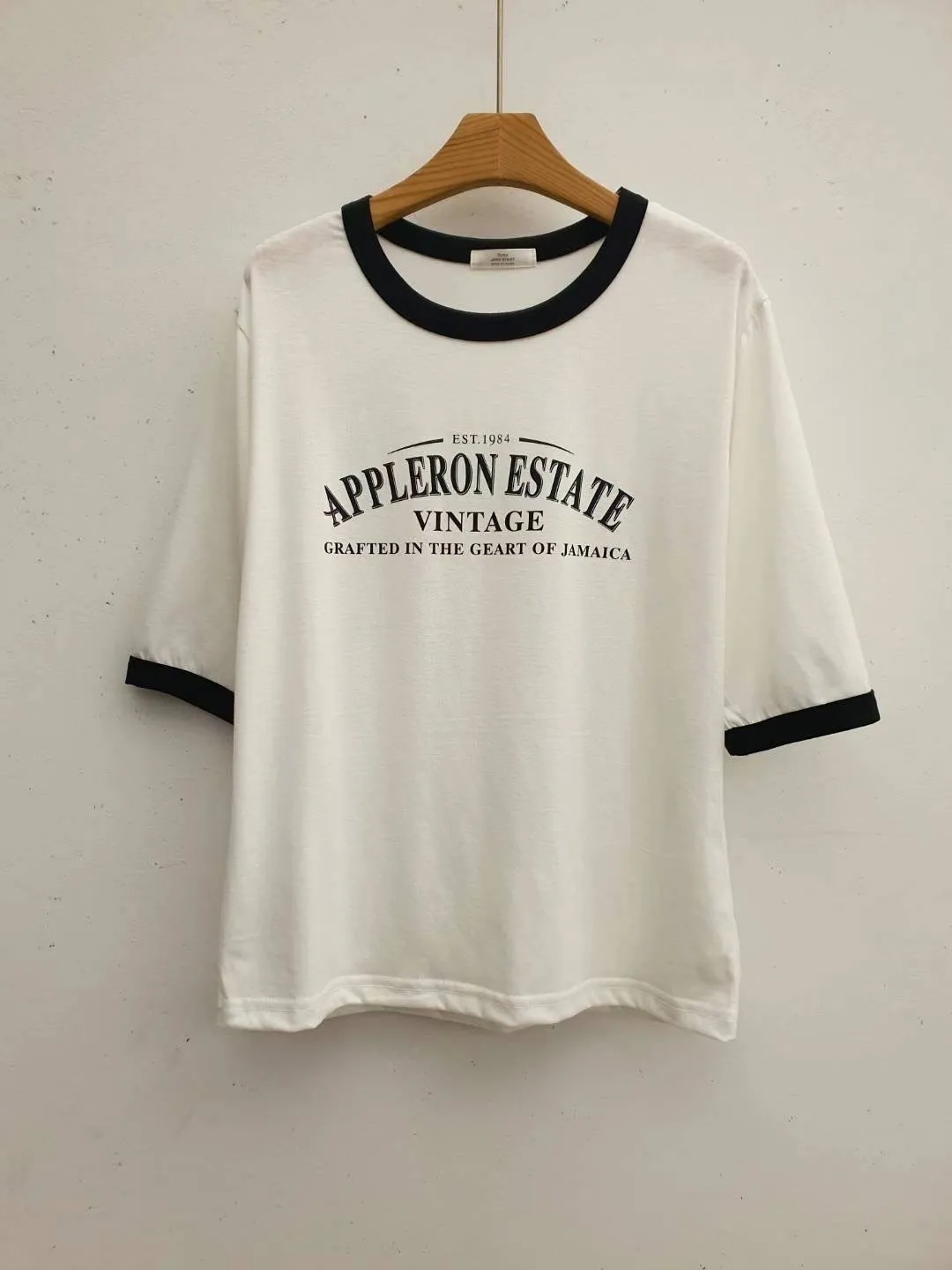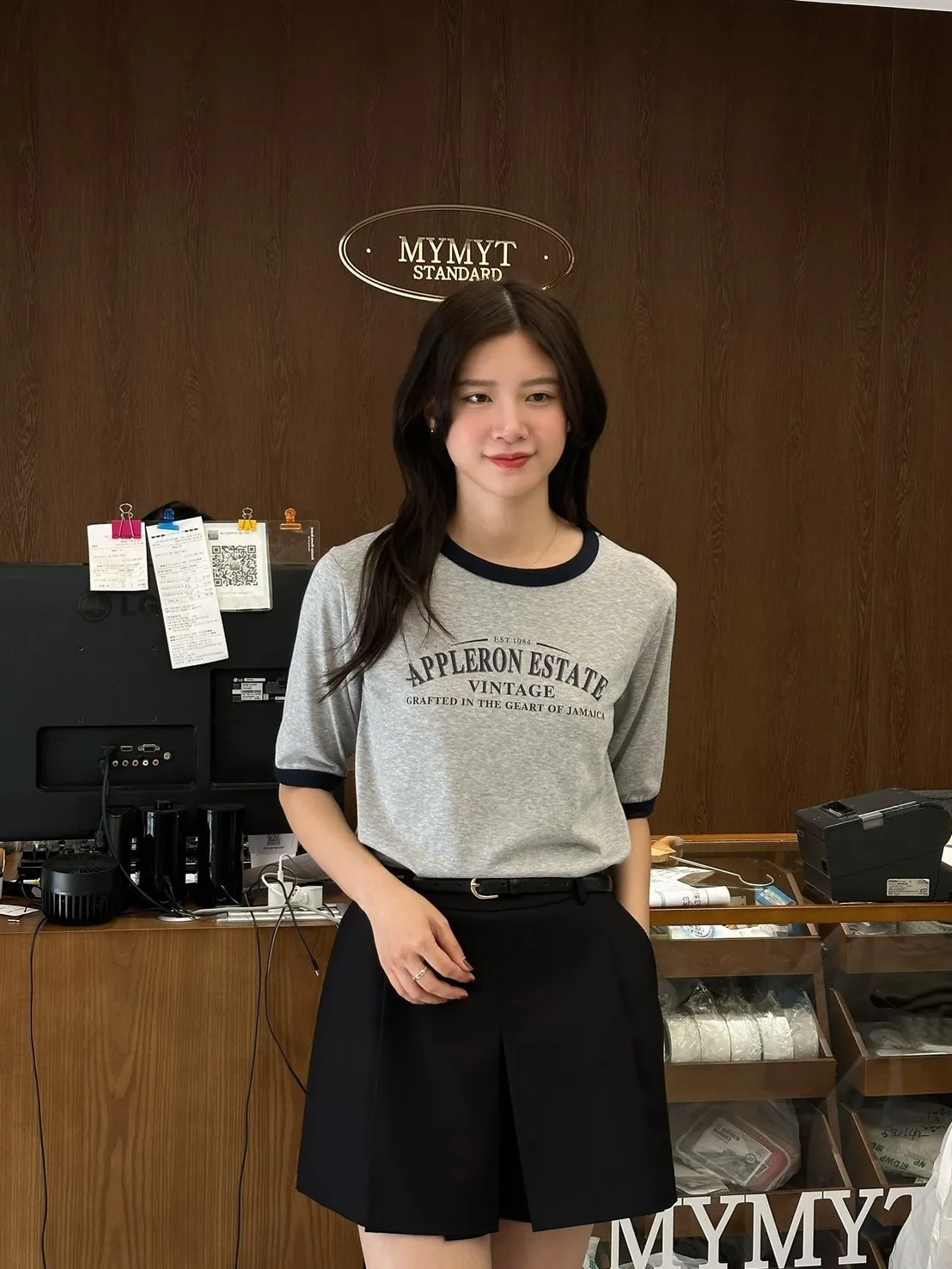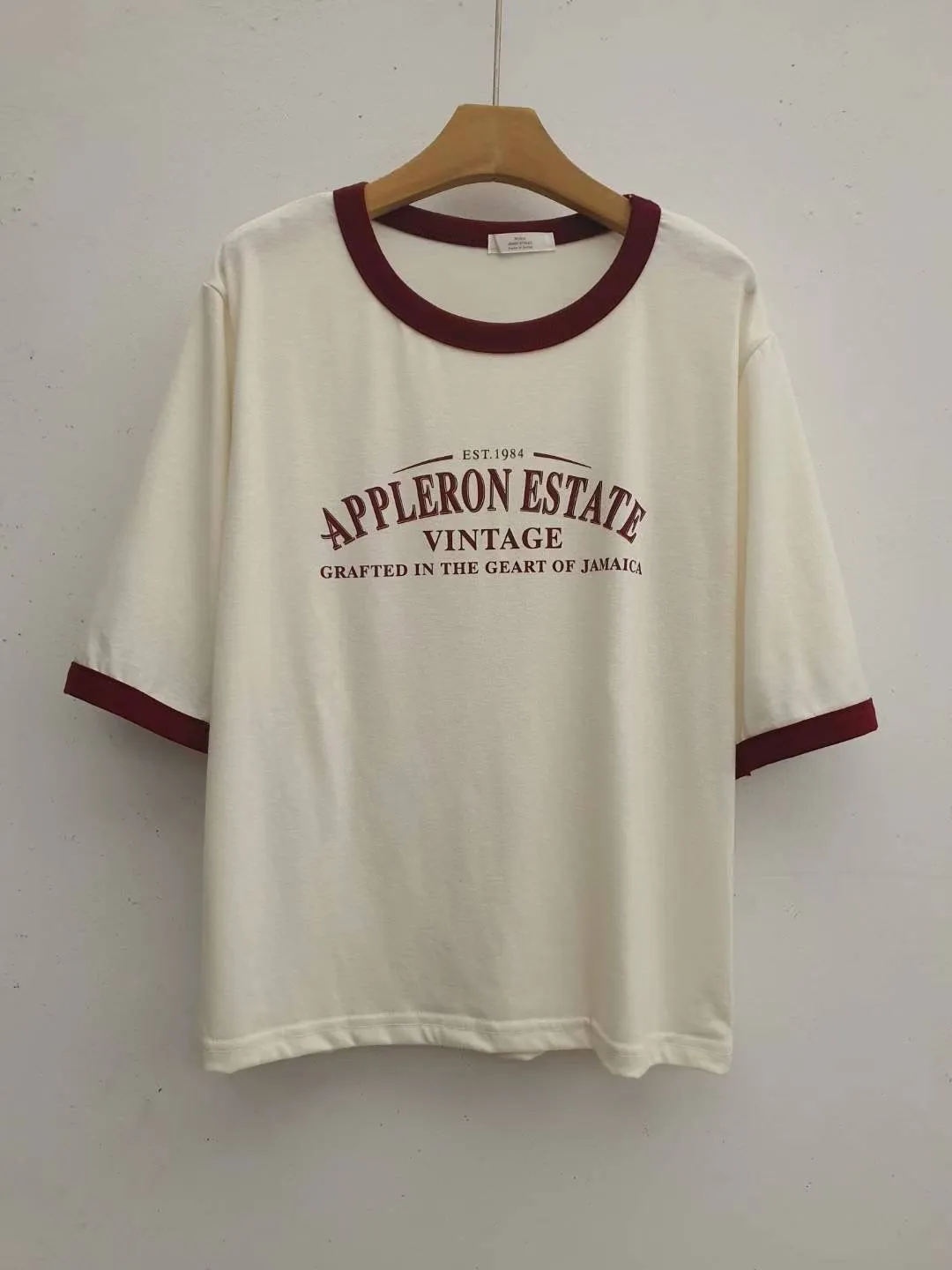 BS452薄款隨性滾邊英文Tshirt 黑 灰 白 米 官網價$240 線上價$210