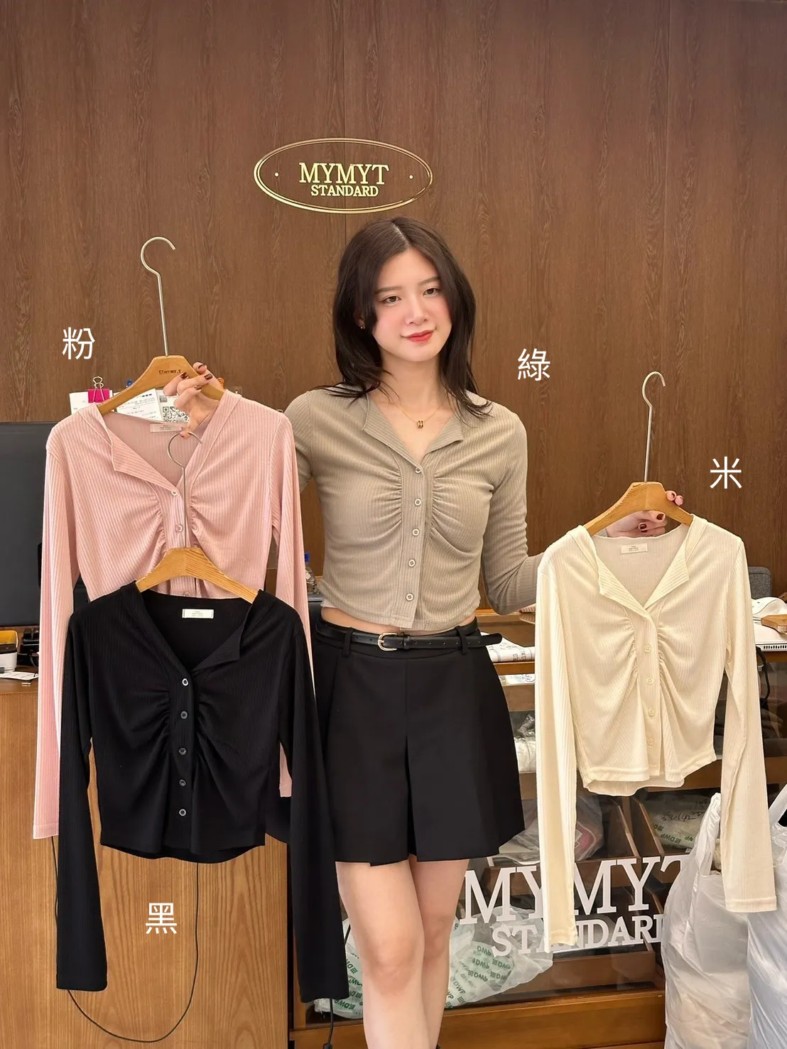 BS457許願款胸抓皺小性感上衣 米 綠 粉 黑 官網價$340 線上價$310
