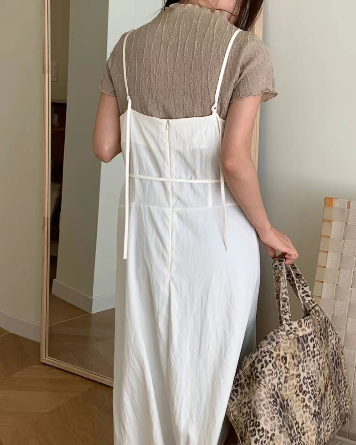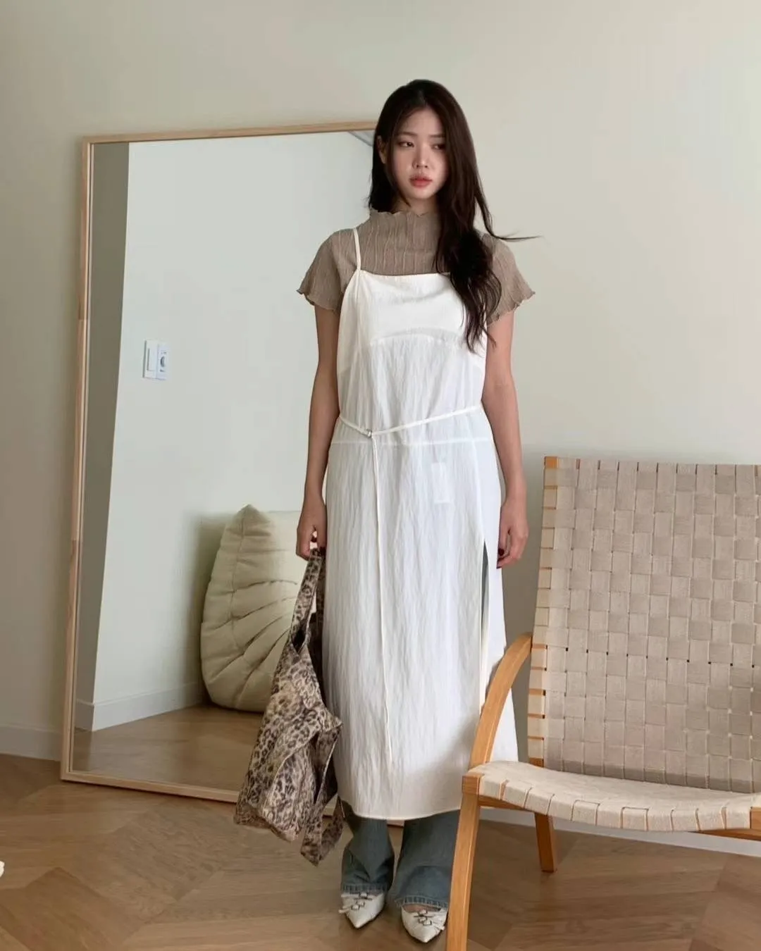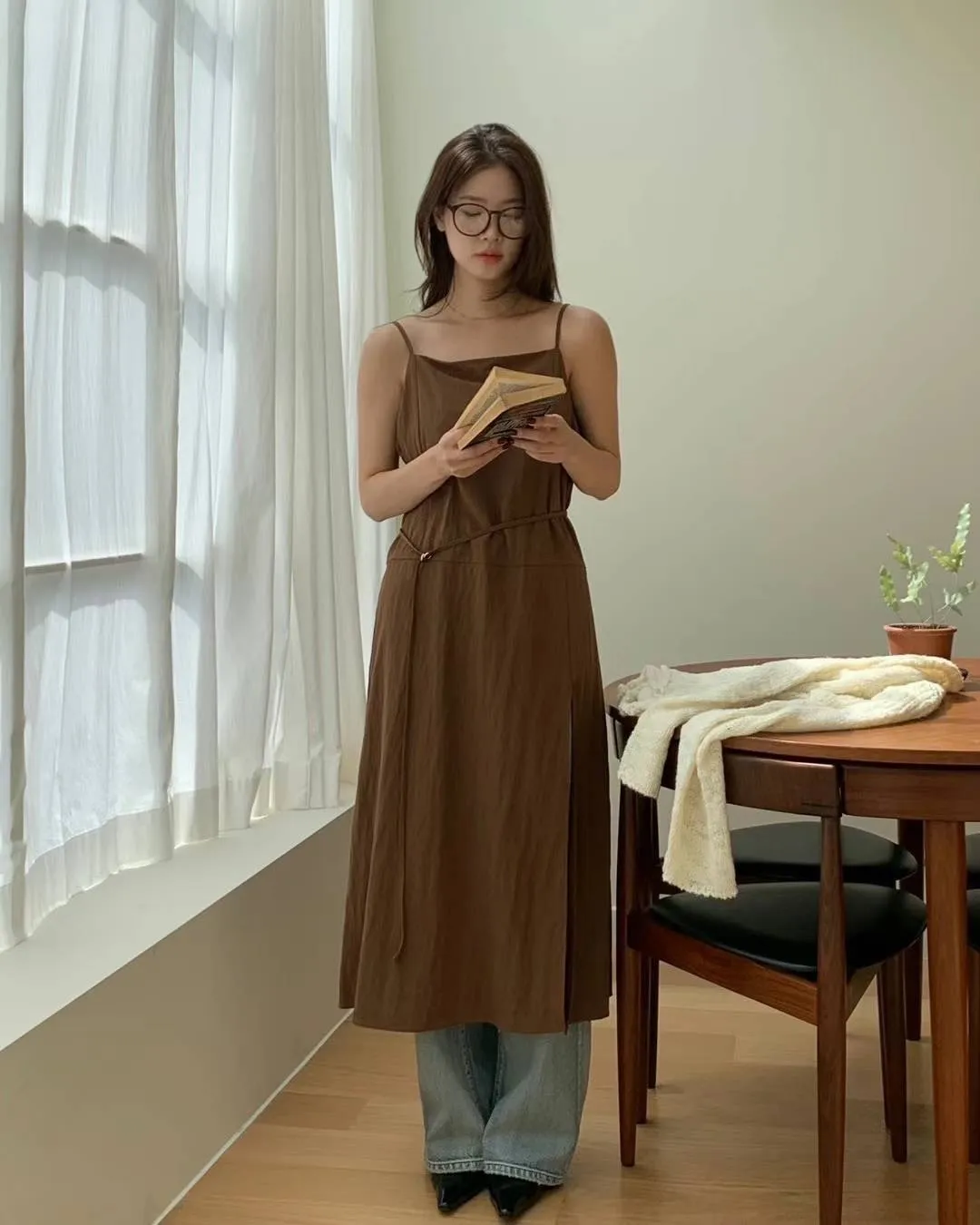 BS460推薦款細肩帶平口背心洋裝 白 咖 黑 官網價$1390 線上價$1360