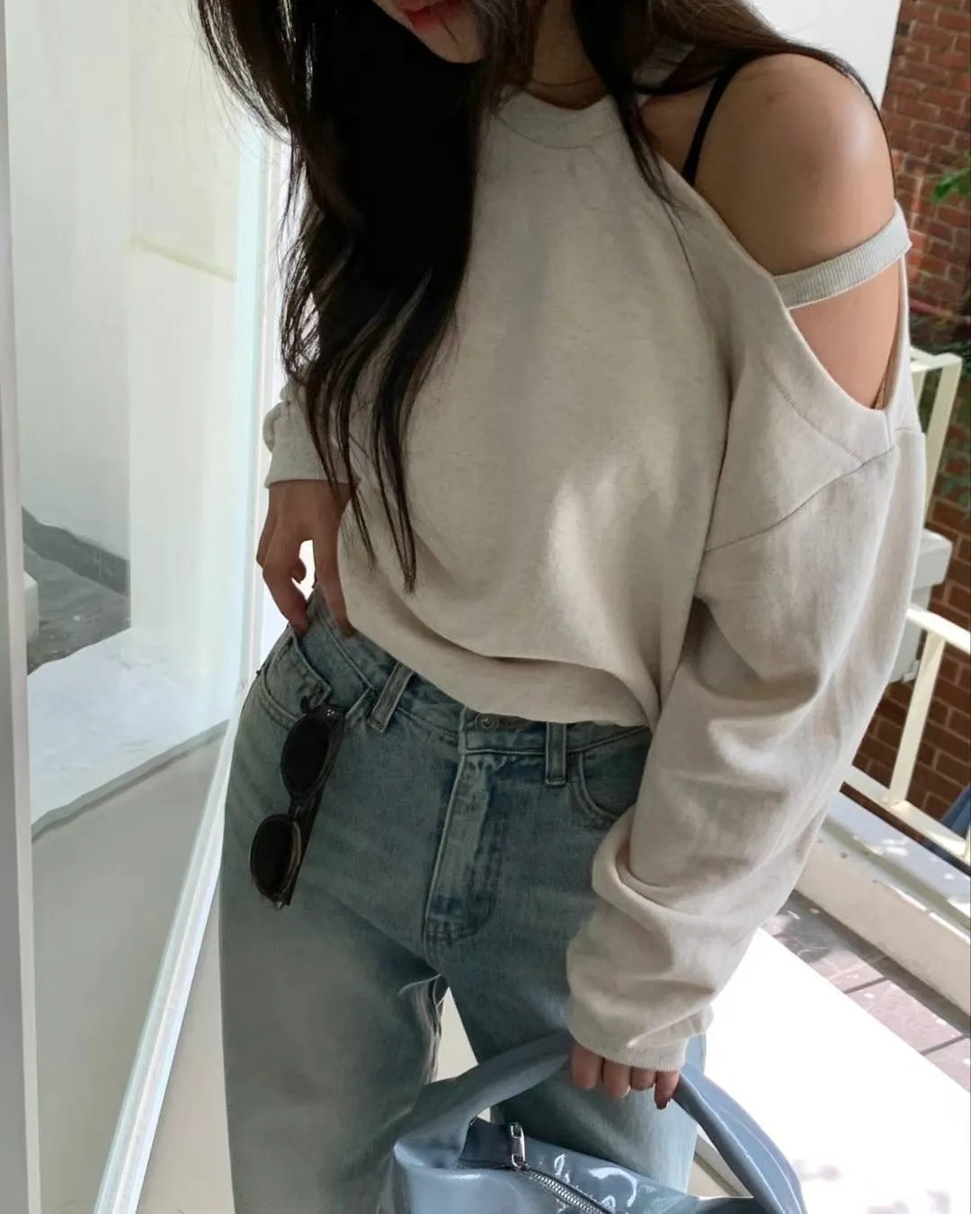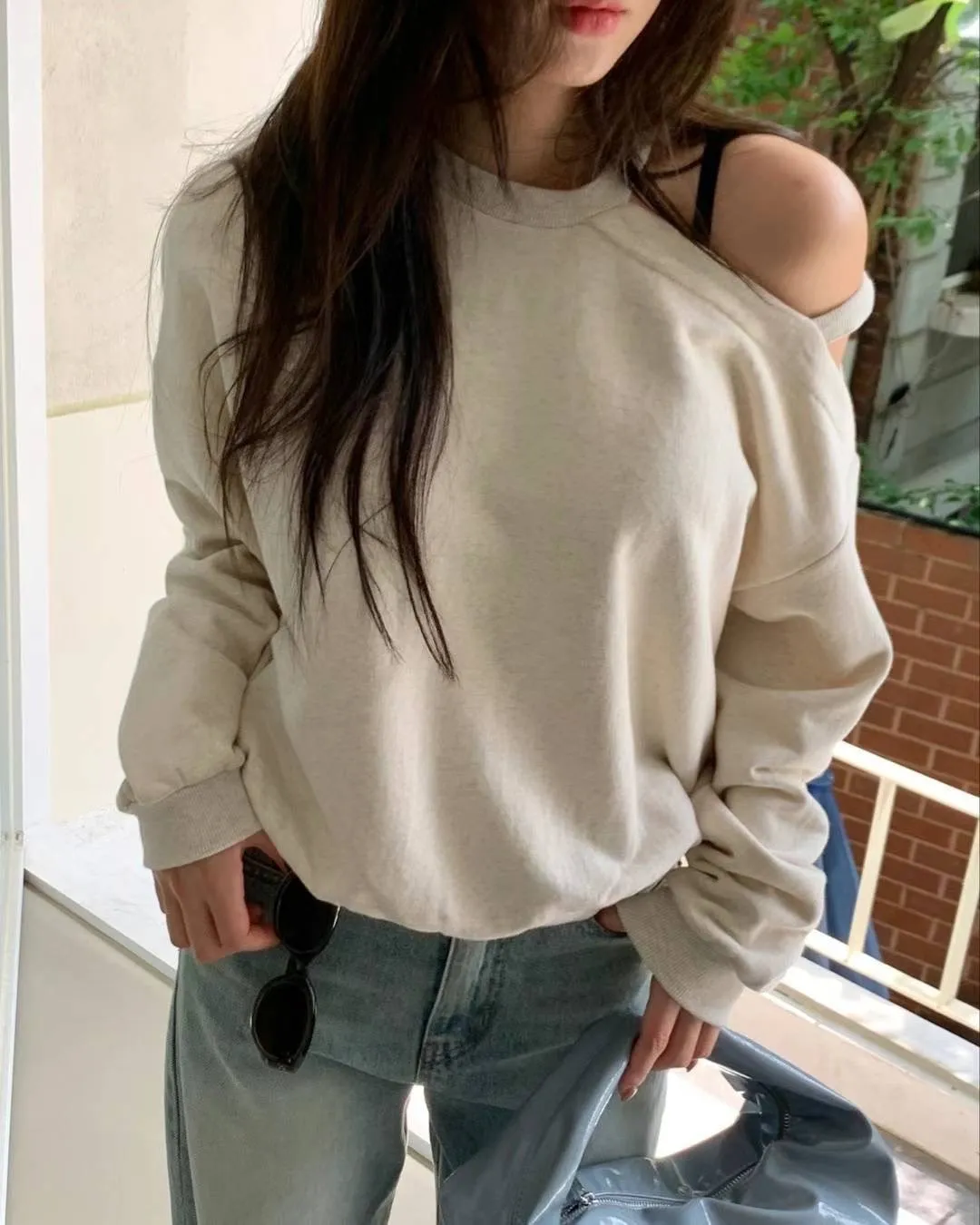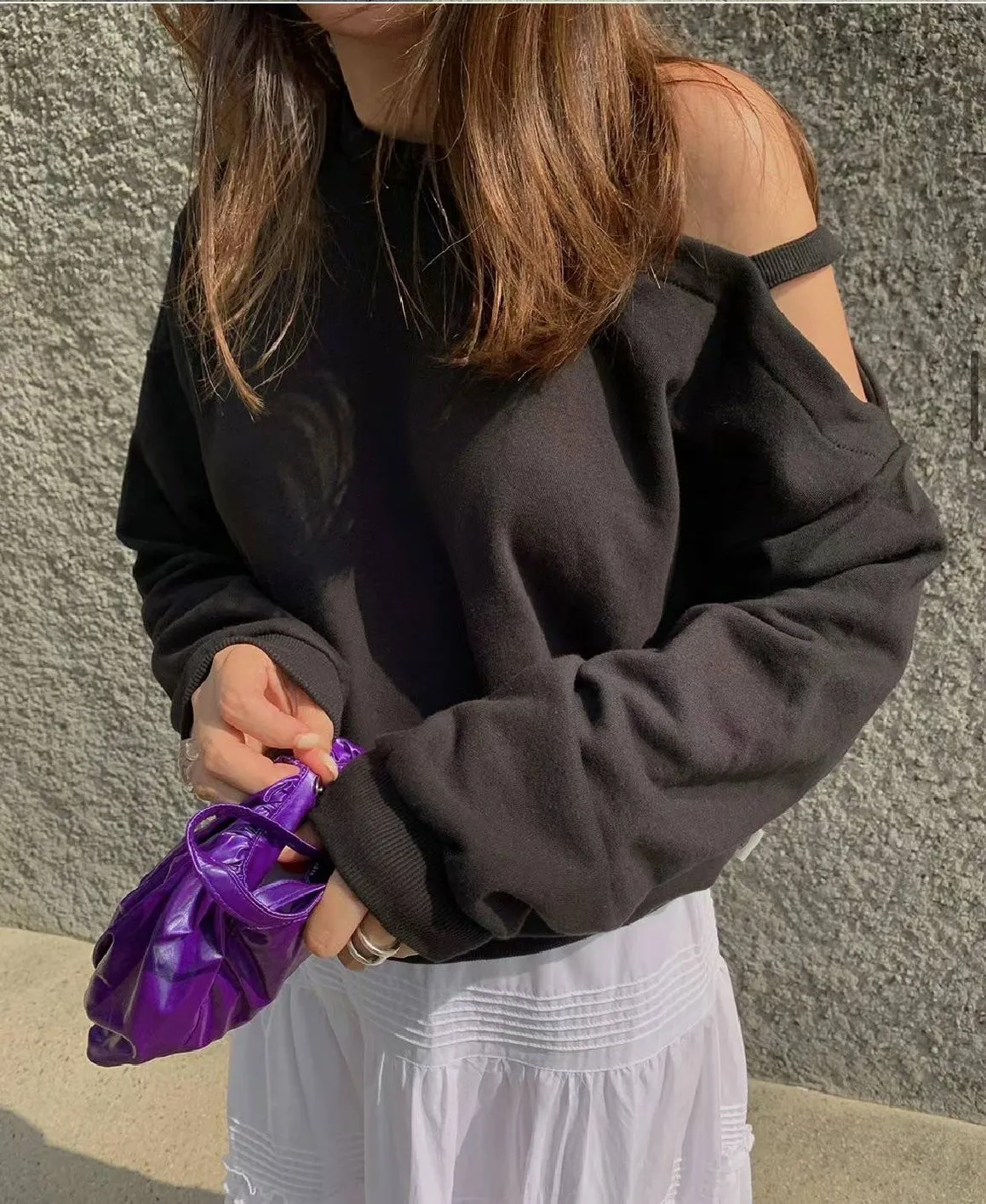 BS462簍肩時尚態度設計上衣 米 灰 黑 官網價$1020 線上價$990