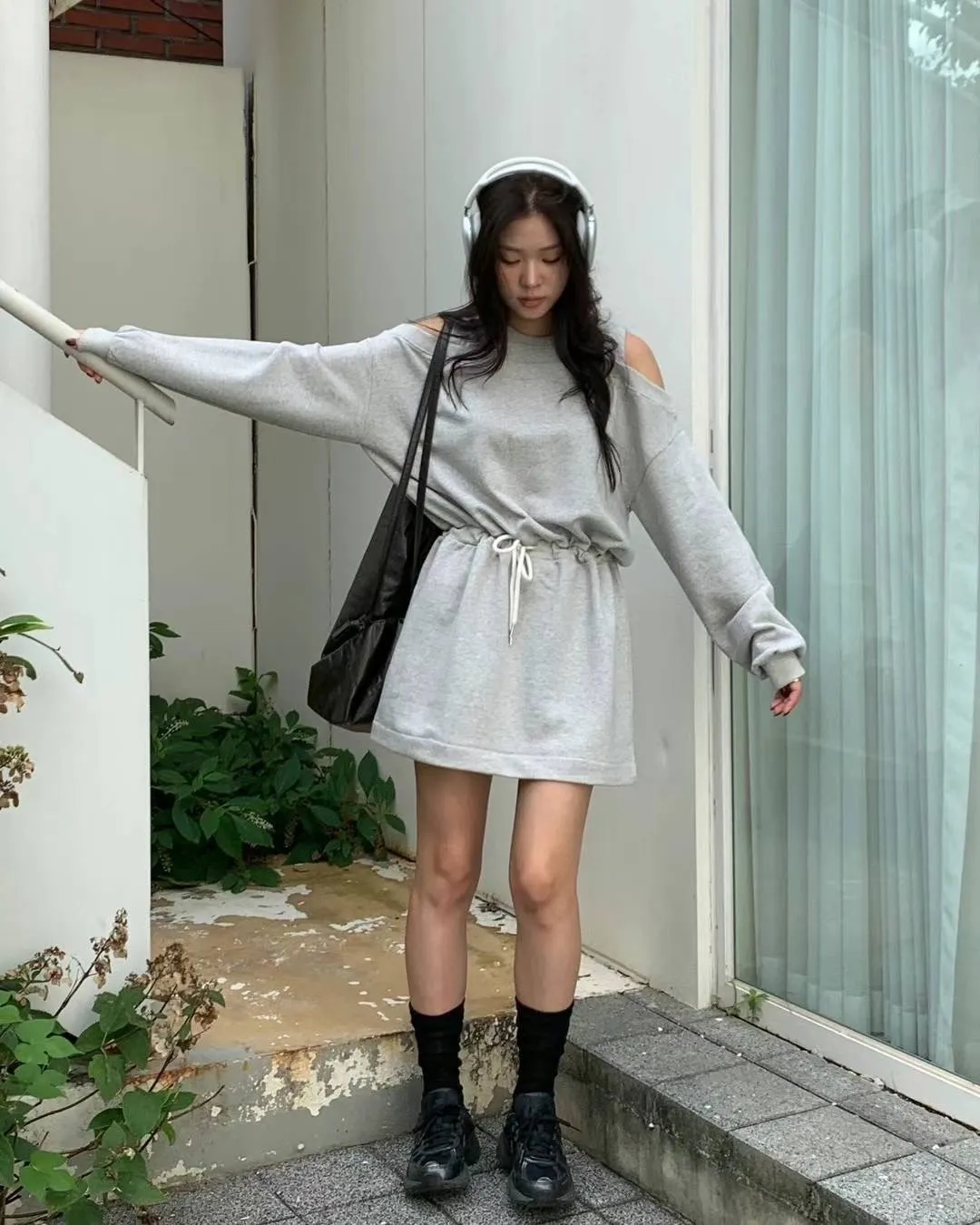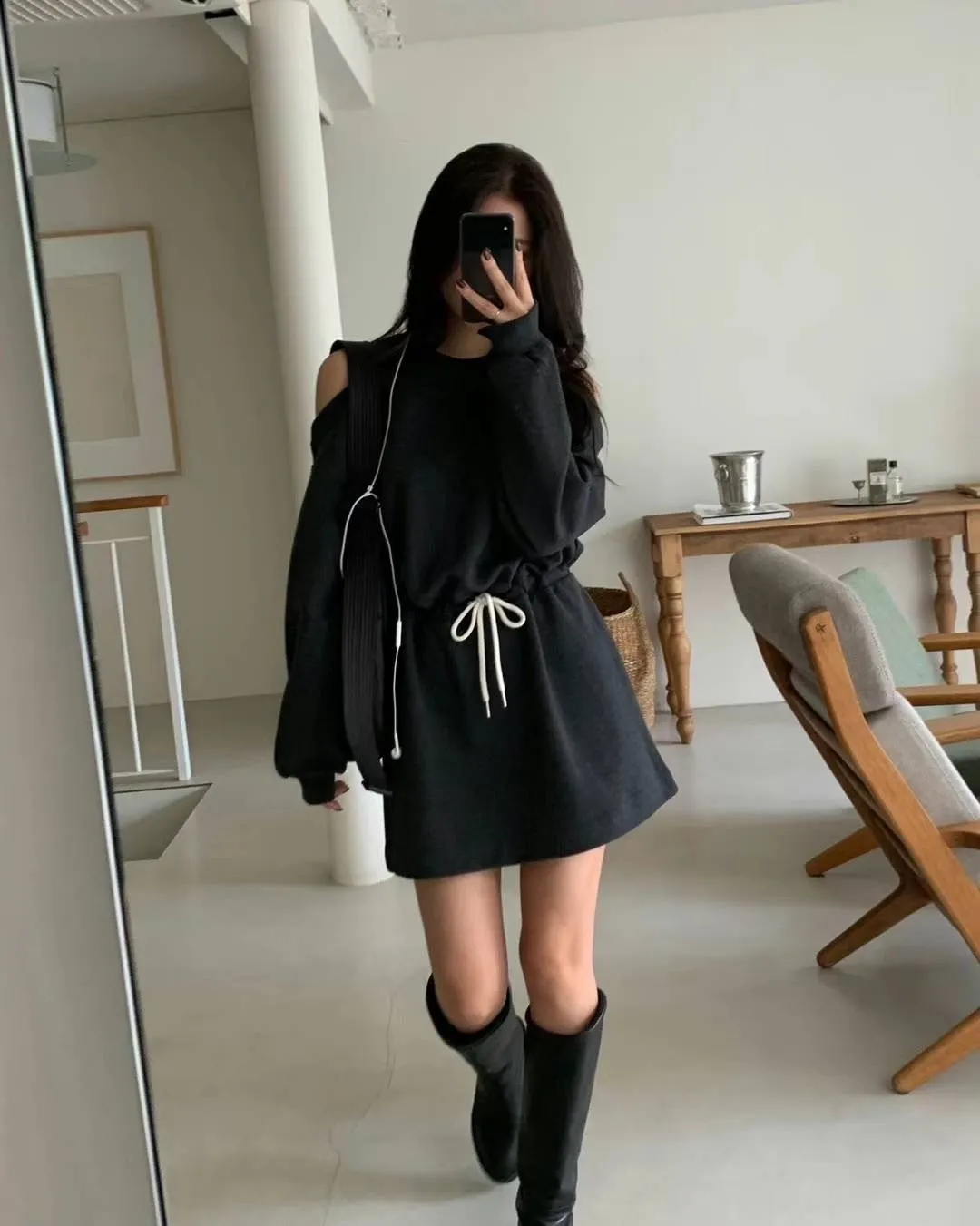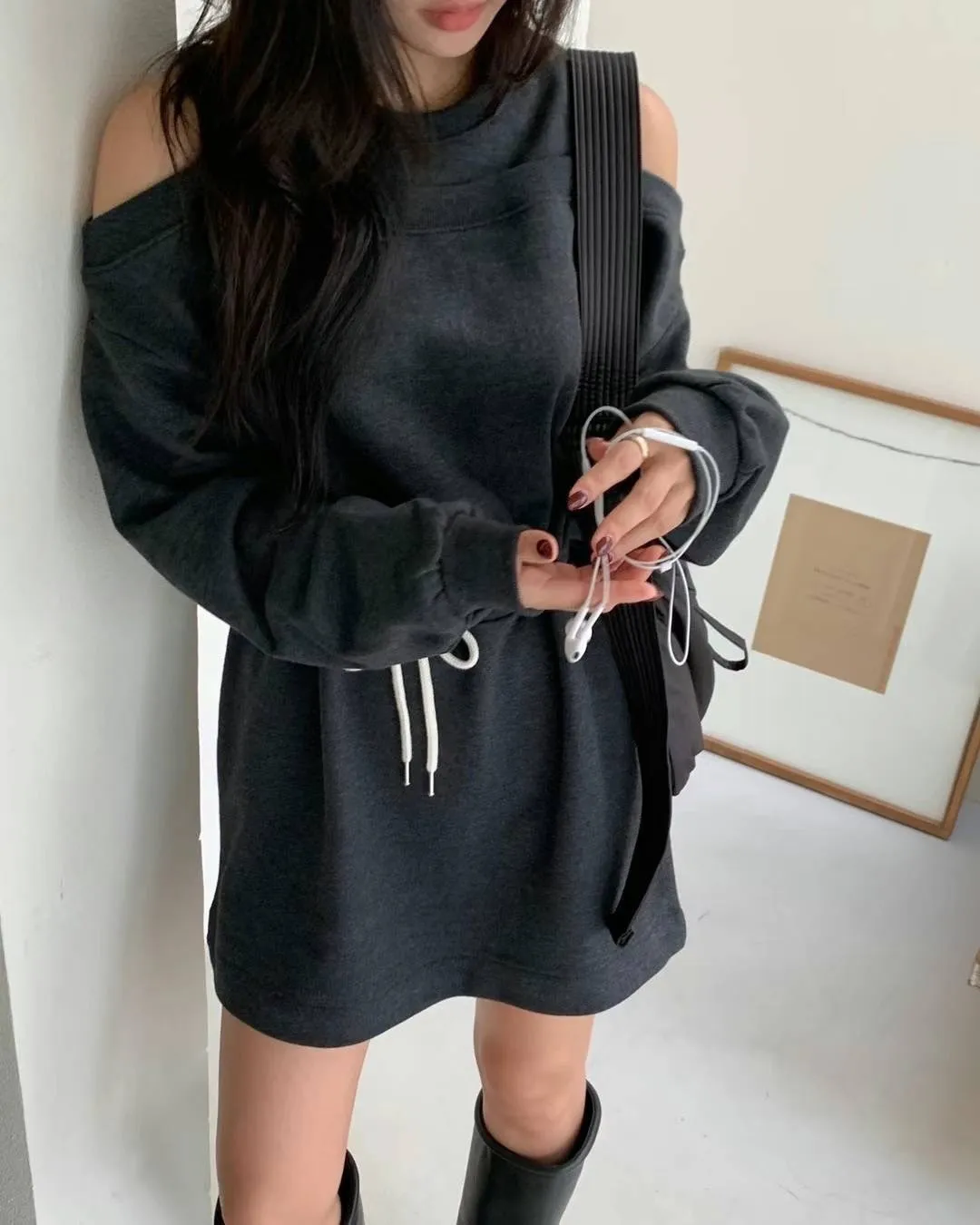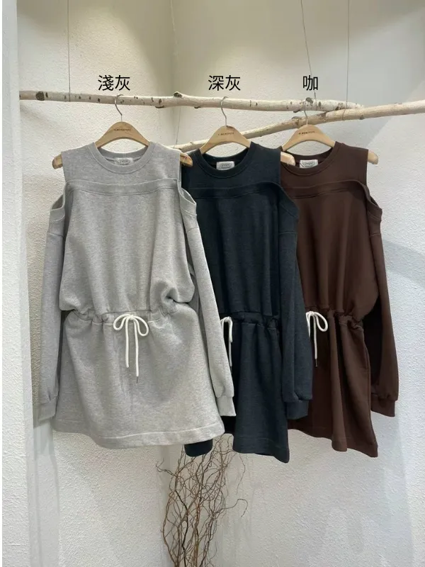 BS466休閒性感簍肩連身洋裝 咖 淺灰 深灰 官網價$1250 線上價$1220
