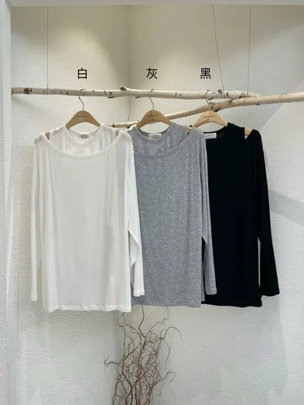 BS468推薦款人間舒適假兩件上衣 白 灰 黑 官網價$990 線上價$960