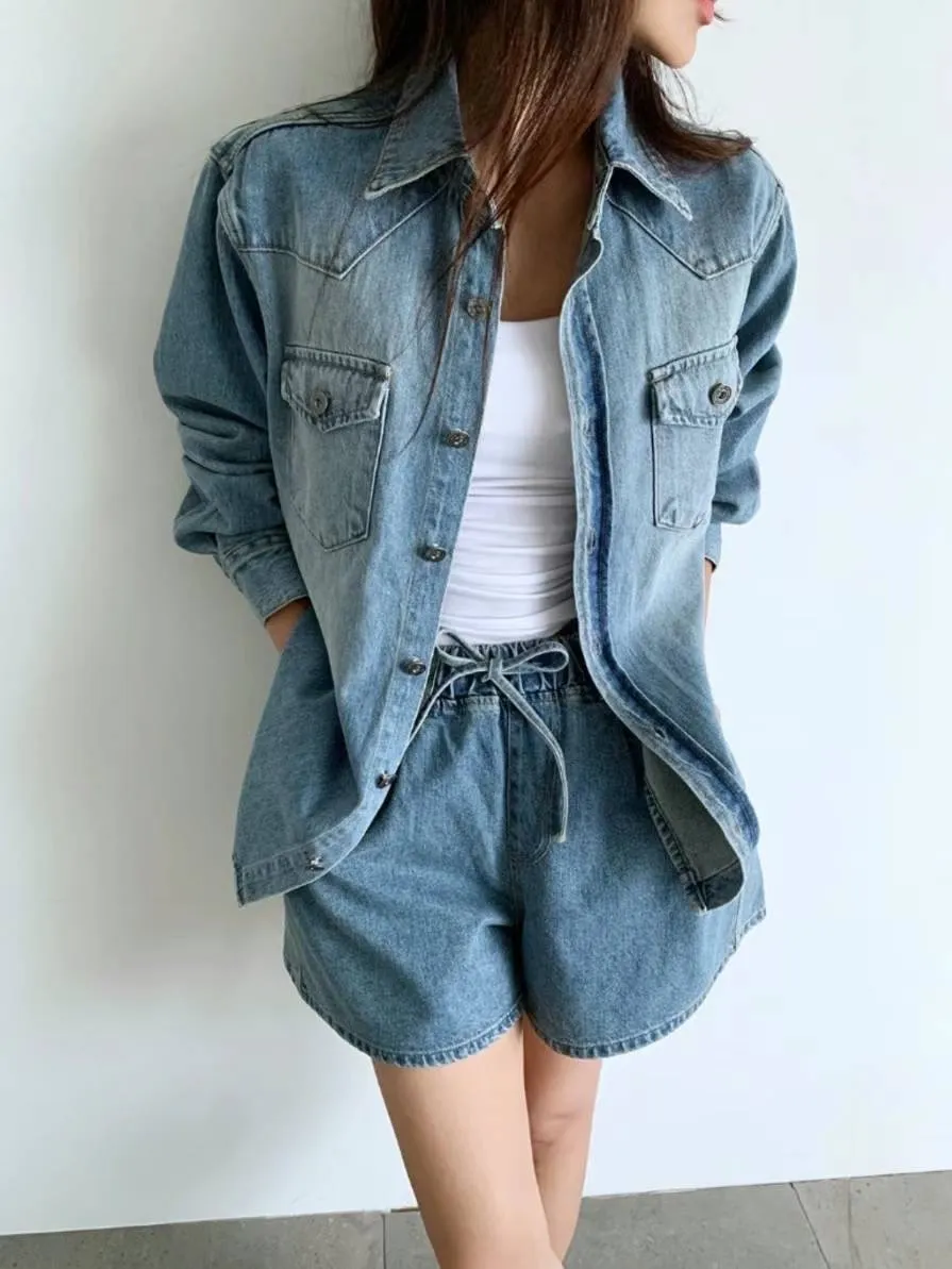BS475套裝的復古刷色柔軟牛仔外套(肩膀有V) 官網價$1980 線上價$1950