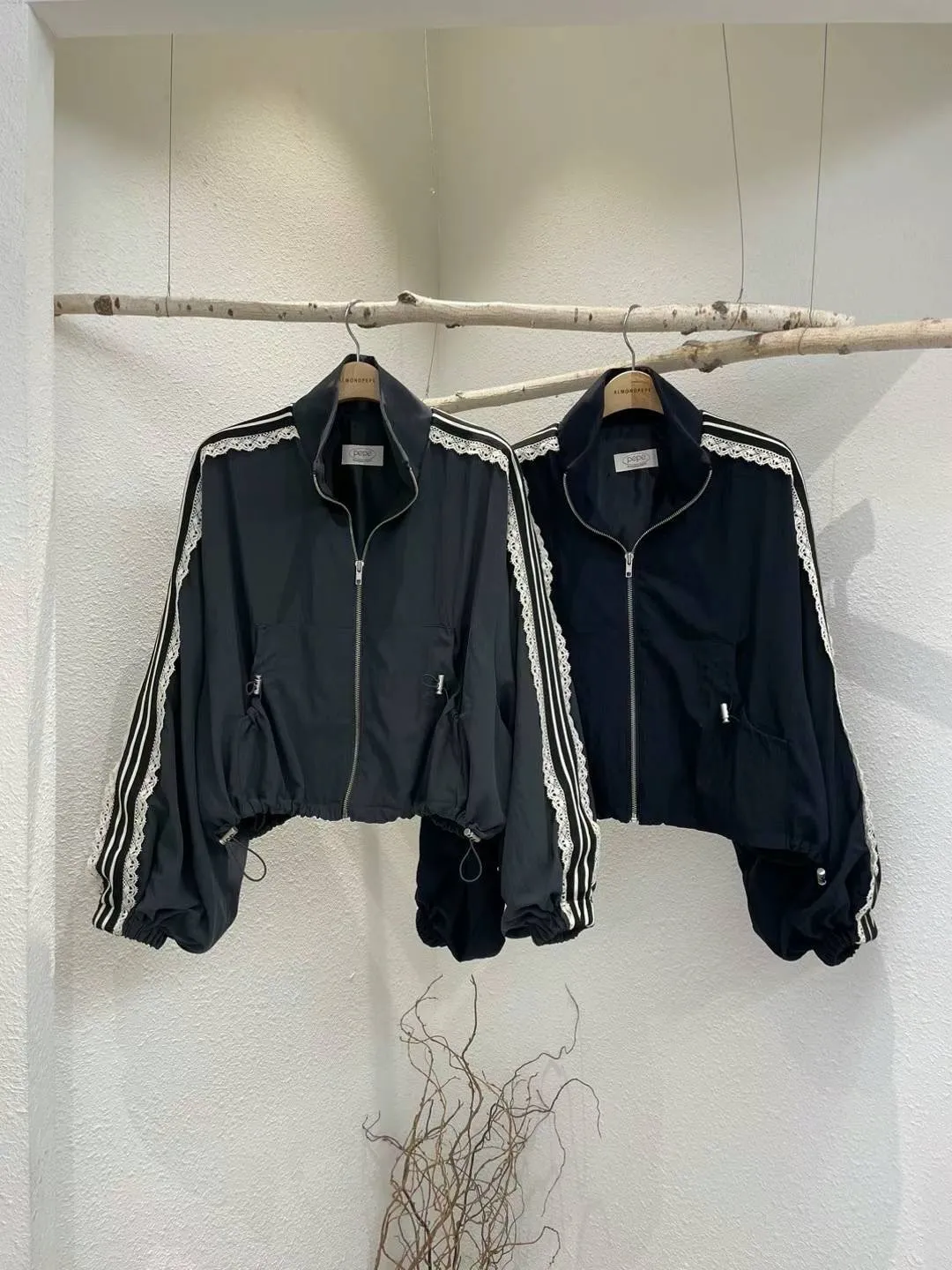 BS479蕾絲袖拉鍊外套 深灰 深藍 官網價$2250 線上價$2220
