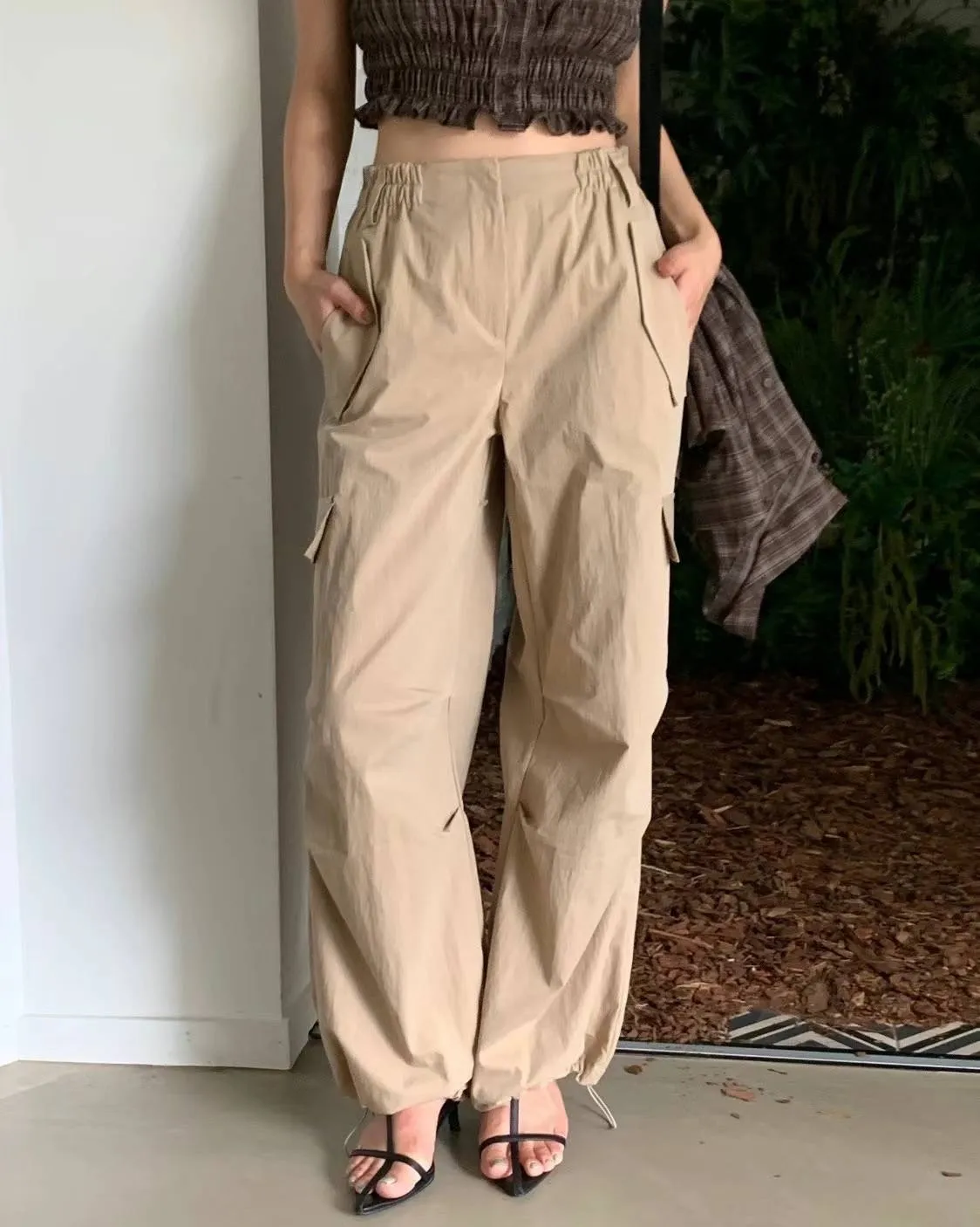 聚酯 釦鍊穿脫 有口袋 挺面料 褲管抽繩縮口 薄款夏日可