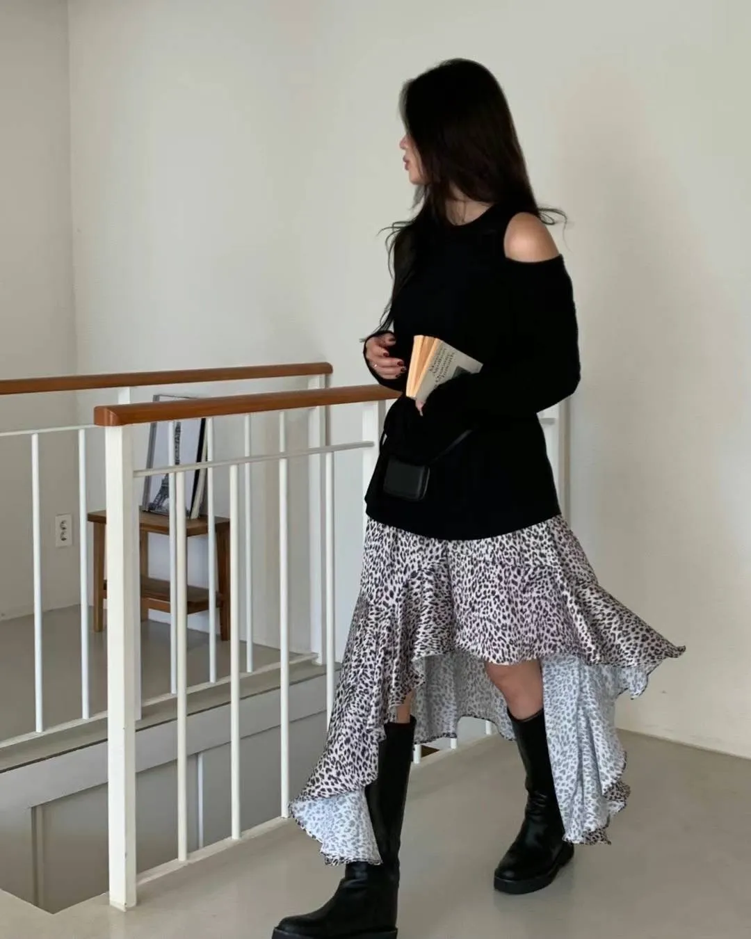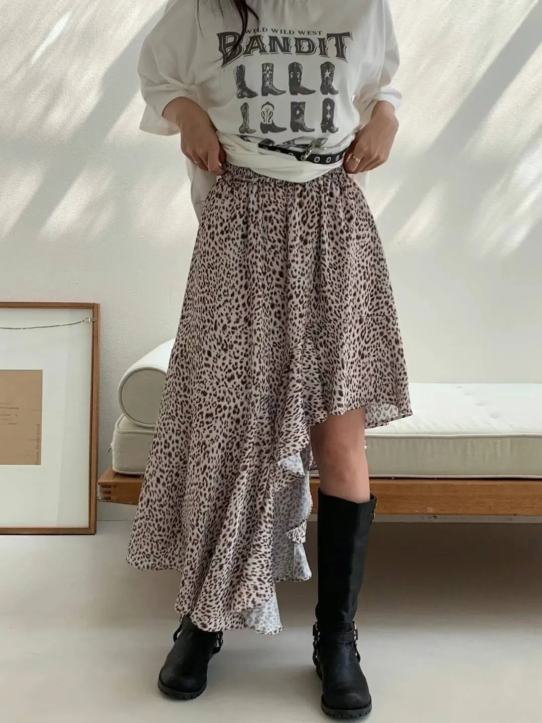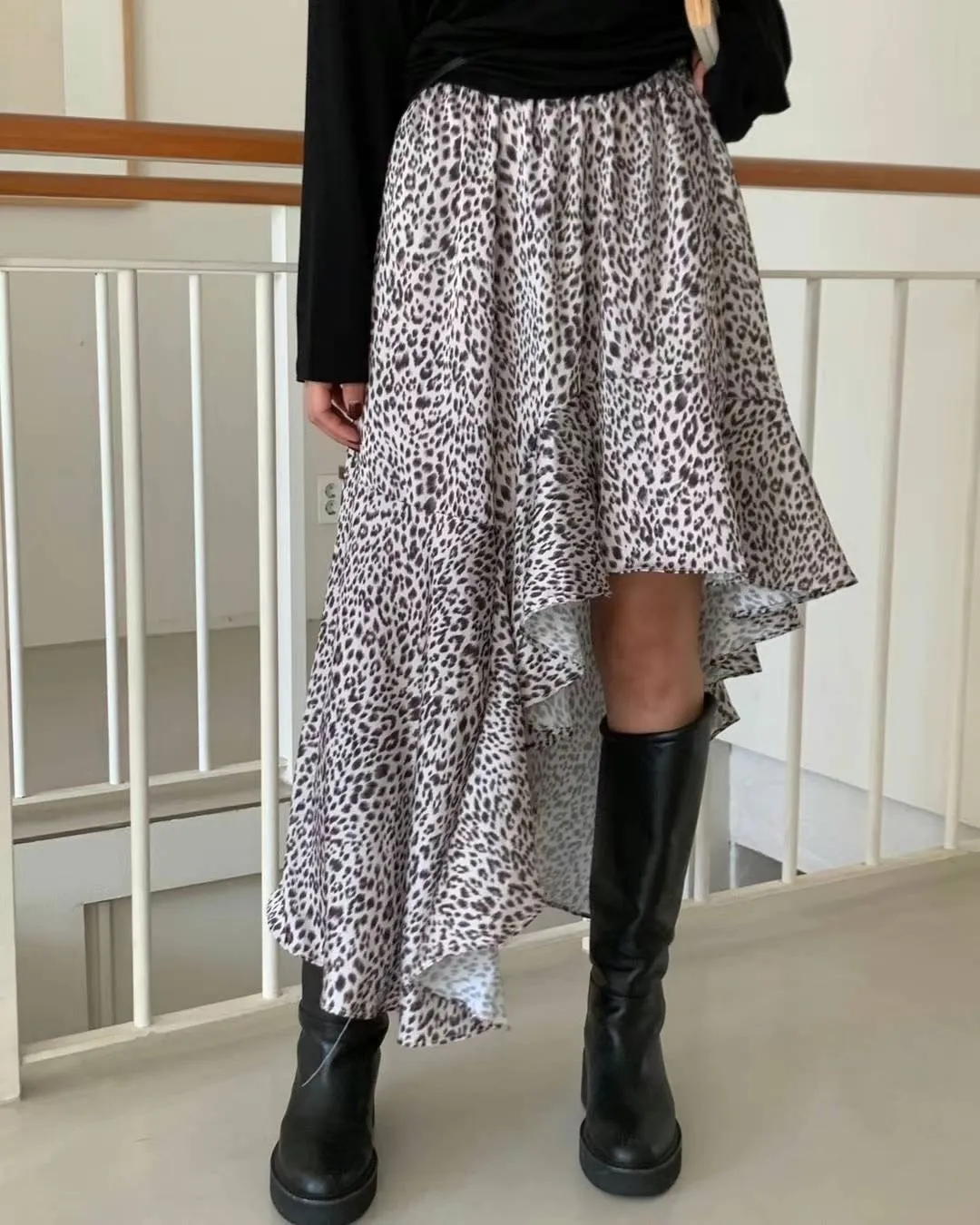 BS482豹紋不規則下擺飄逸裙 咖 黑 官網價$1520 線上價$1490