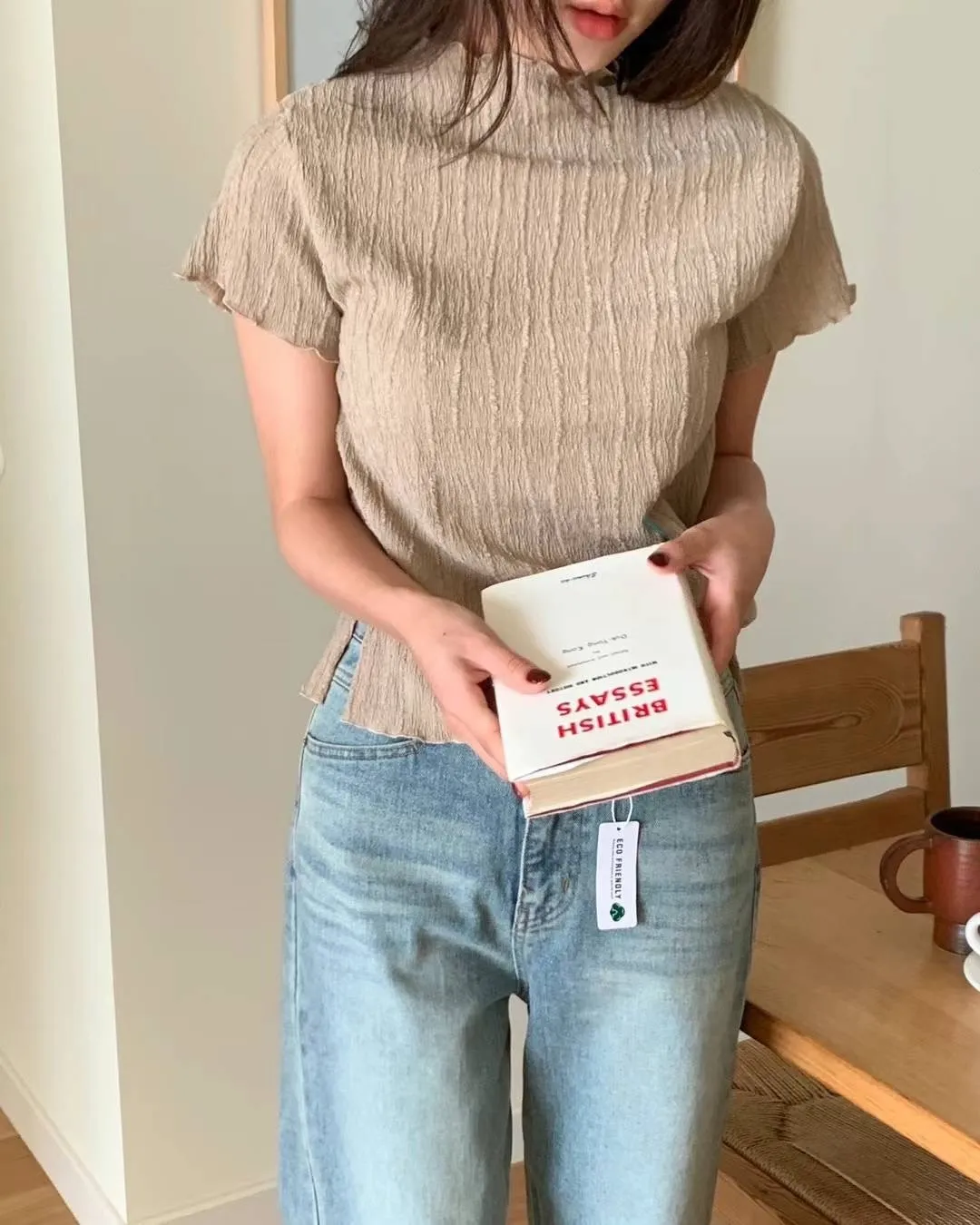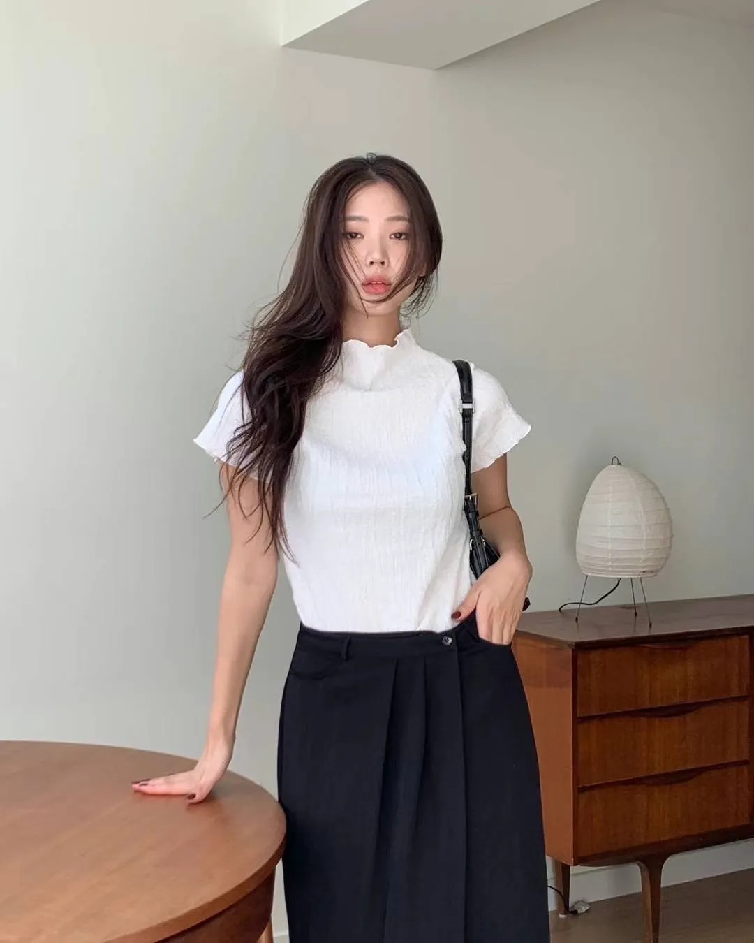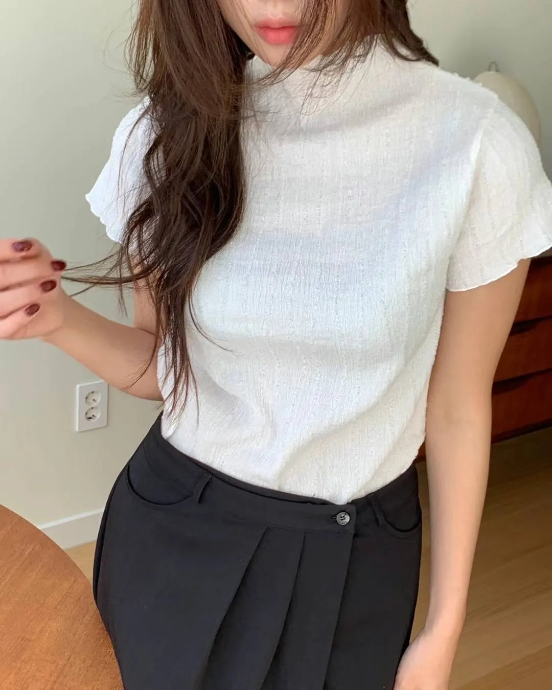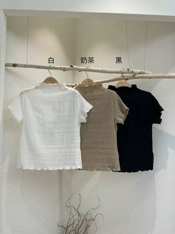 BS483溫柔木耳滾邊短袖上衣 白 黑 奶茶 官網價$699 線上價$669
