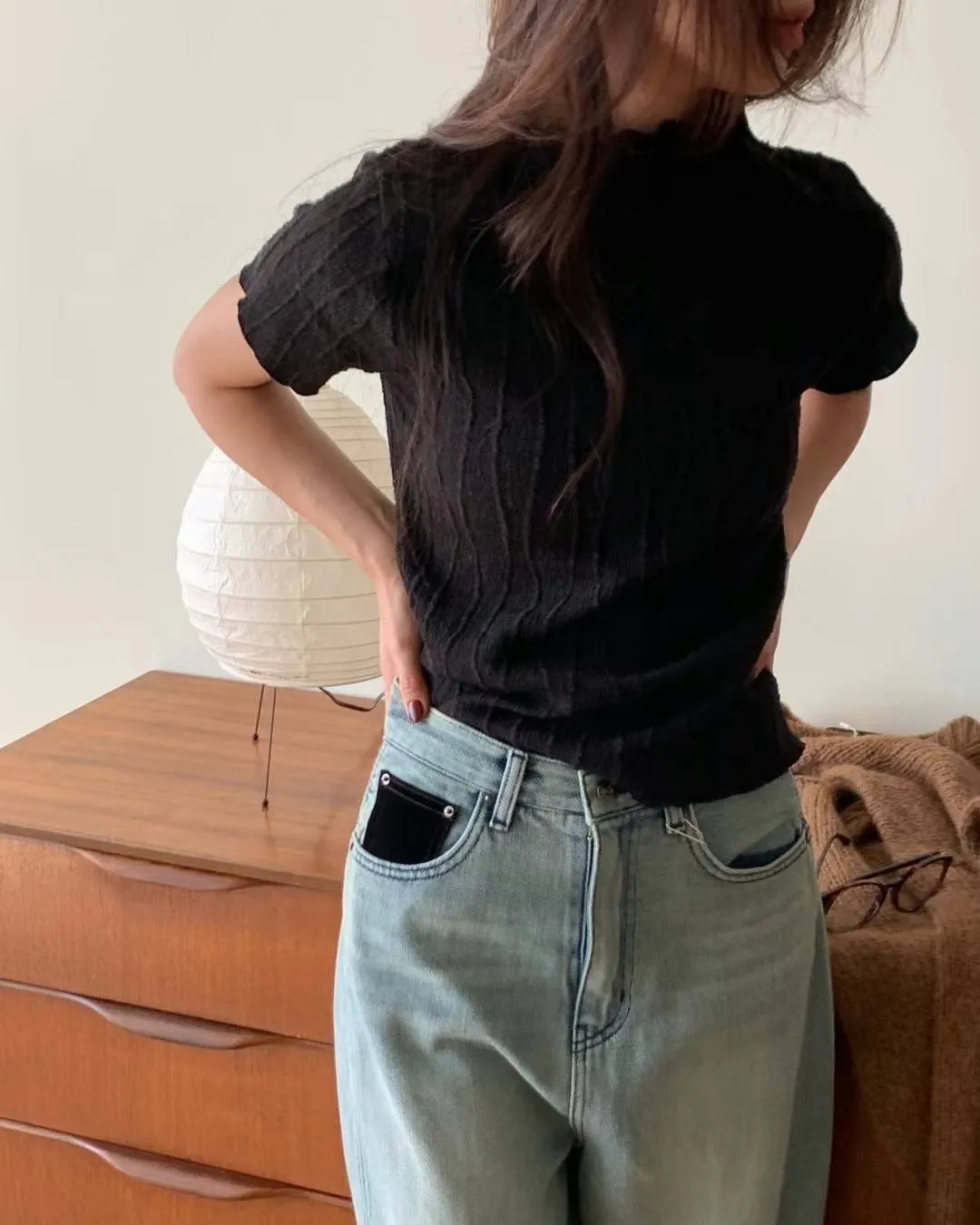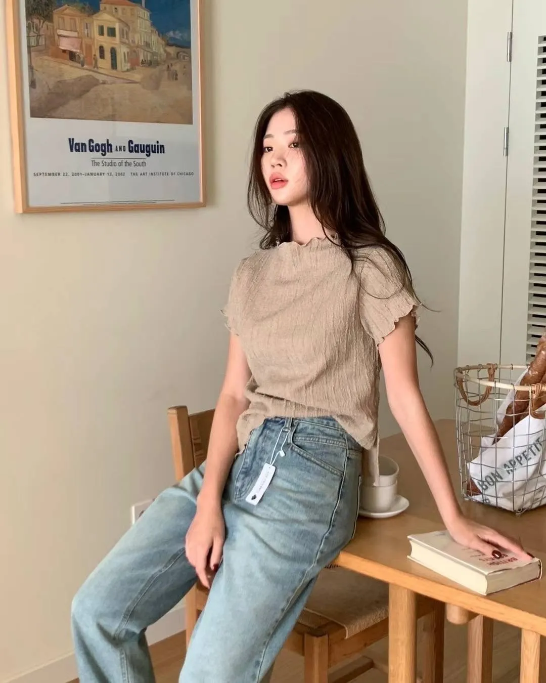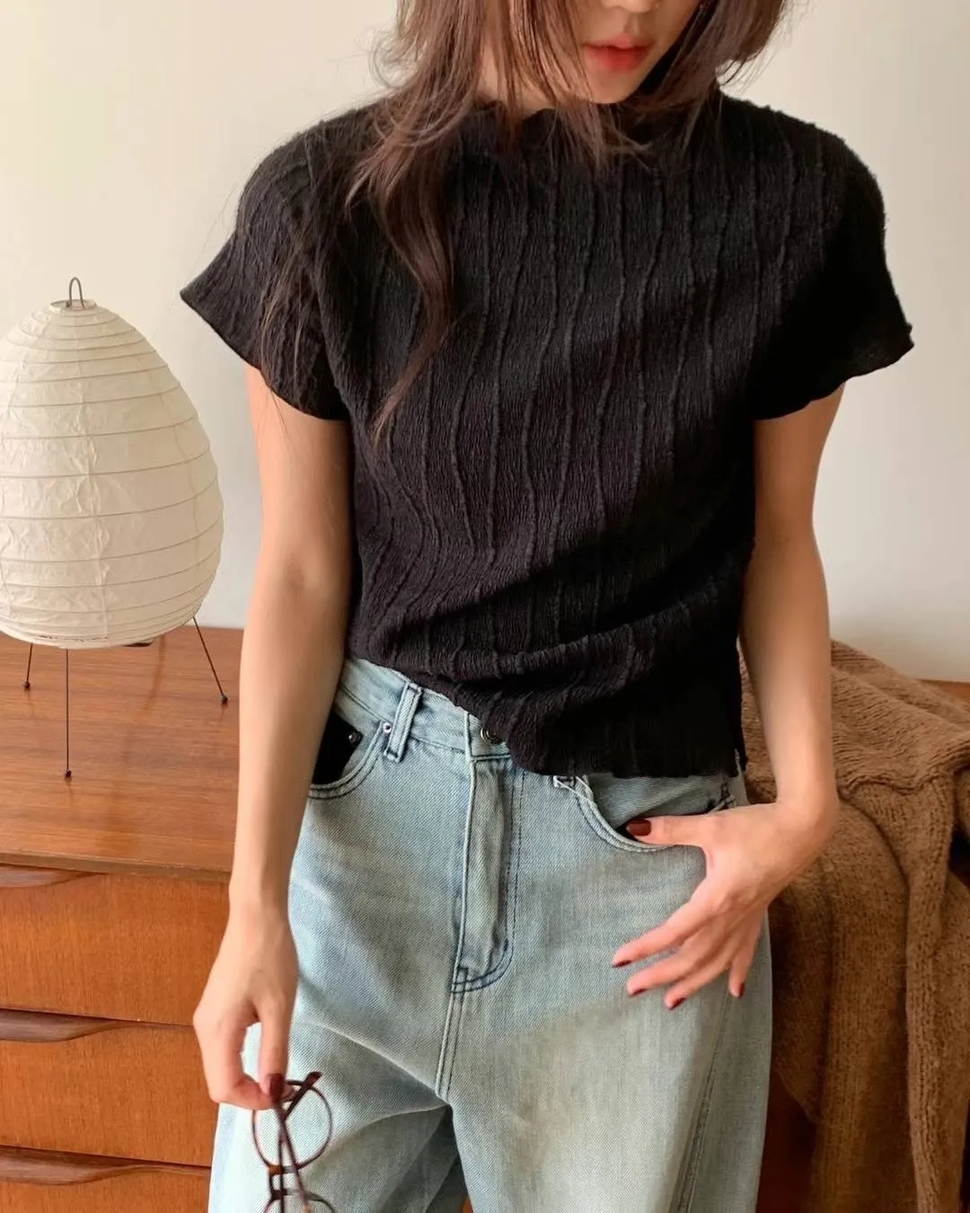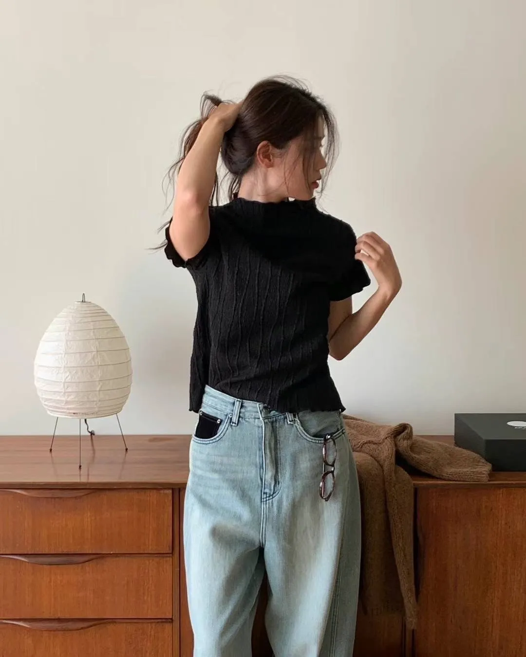 BS483溫柔木耳滾邊短袖上衣 白 黑 奶茶 官網價$699 線上價$669