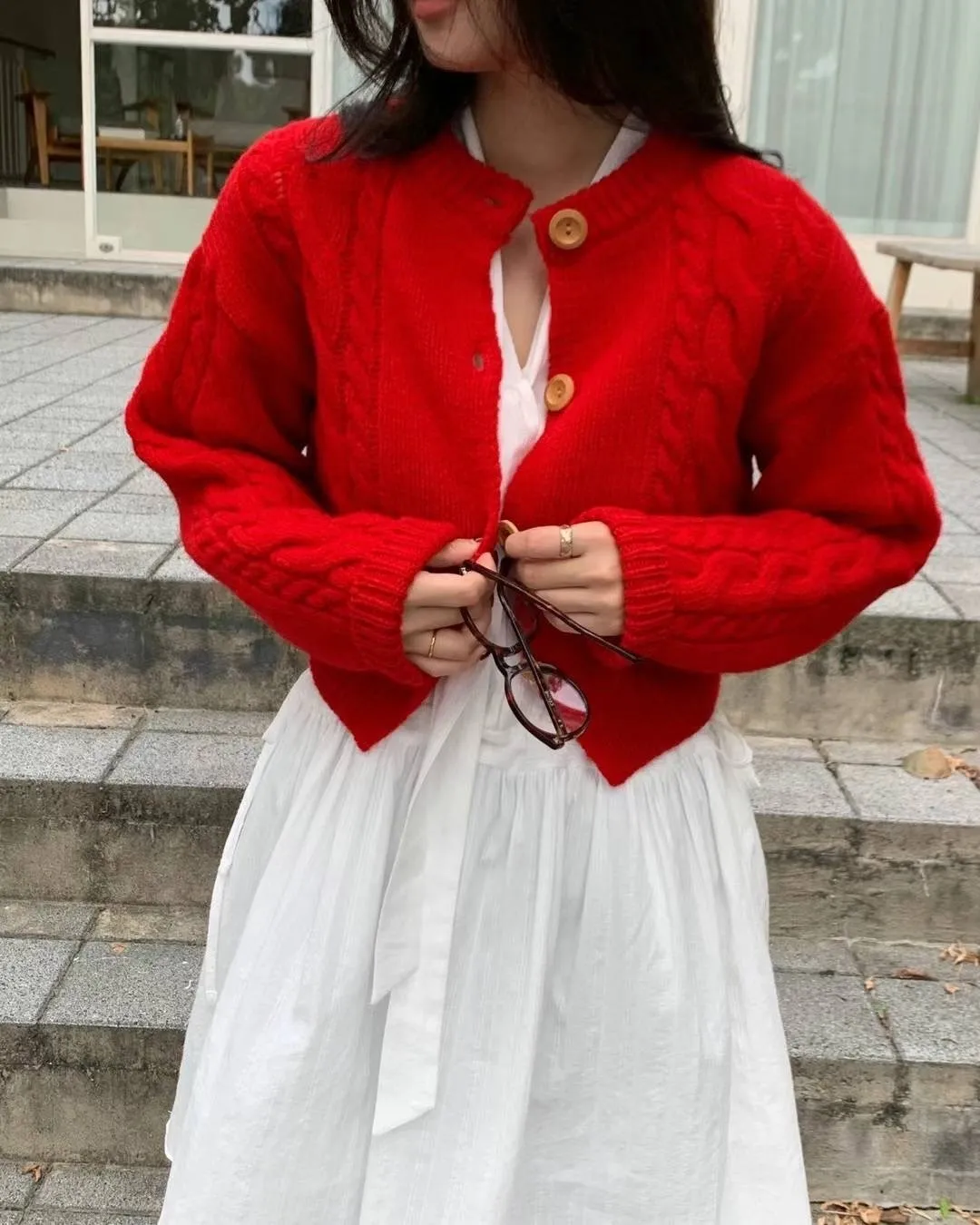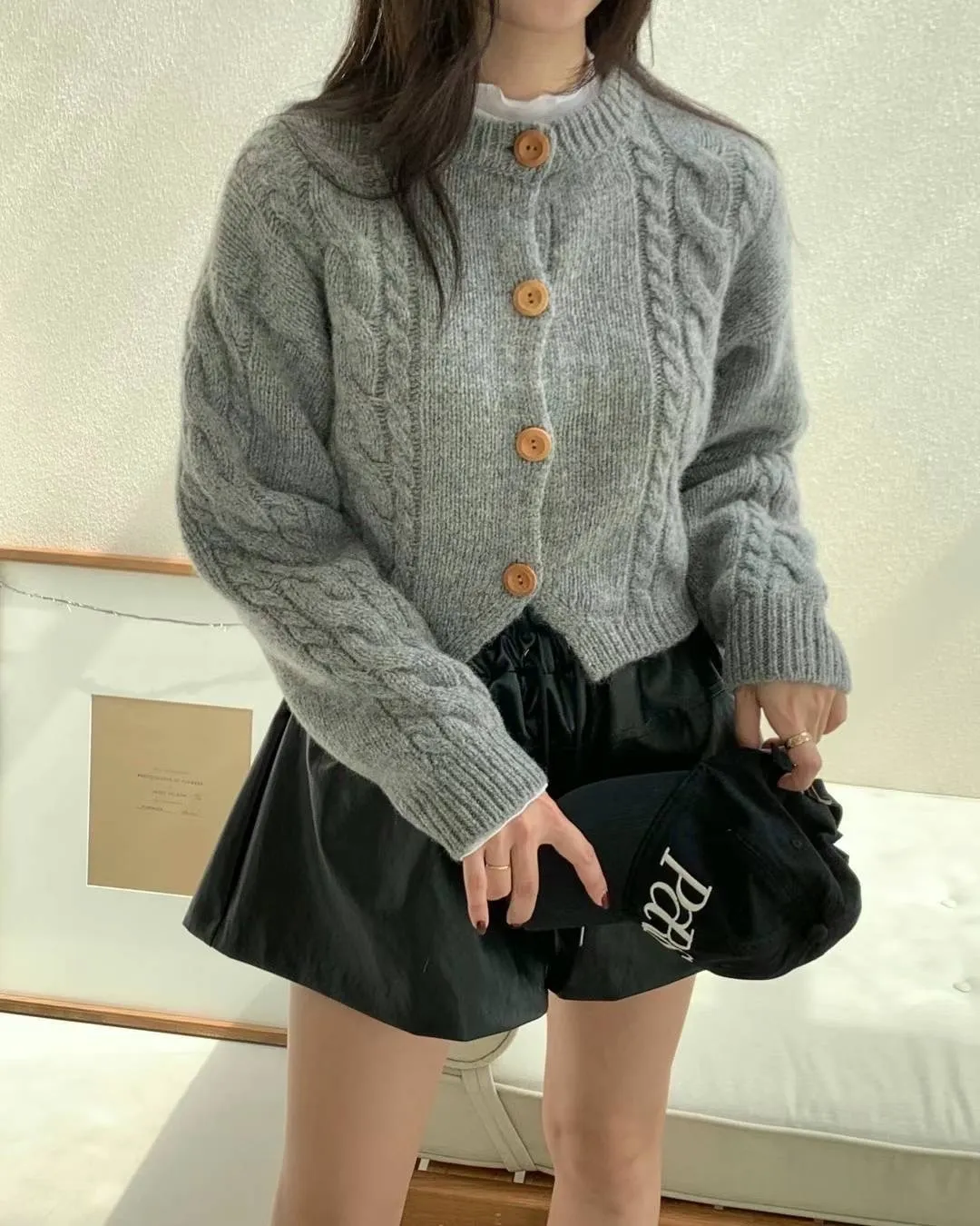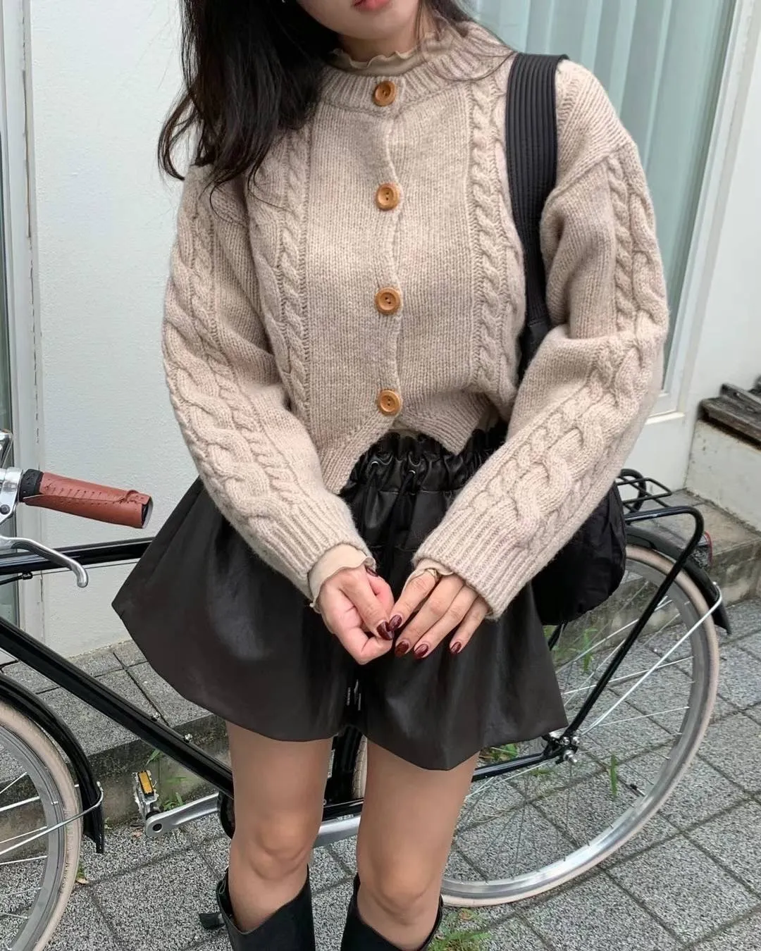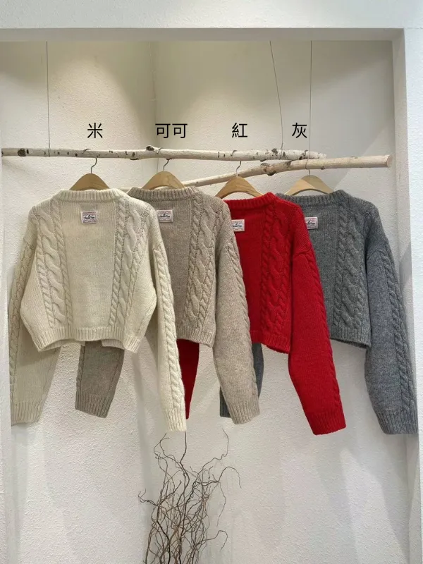 BS485羊毛麻花針織短版外套 米 灰 紅 可可 官網價$1580 線上價$1550