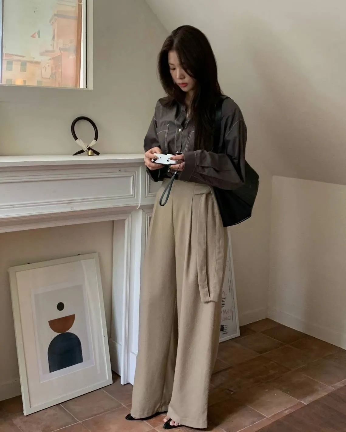 BS492側腰綁帶長褲 米 黑 奶茶 官網價$1360 線上價$1330
