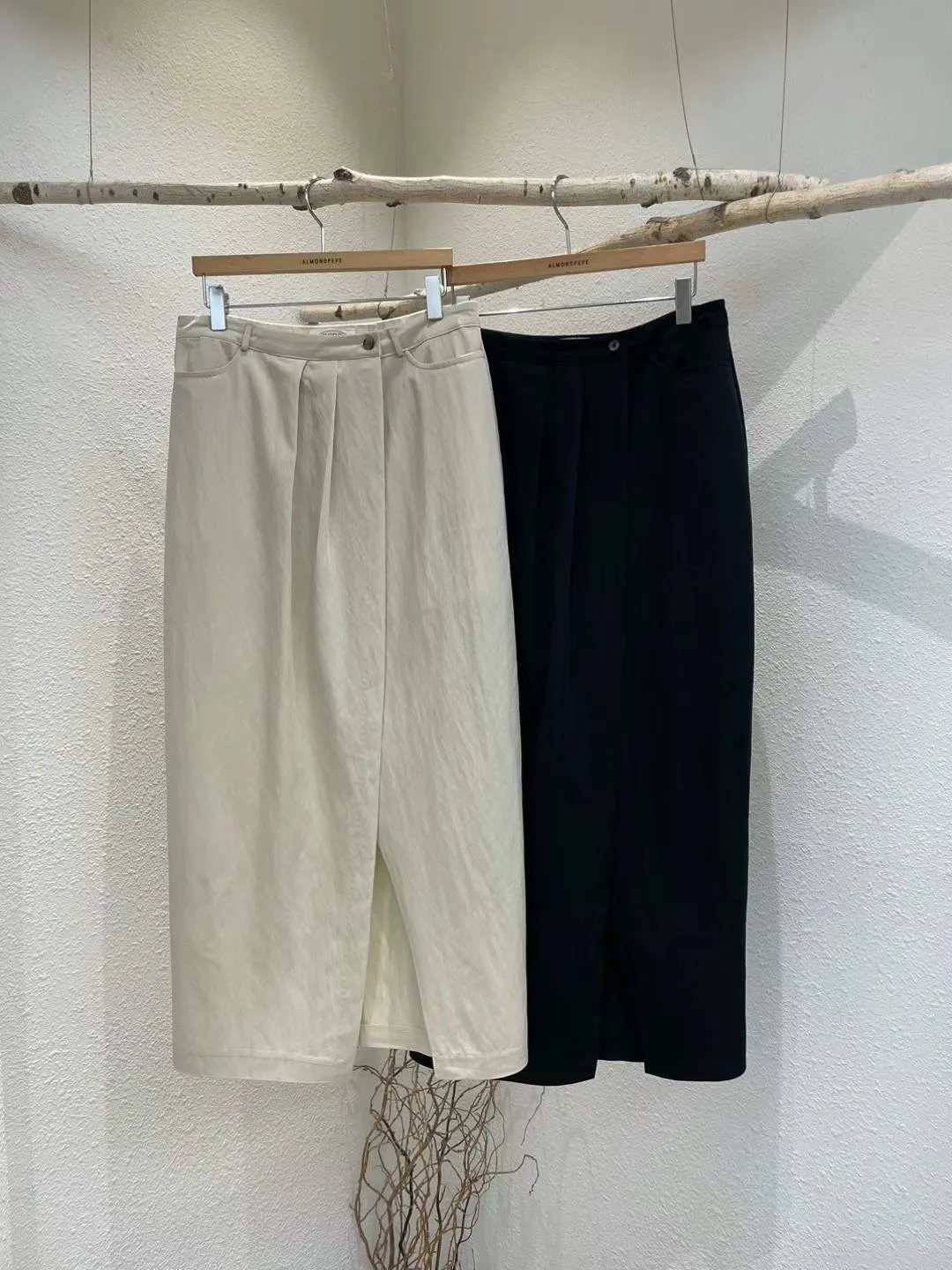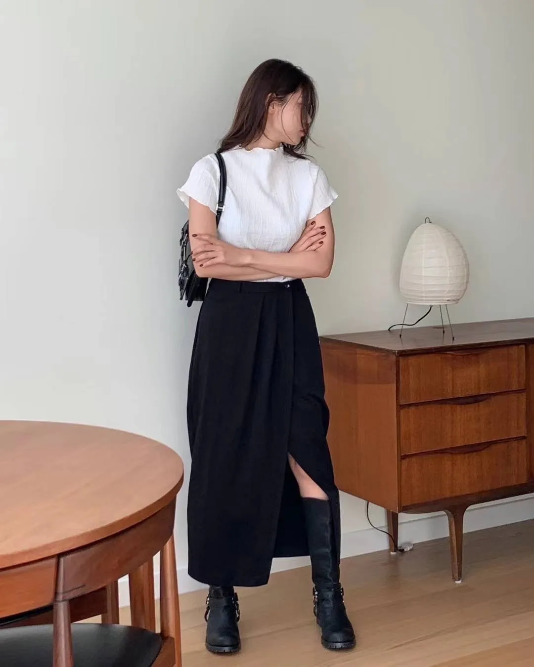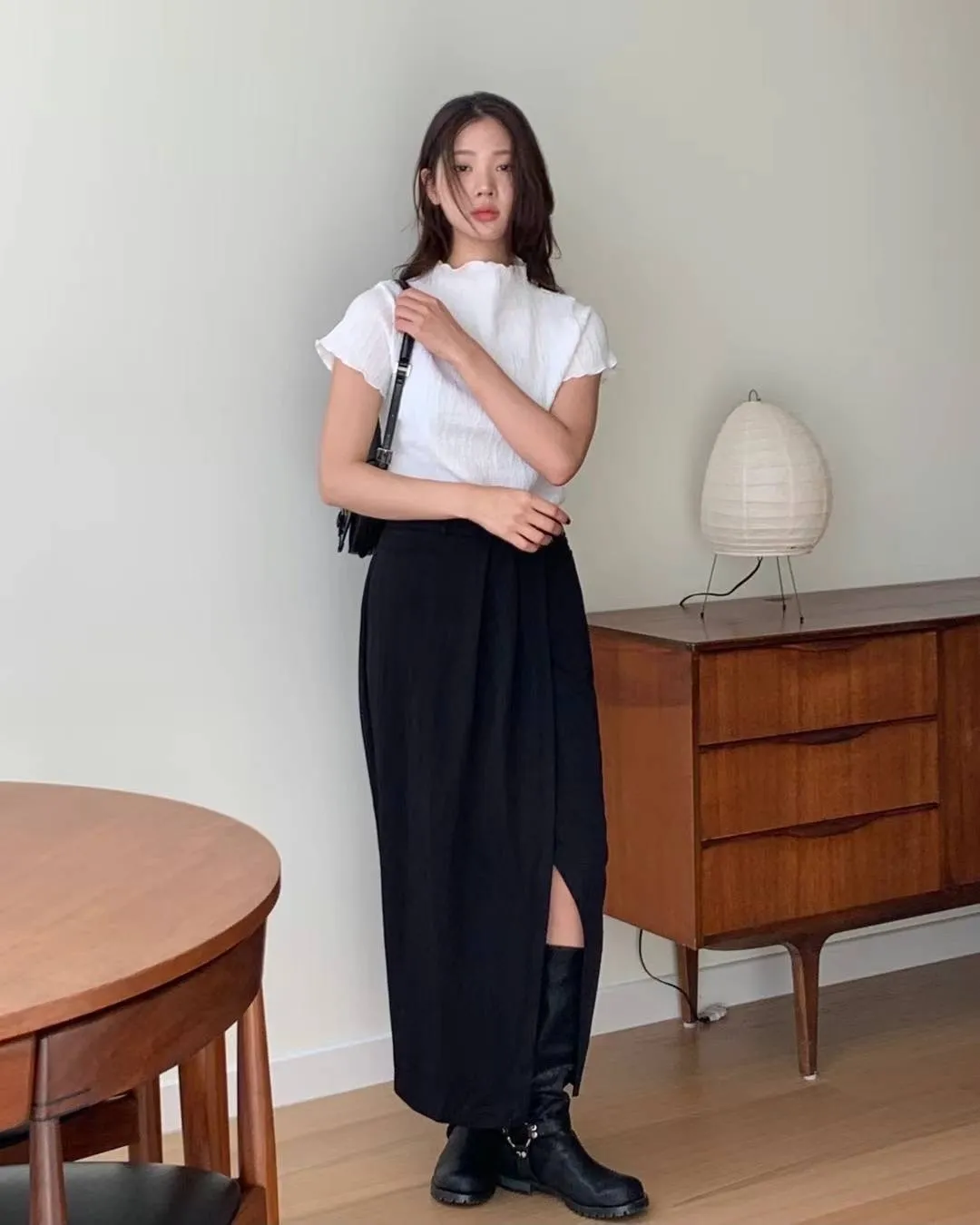 BS495側腰釦開叉裙子 米 黑 官網價$1360 線上價$1330