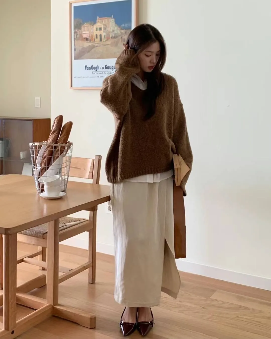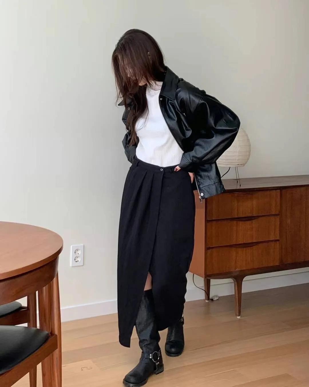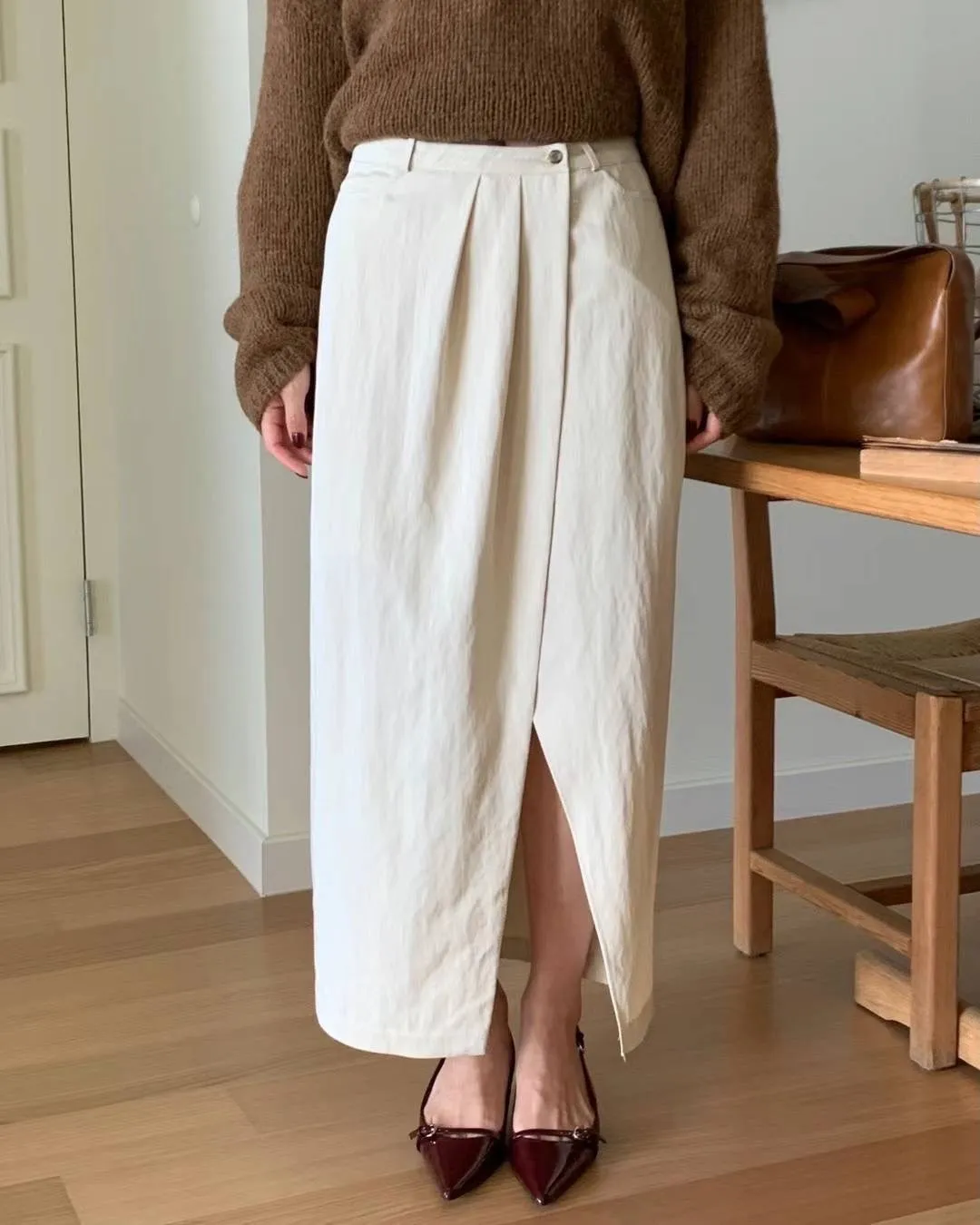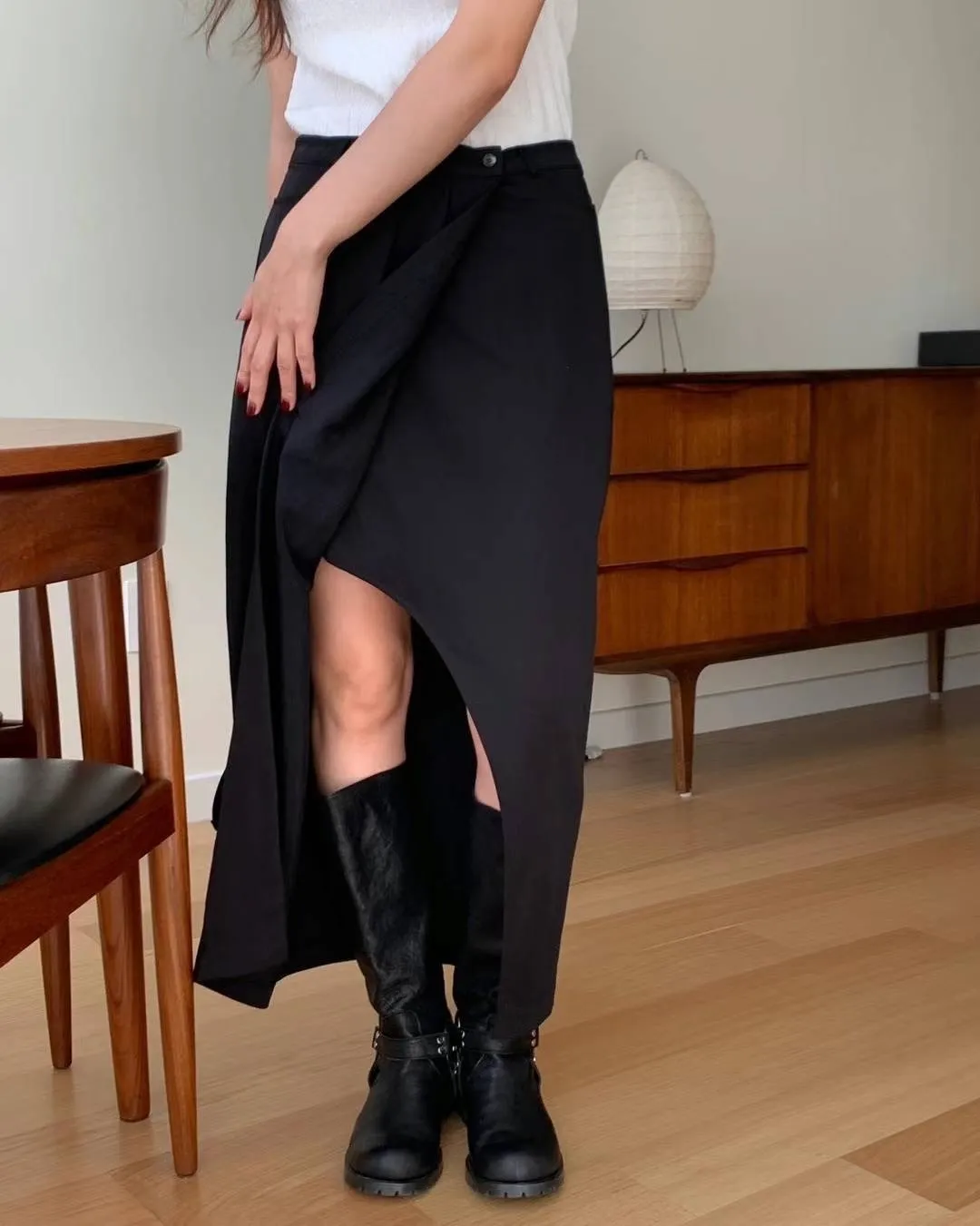 BS495側腰釦開叉裙子 米 黑 官網價$1360 線上價$1330