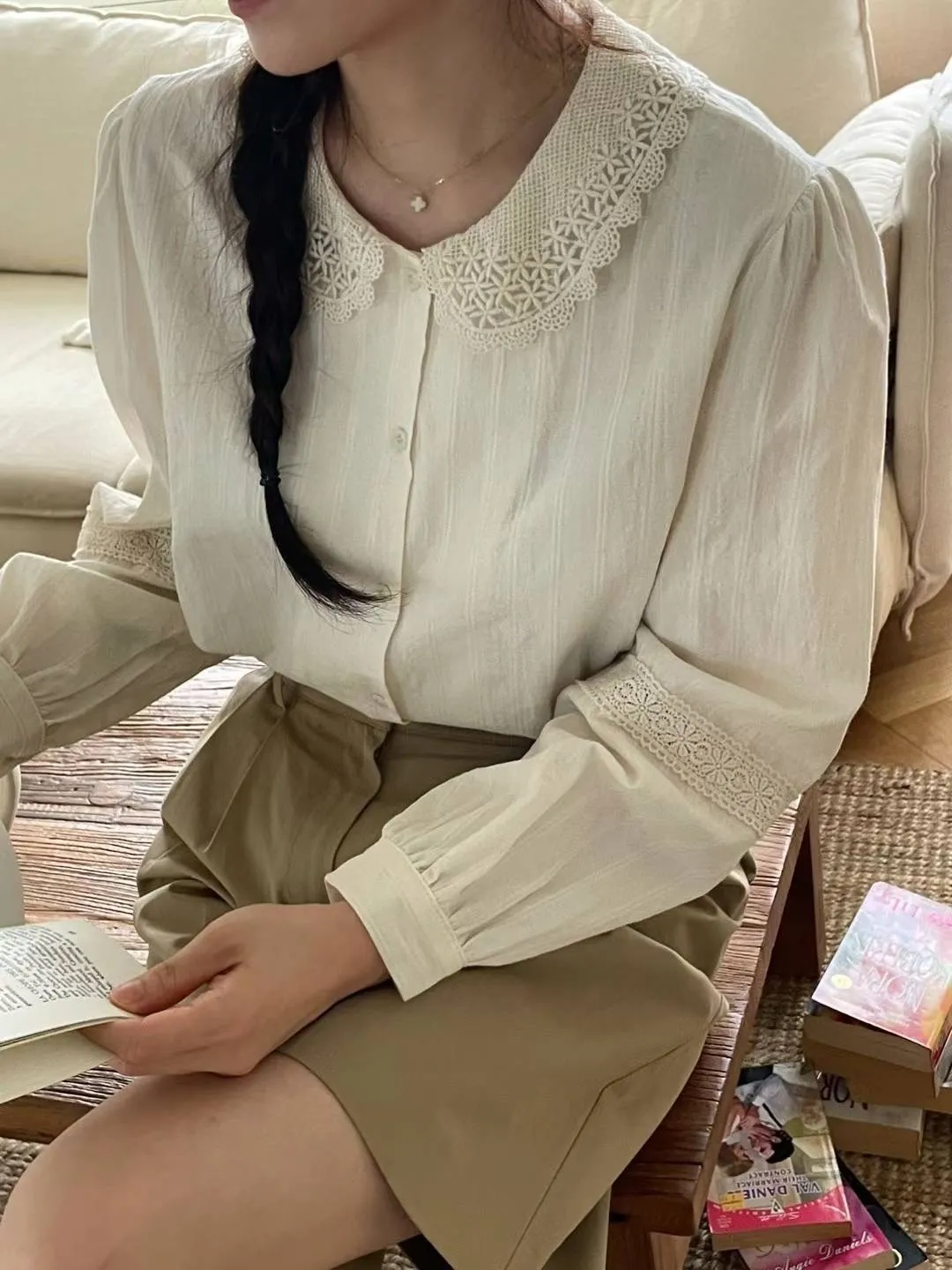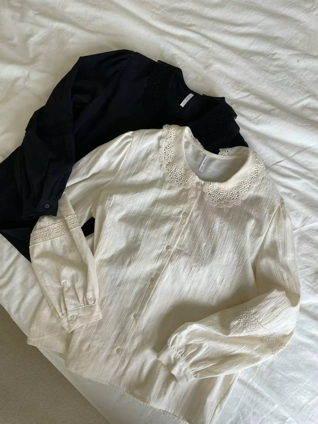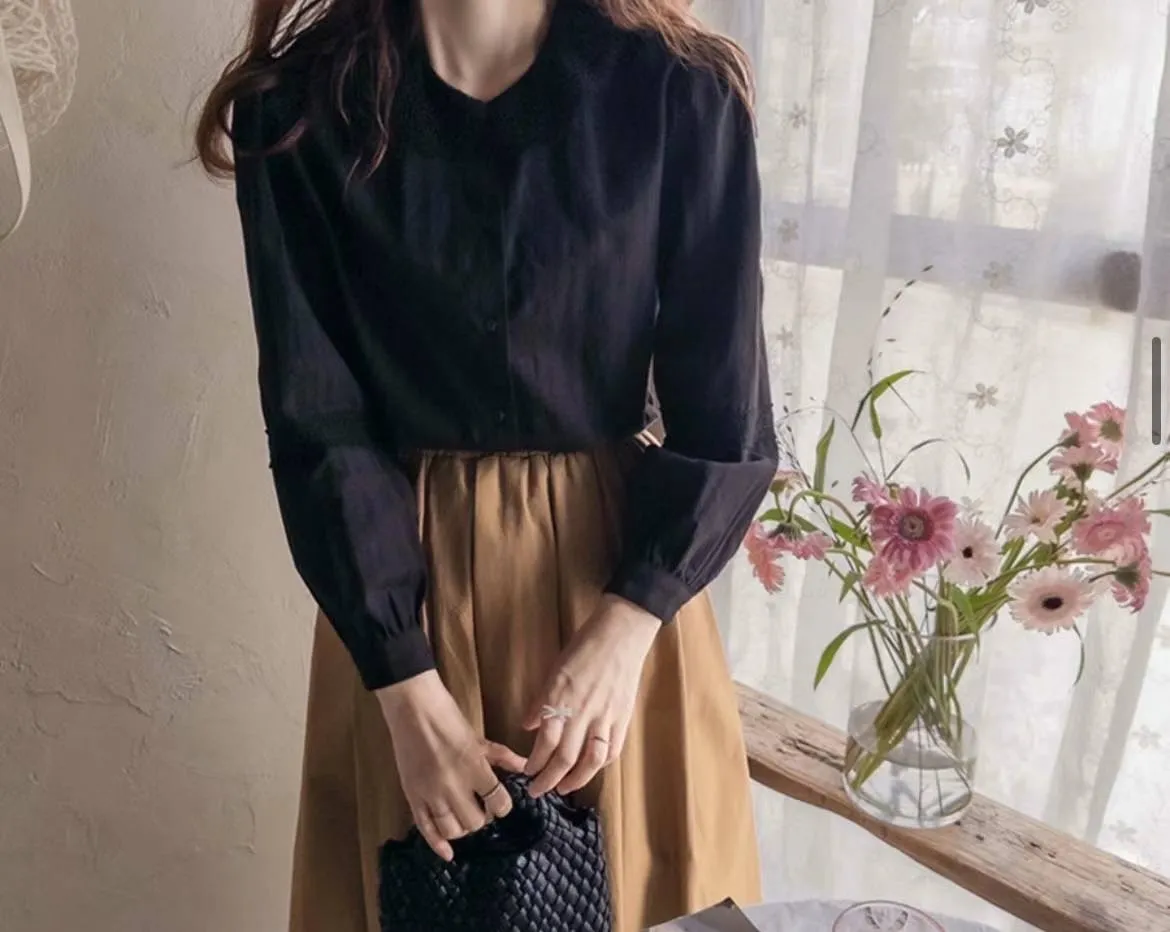 BS535推薦款細節感雕花美領蕾絲上衣 米 黑 官網價$799 線上價$769