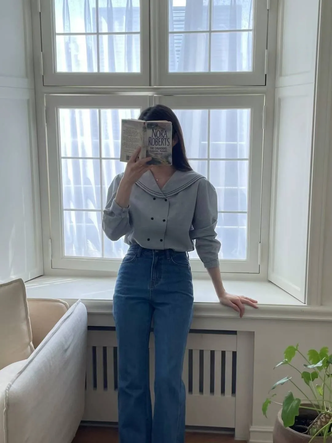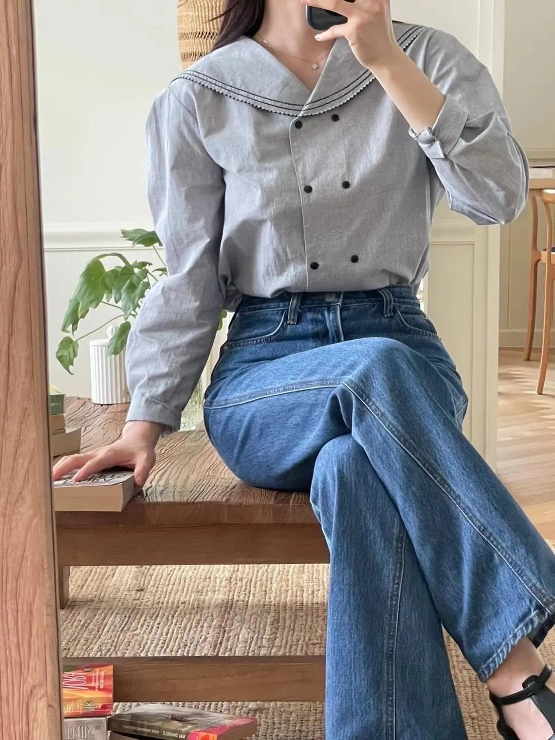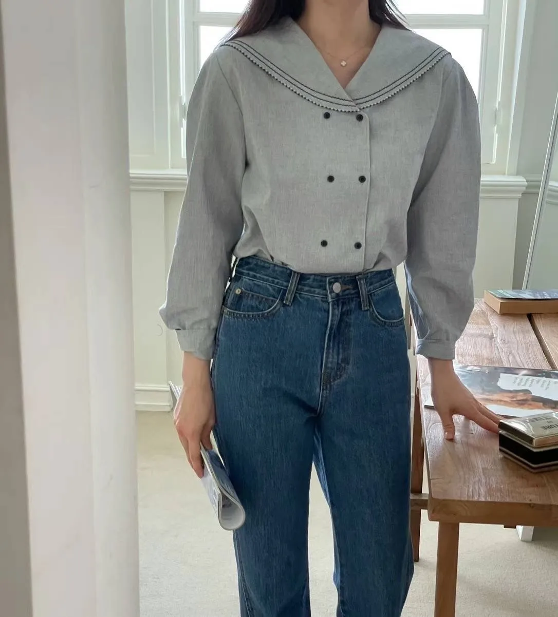 棉 透氣舒適 水手後翻領 細緻刺繡領 秋款磅數