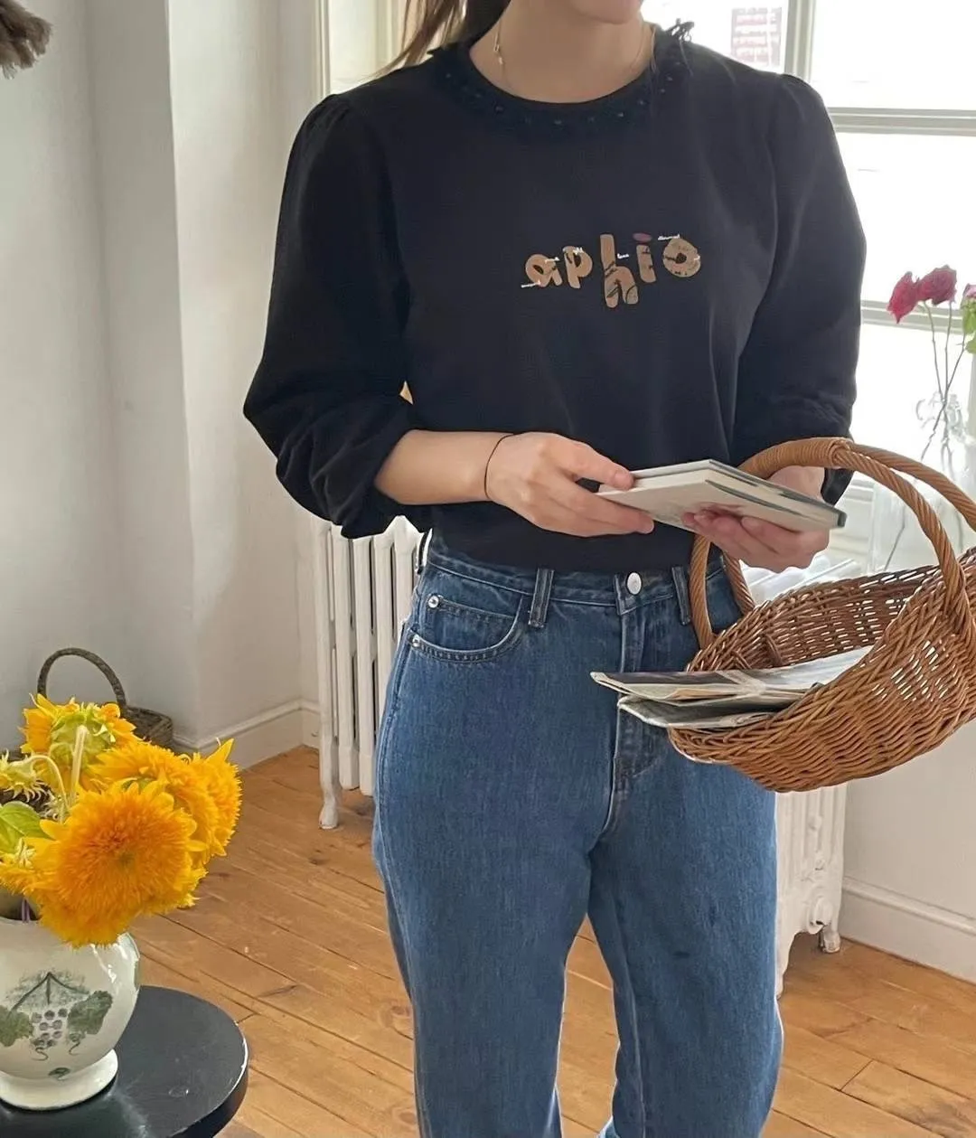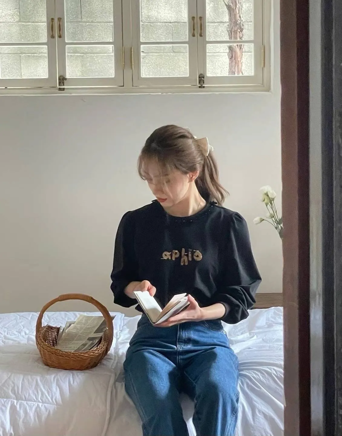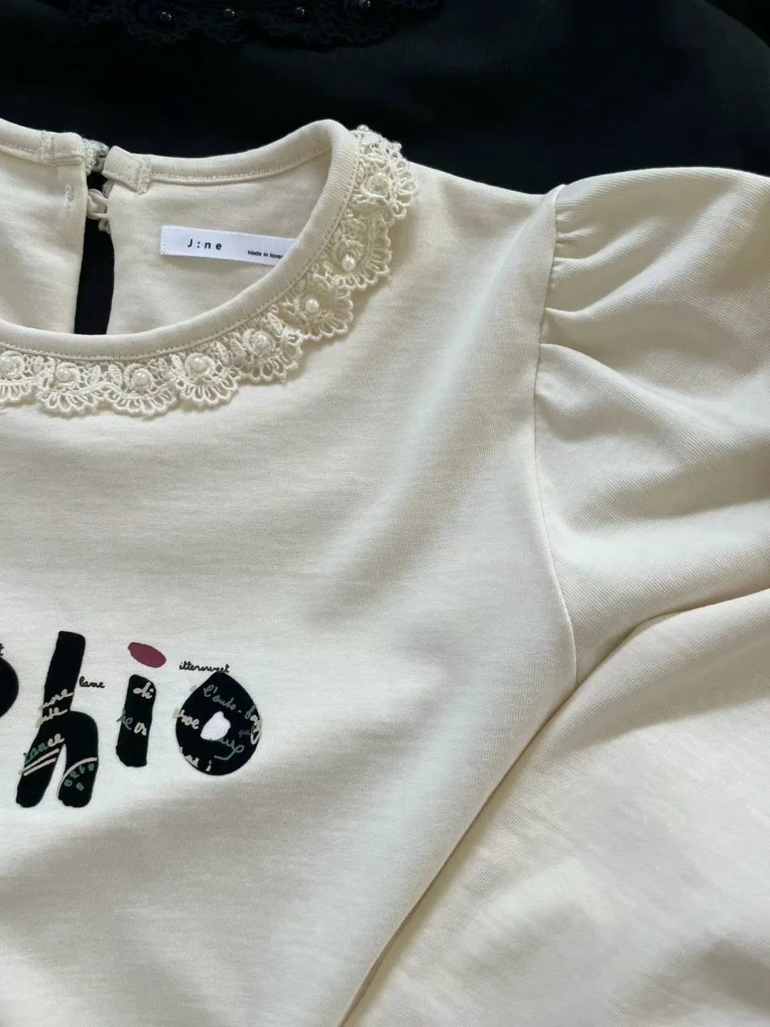 BS545珍珠布蕾絲美領aphio大學T 米 黑 官網價$710 線上價$680