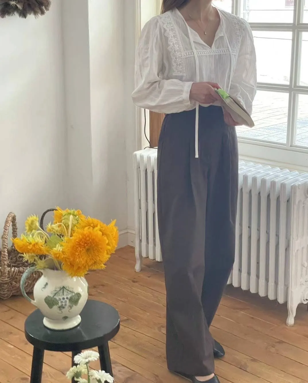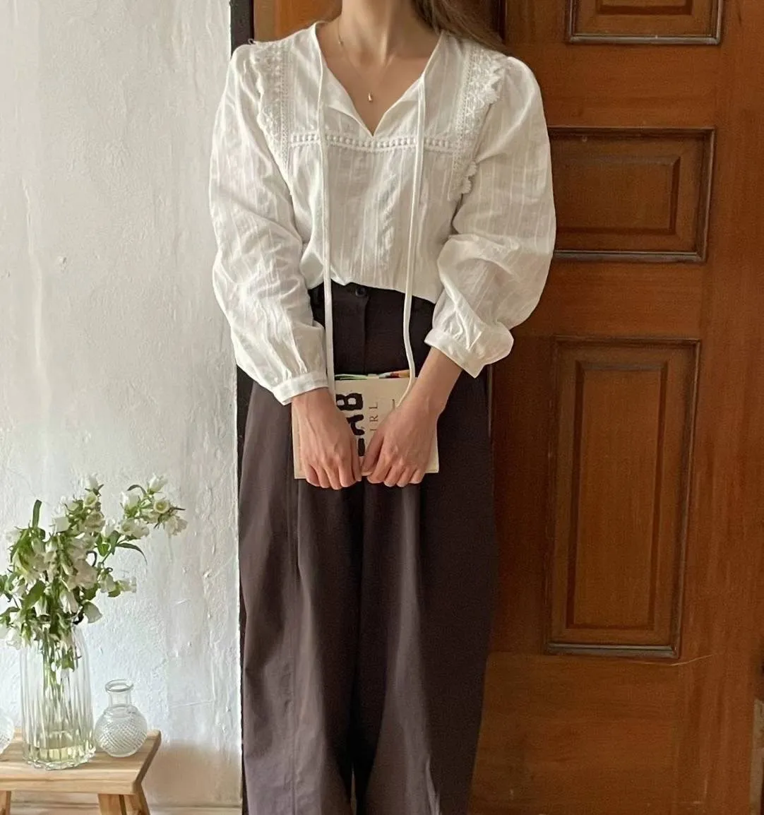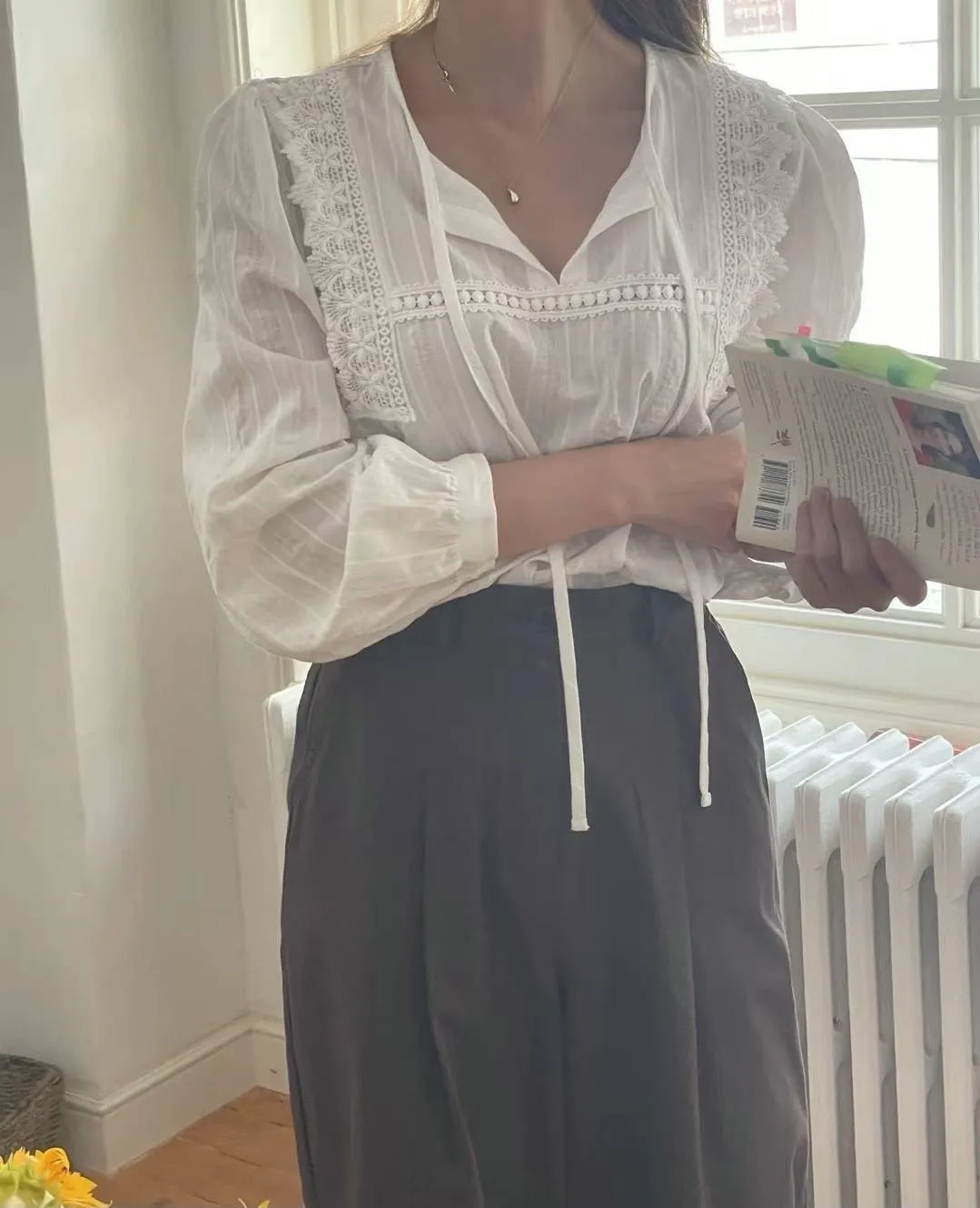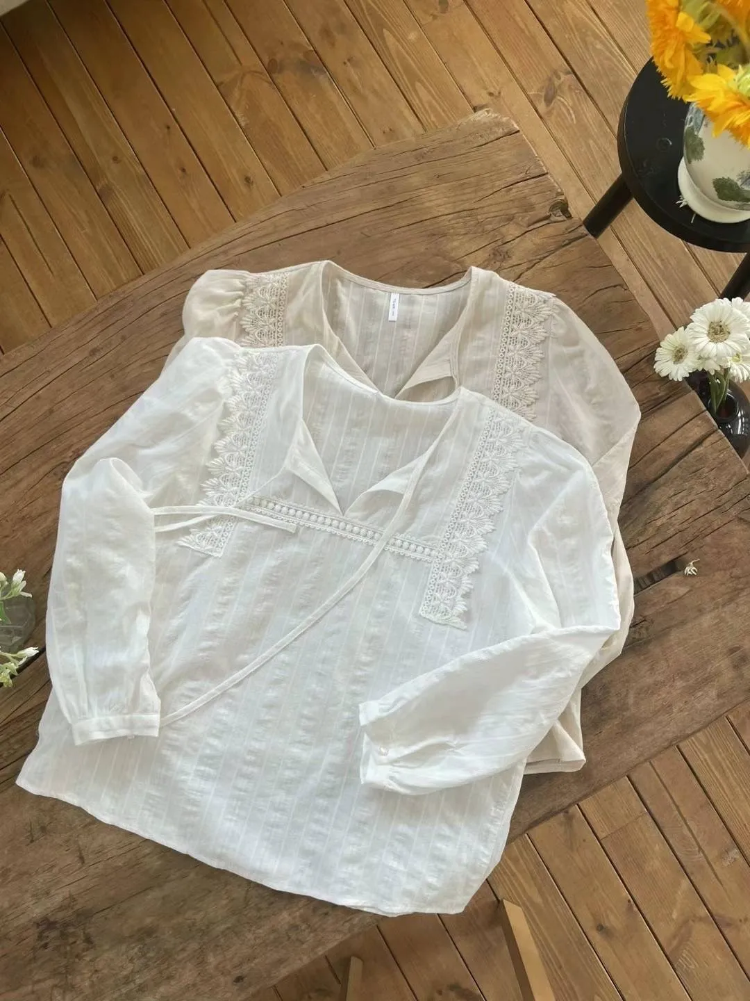 棉 細緻隱約方形層次蕾絲 胸綁帶 薄款透氣 適合台灣天氣 袖口有釦