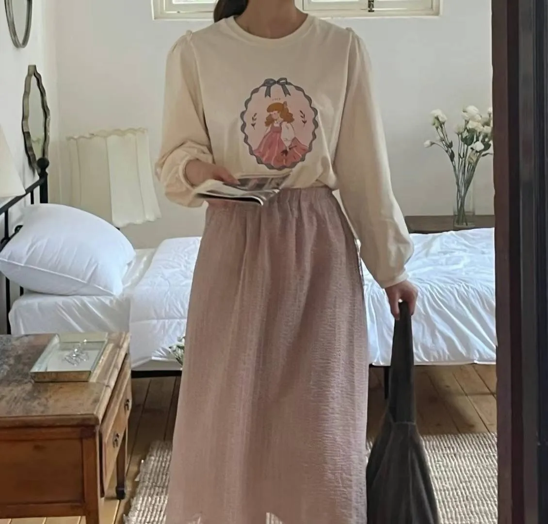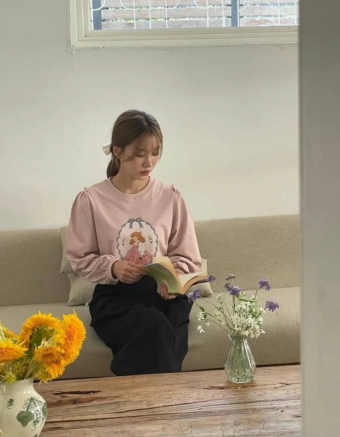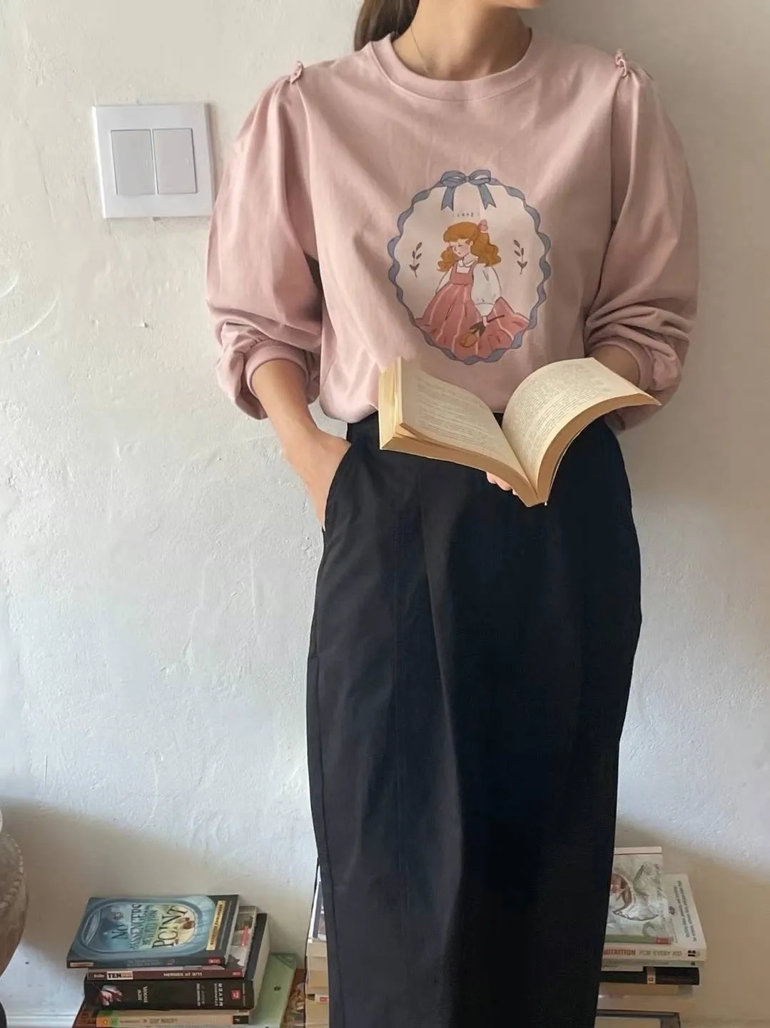 棉 透氣舒適 無刷毛 肩袖荷葉 轉印圖 領口舒適 手袖鬆緊