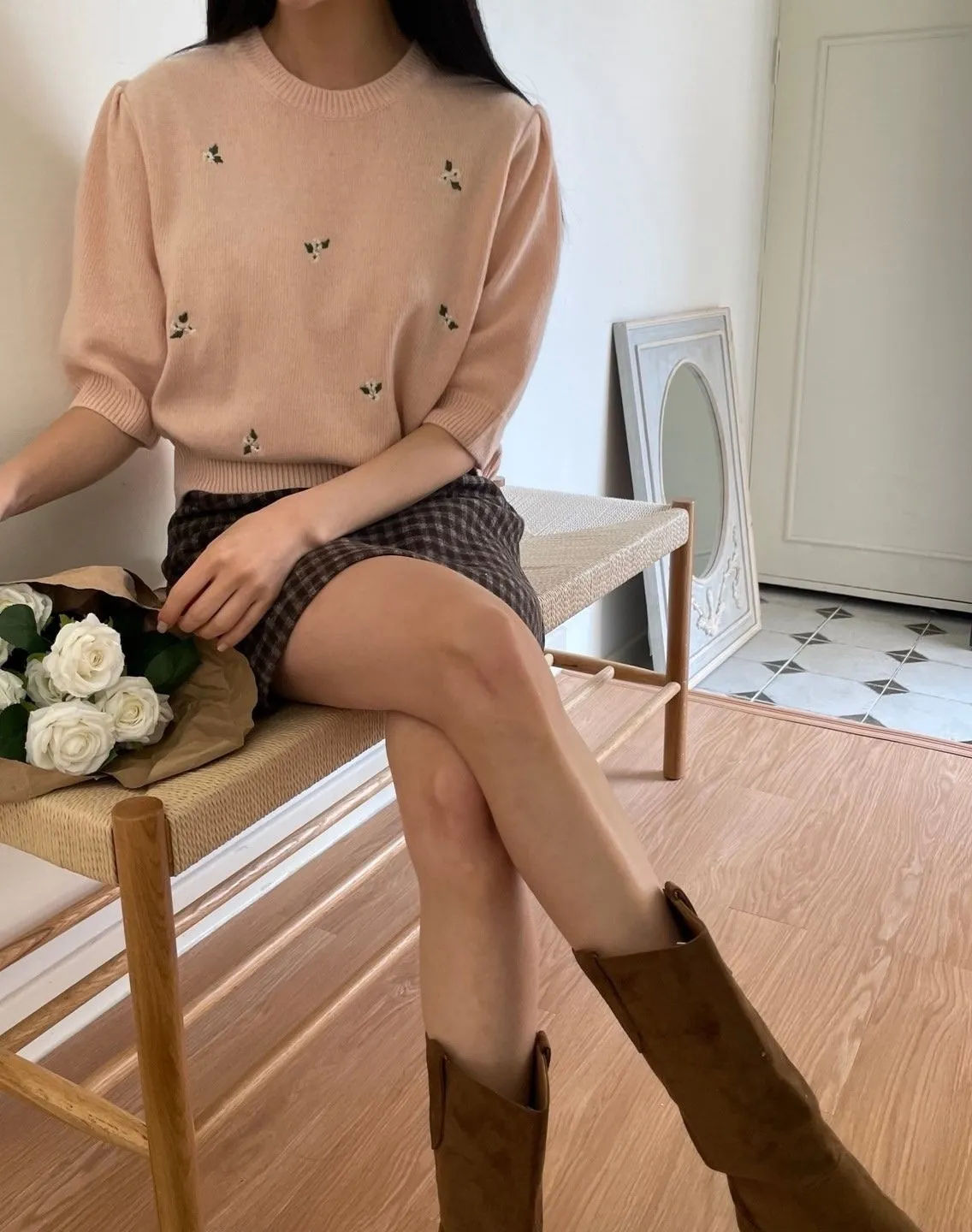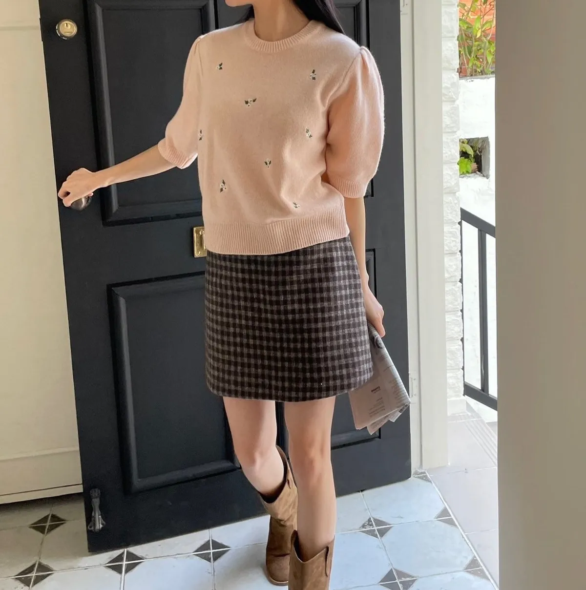 羊毛60%+聚酯 櫻花粉 刺繡小花 敏肌略過
