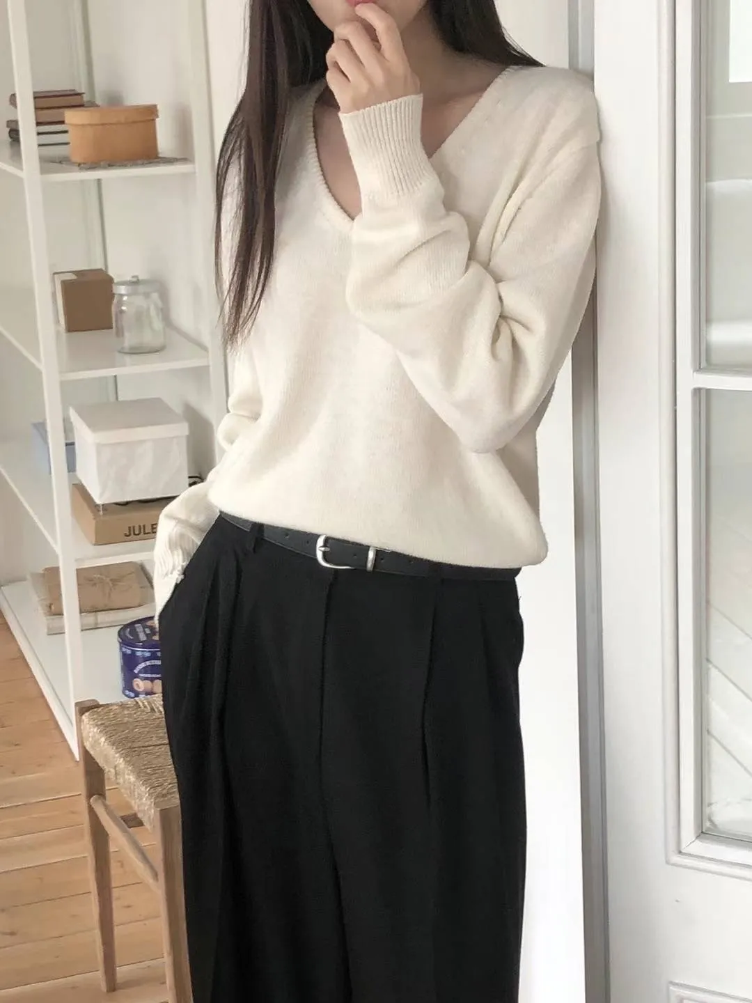 BS573純色V領針織上衣 米 灰 黑 官網價$1050 線上價$1020