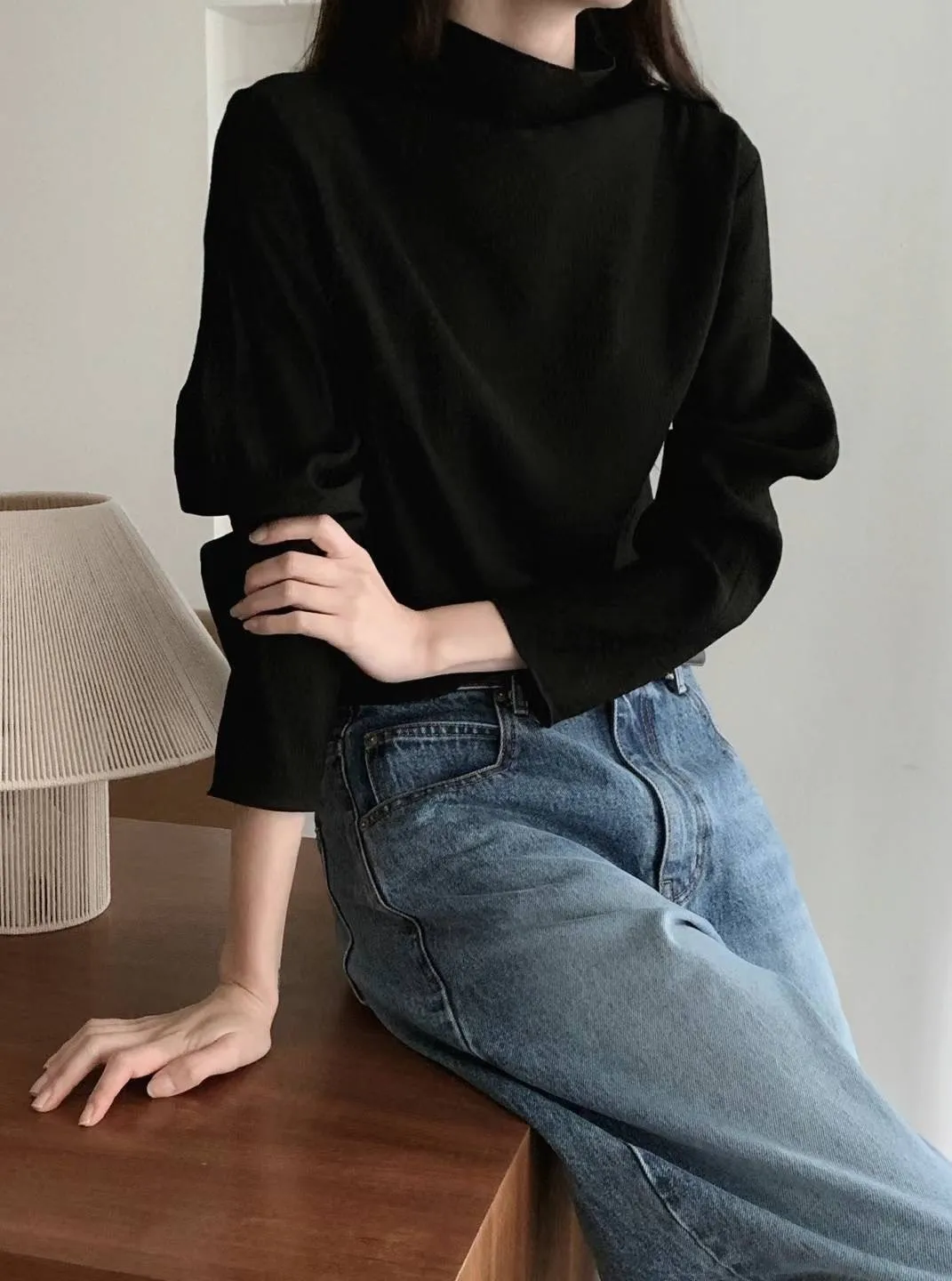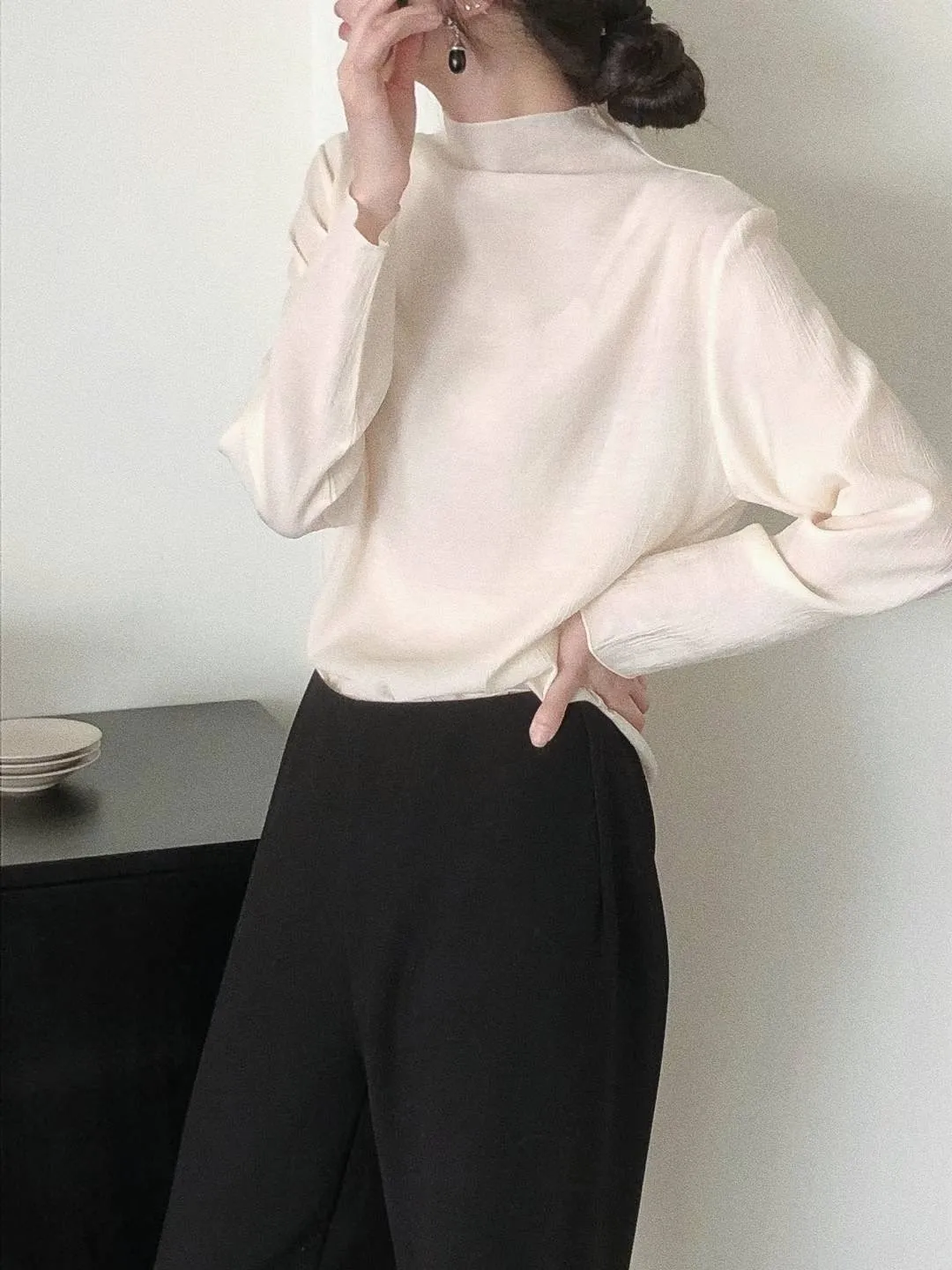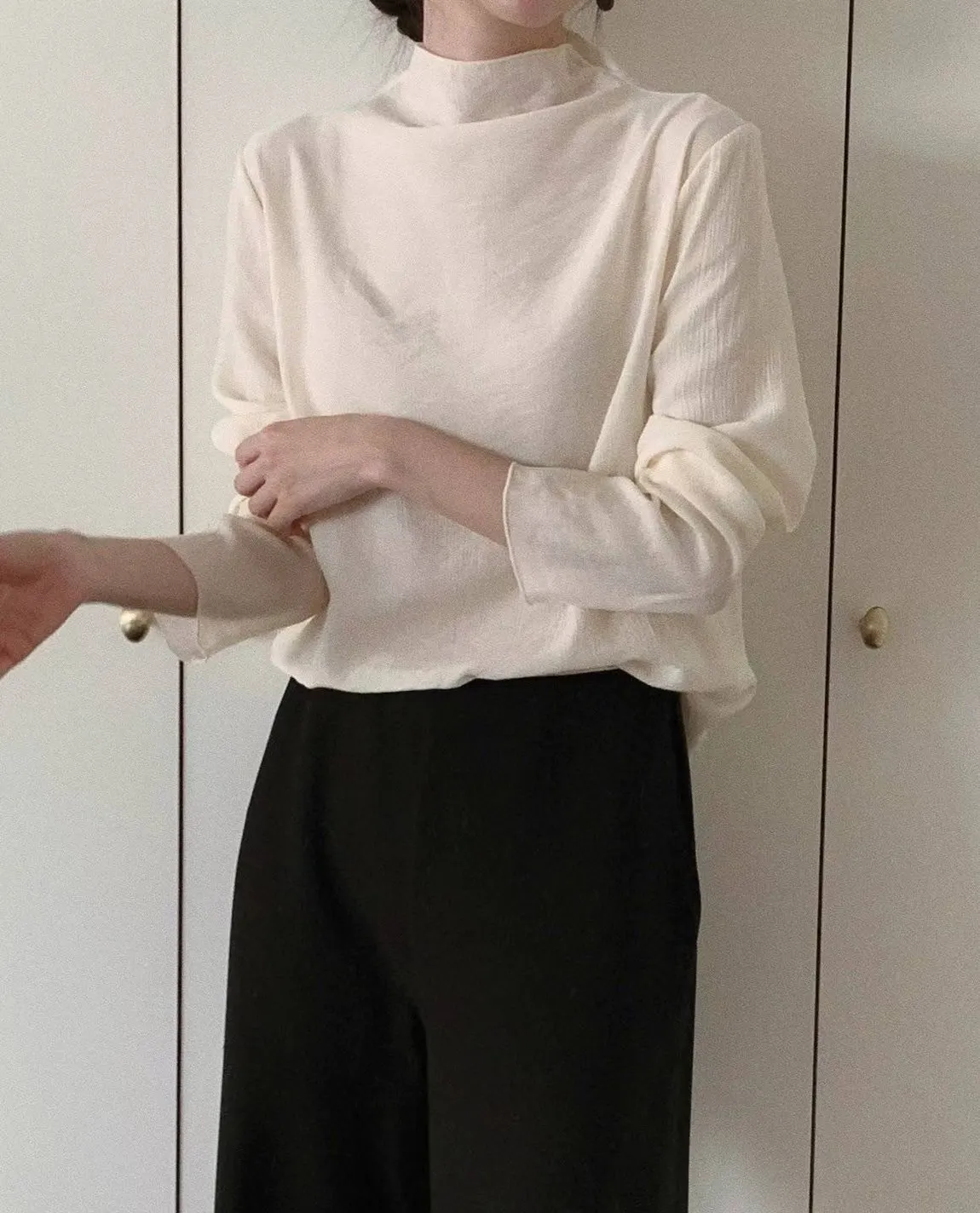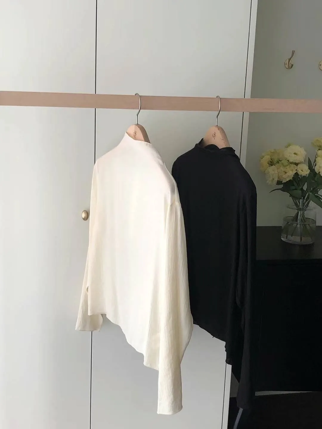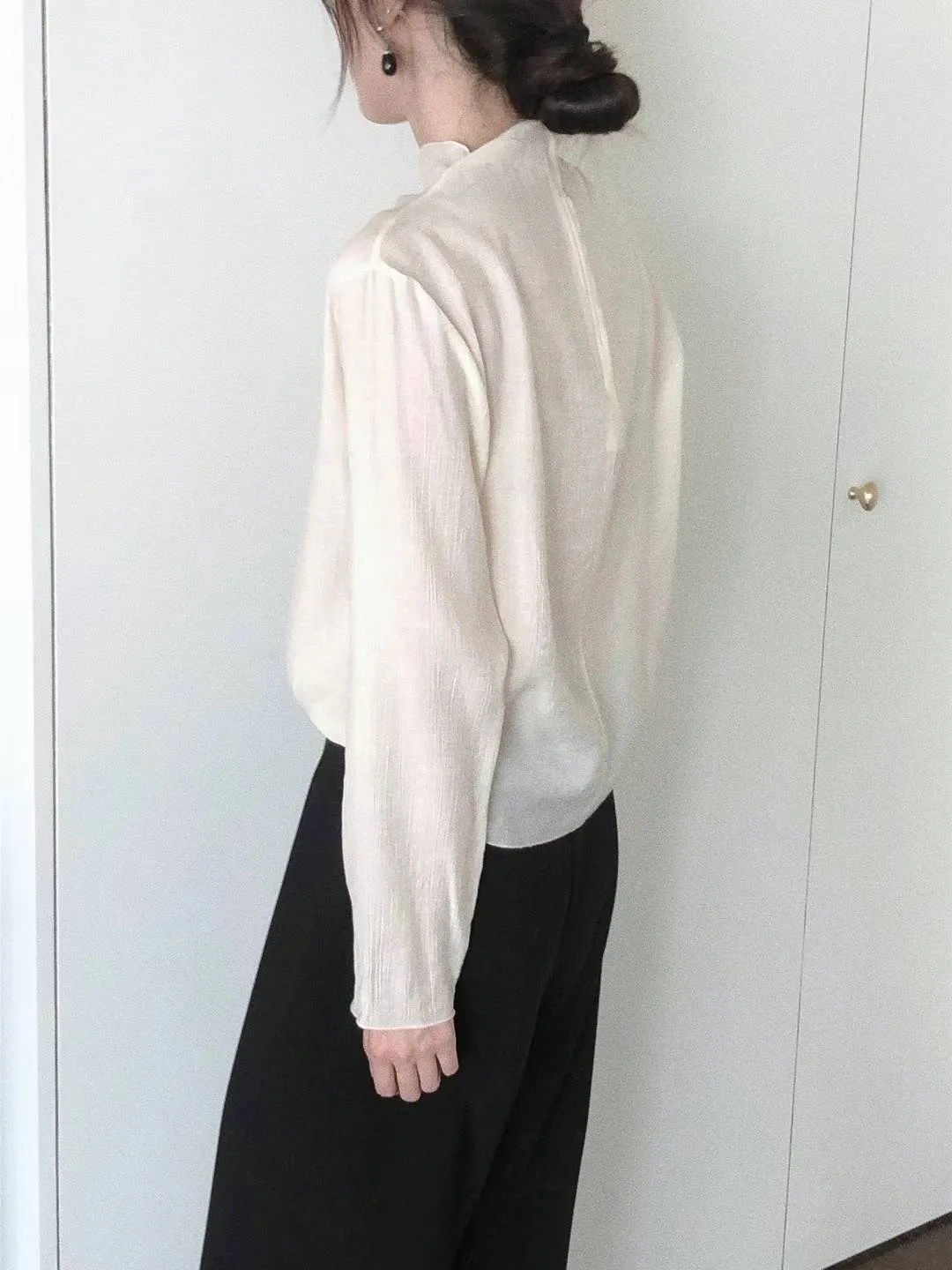 BS578氣質薄款束紋透光長袖上衣 米 黑 官網價$740 線上價$710
