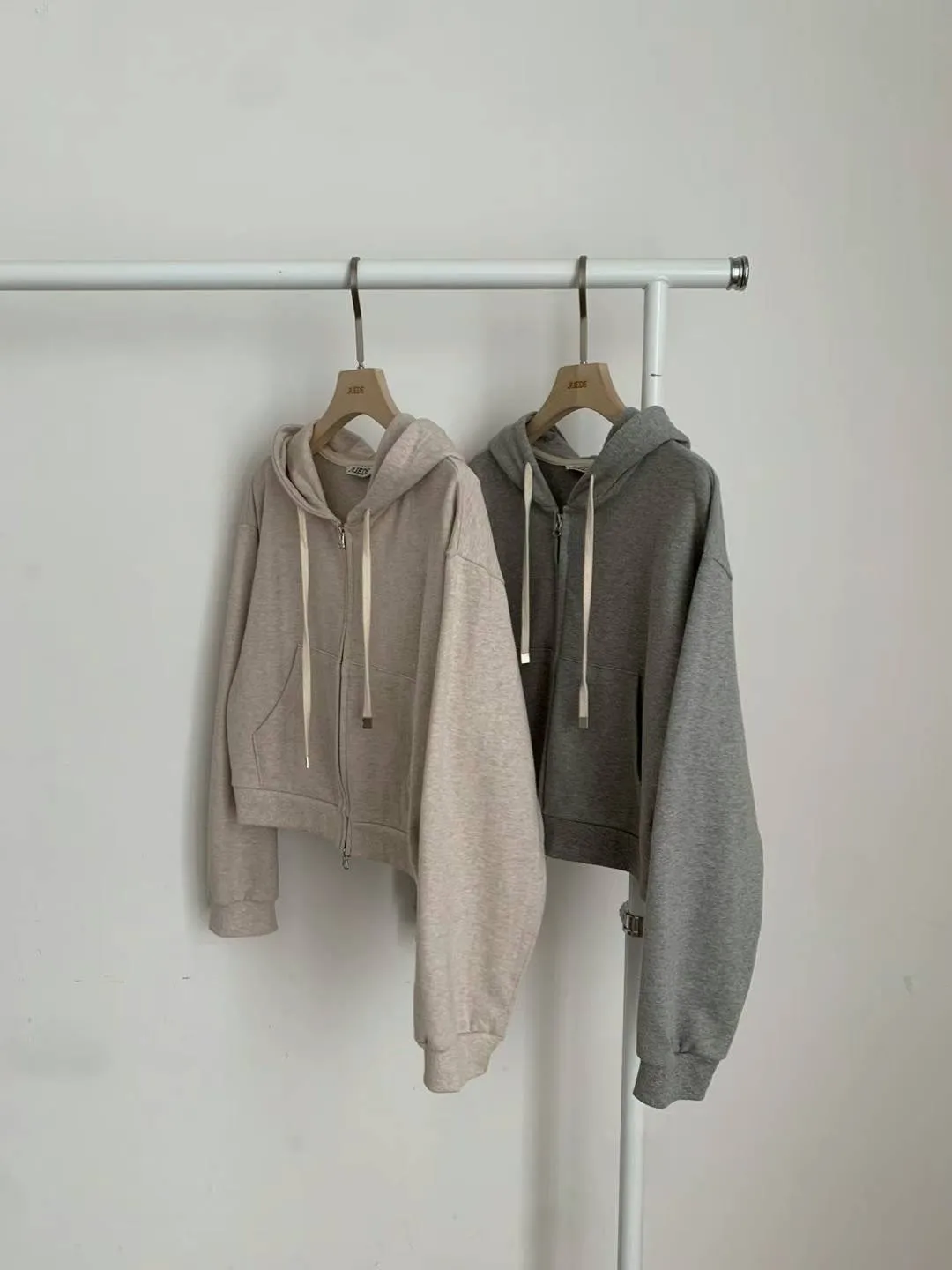 棉 舒適無刷毛 拉鍊穿脫 連帽抽繩 有口袋 短版好比例