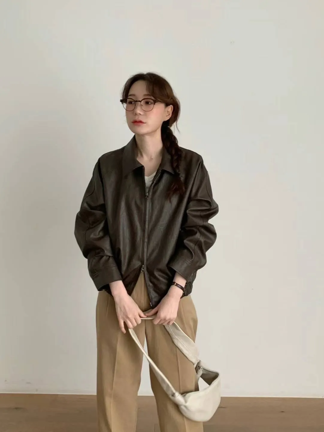 合成皮革 拉鍊穿脫 霧面皮革紋路 有口袋有內理 穿到小L