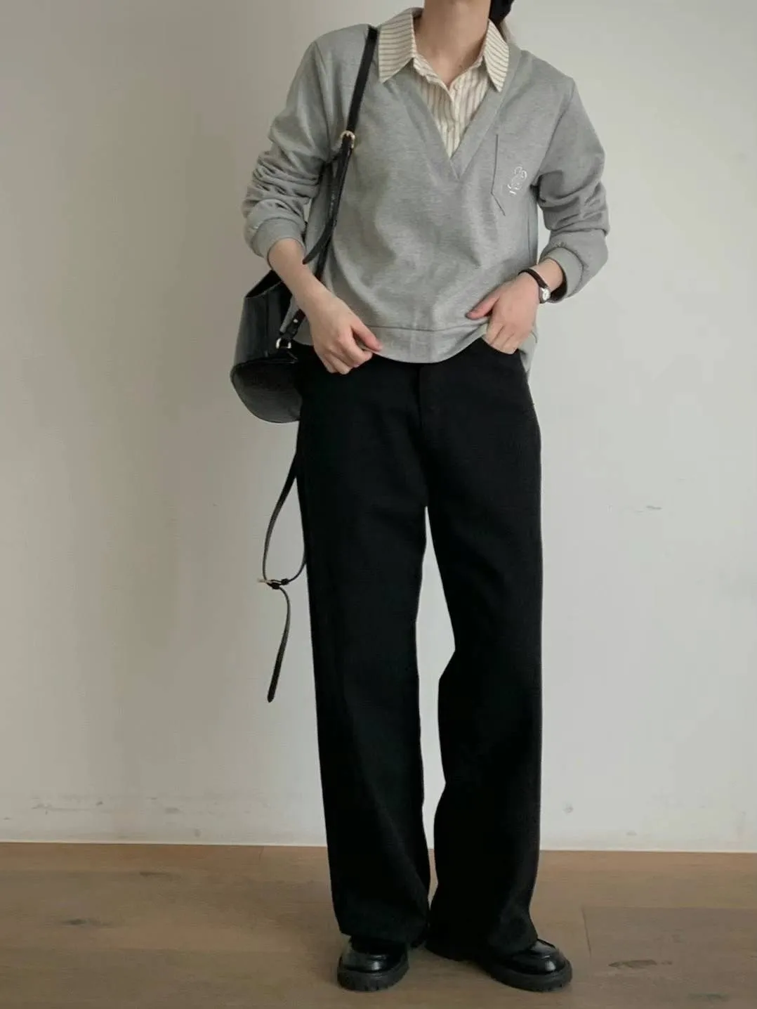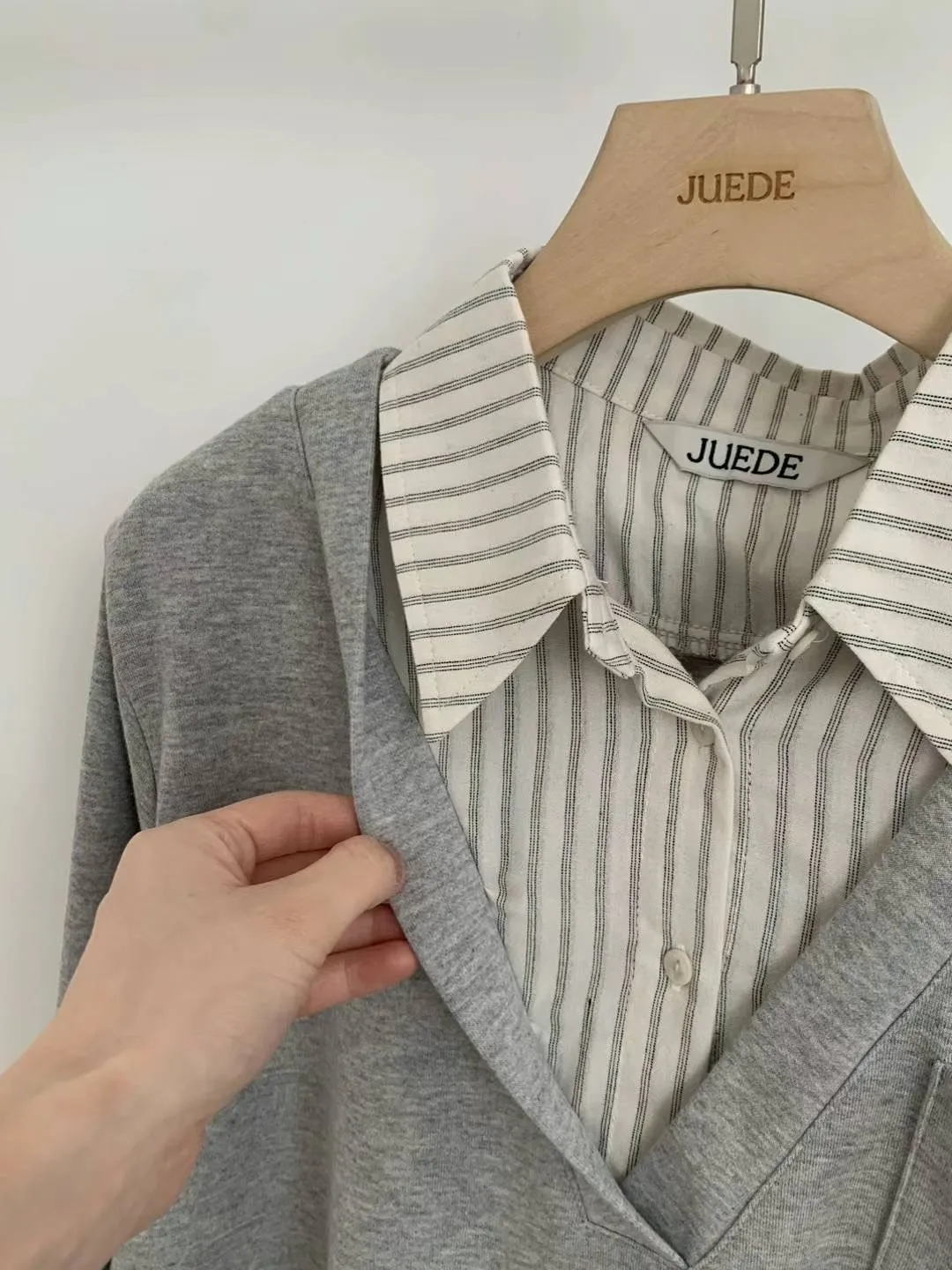 棉 內襯平整 假兩件不可拆 親膚不刺癢 側開叉 胸口袋刺繡