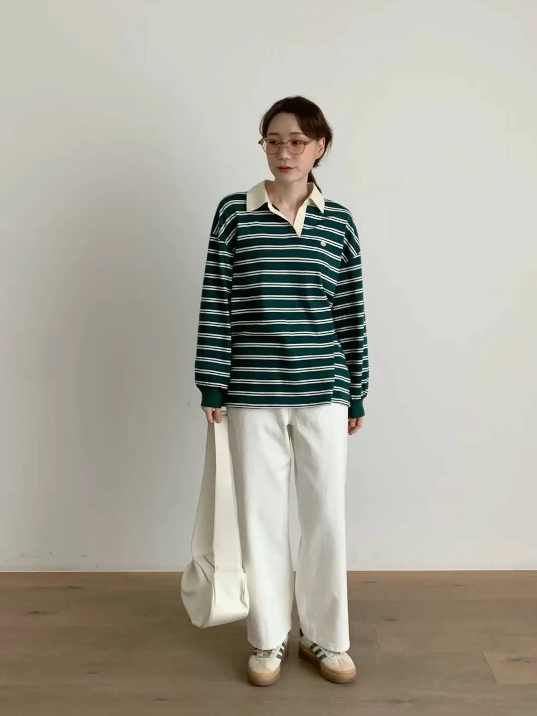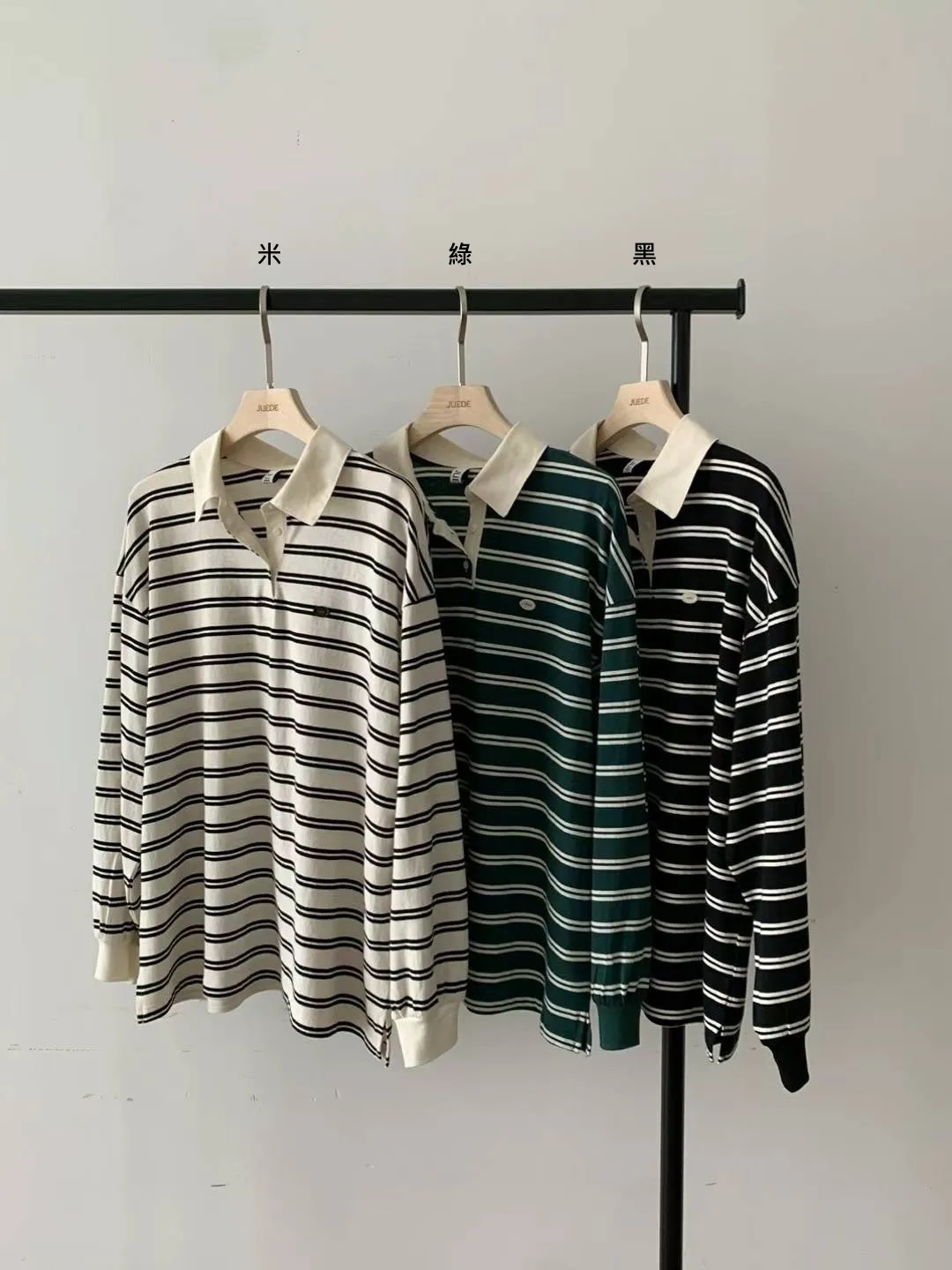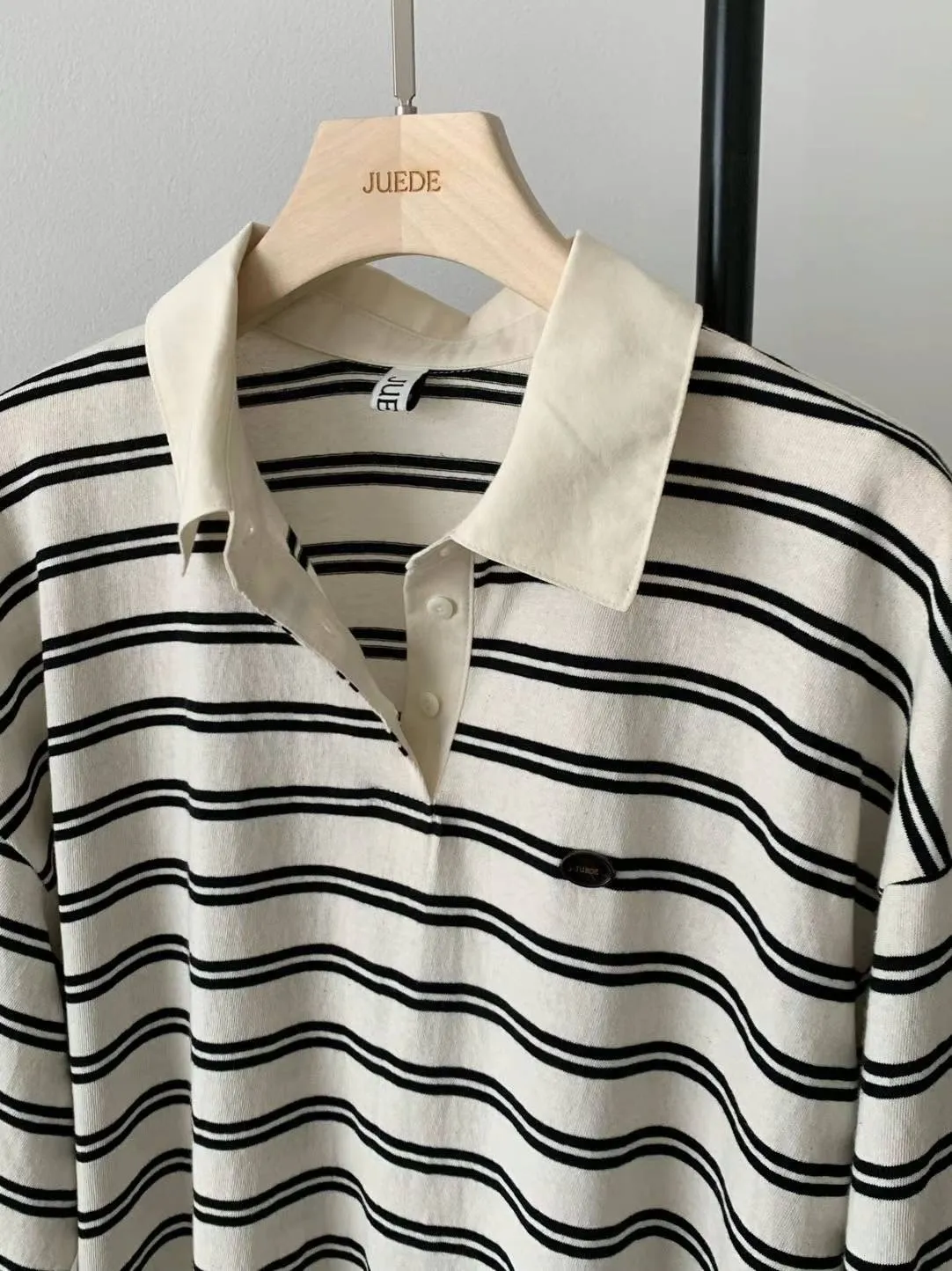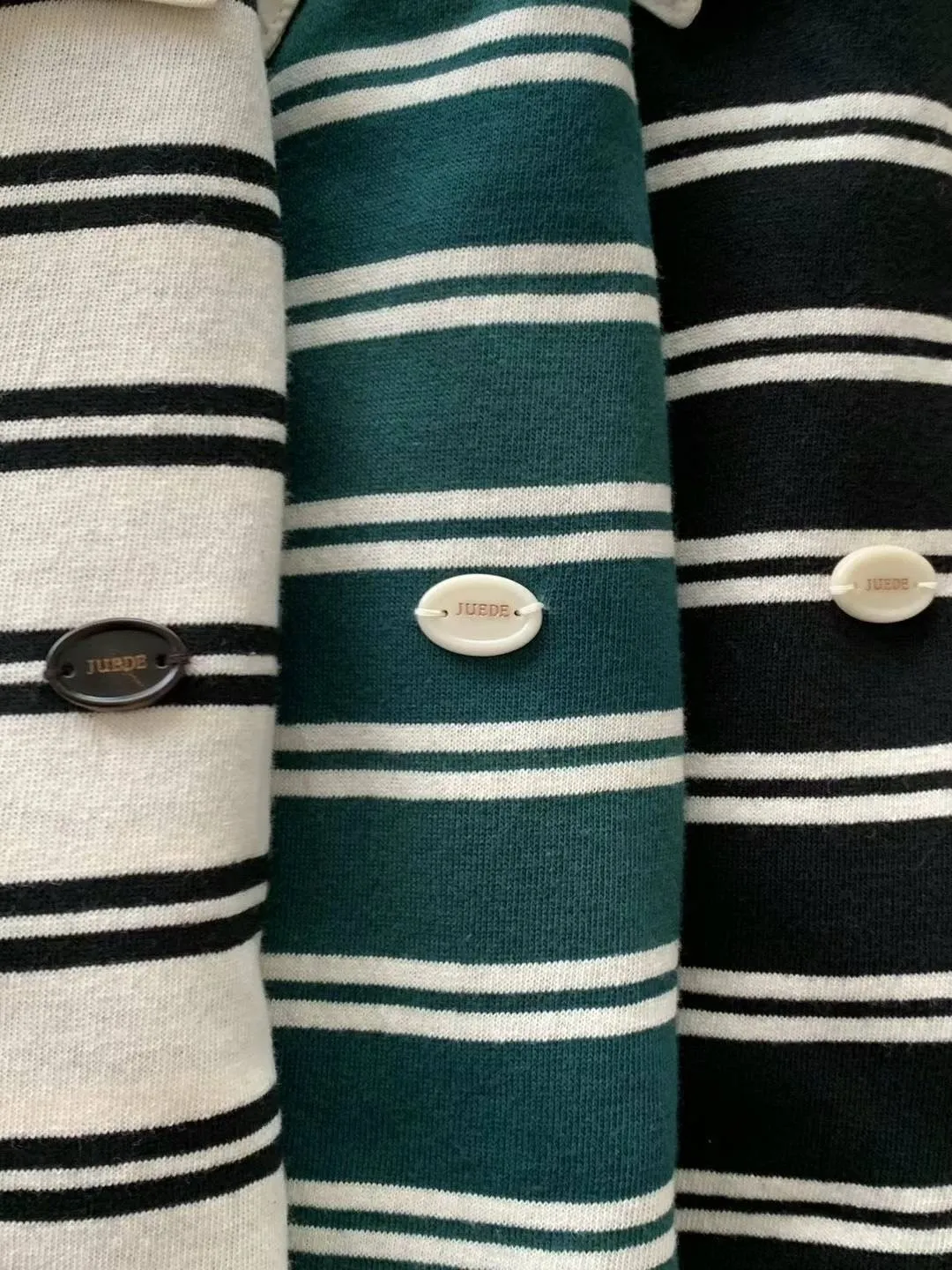 棉,雙線橫條紋 跳色領 胸前品牌小標