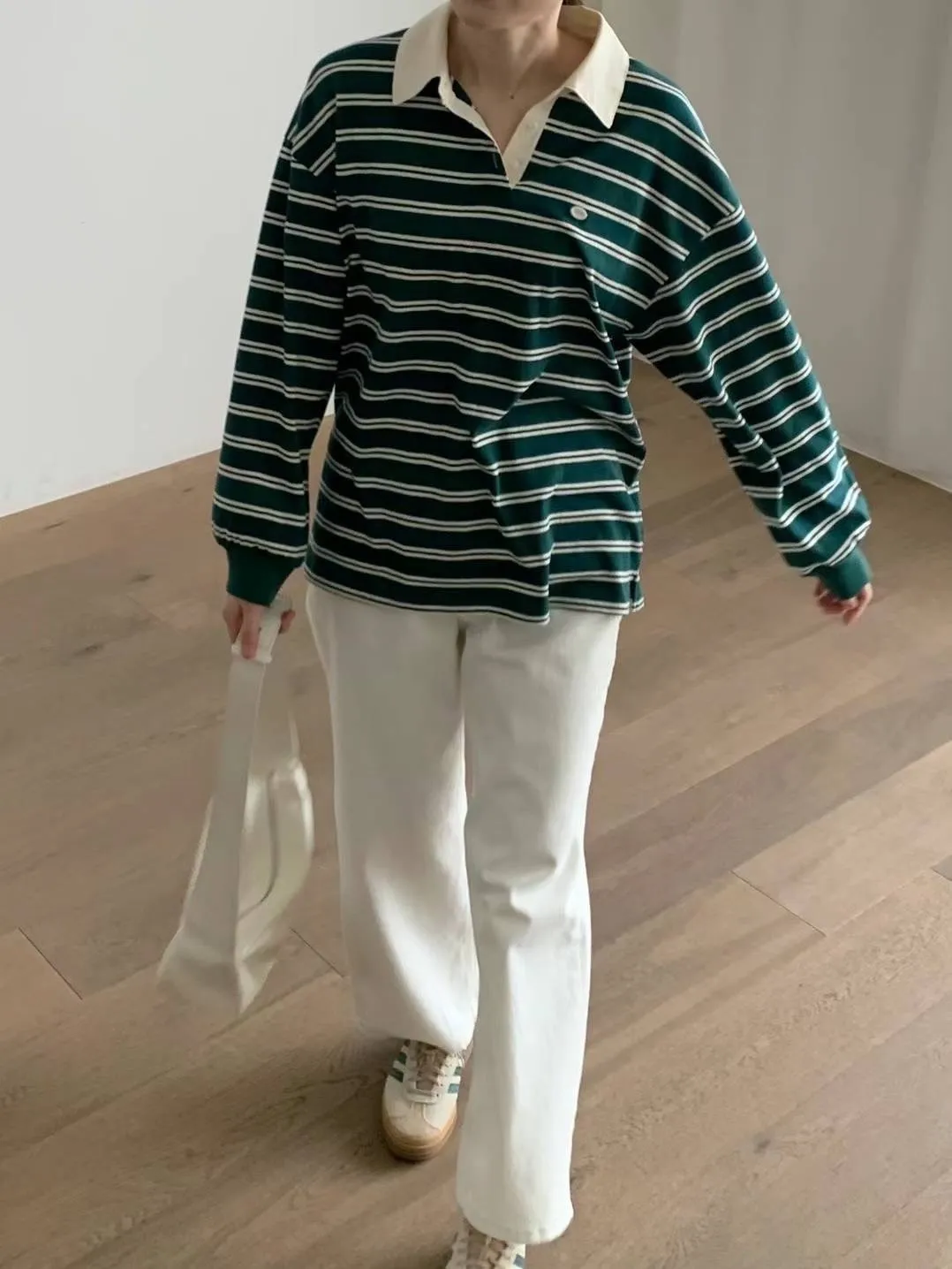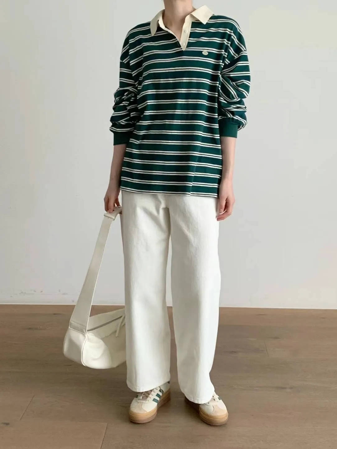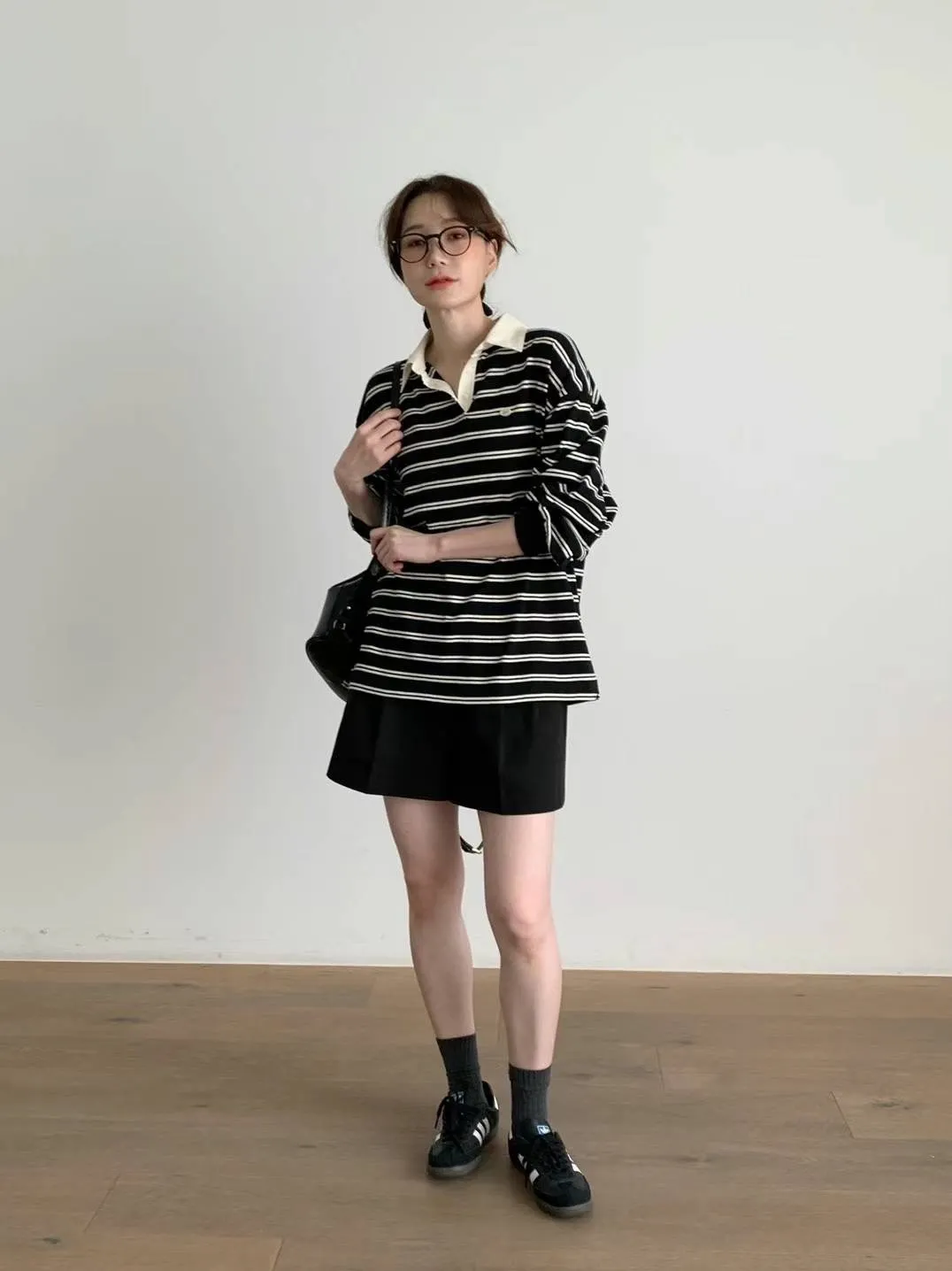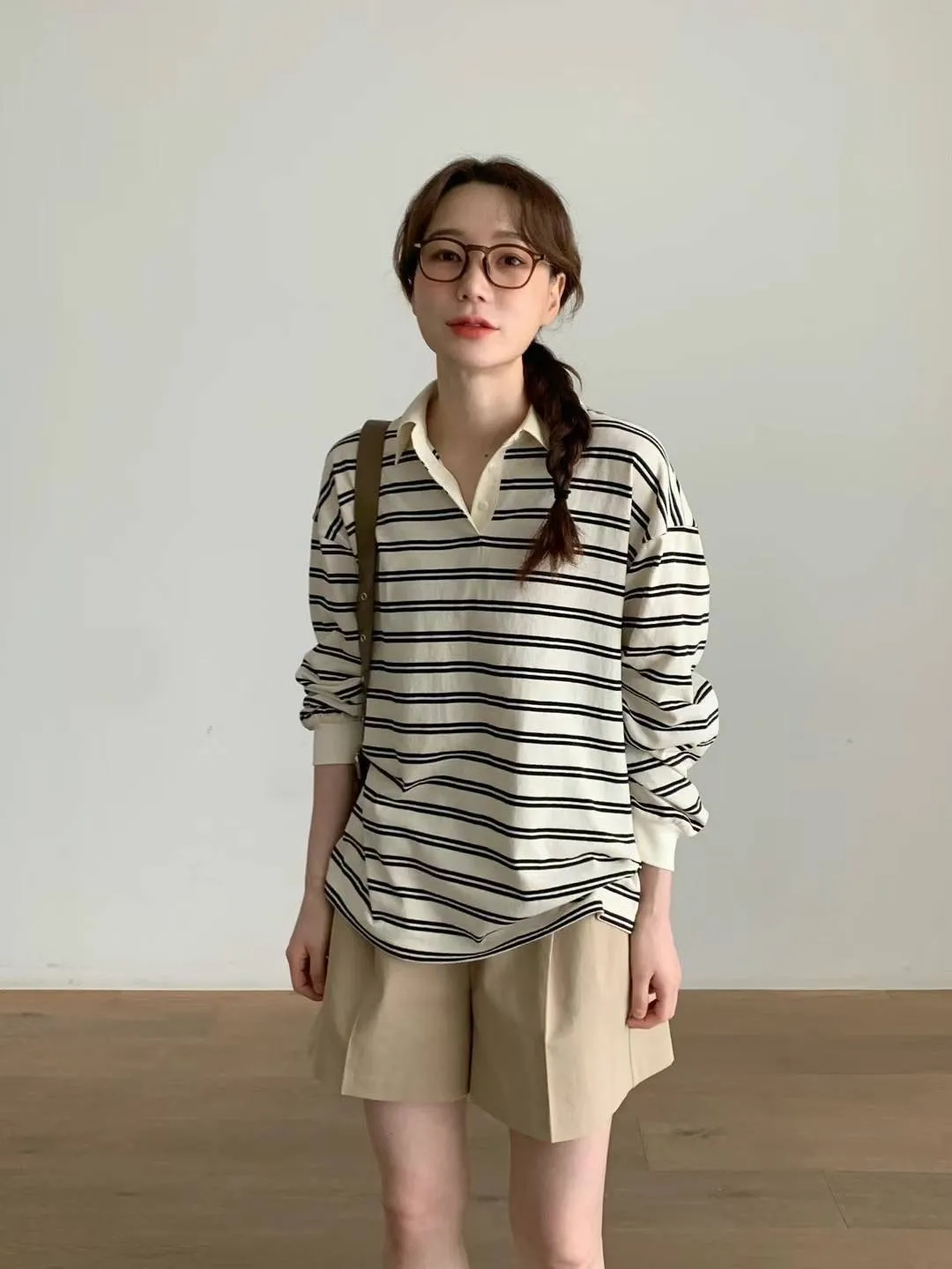 棉,雙線橫條紋 跳色領 胸前品牌小標