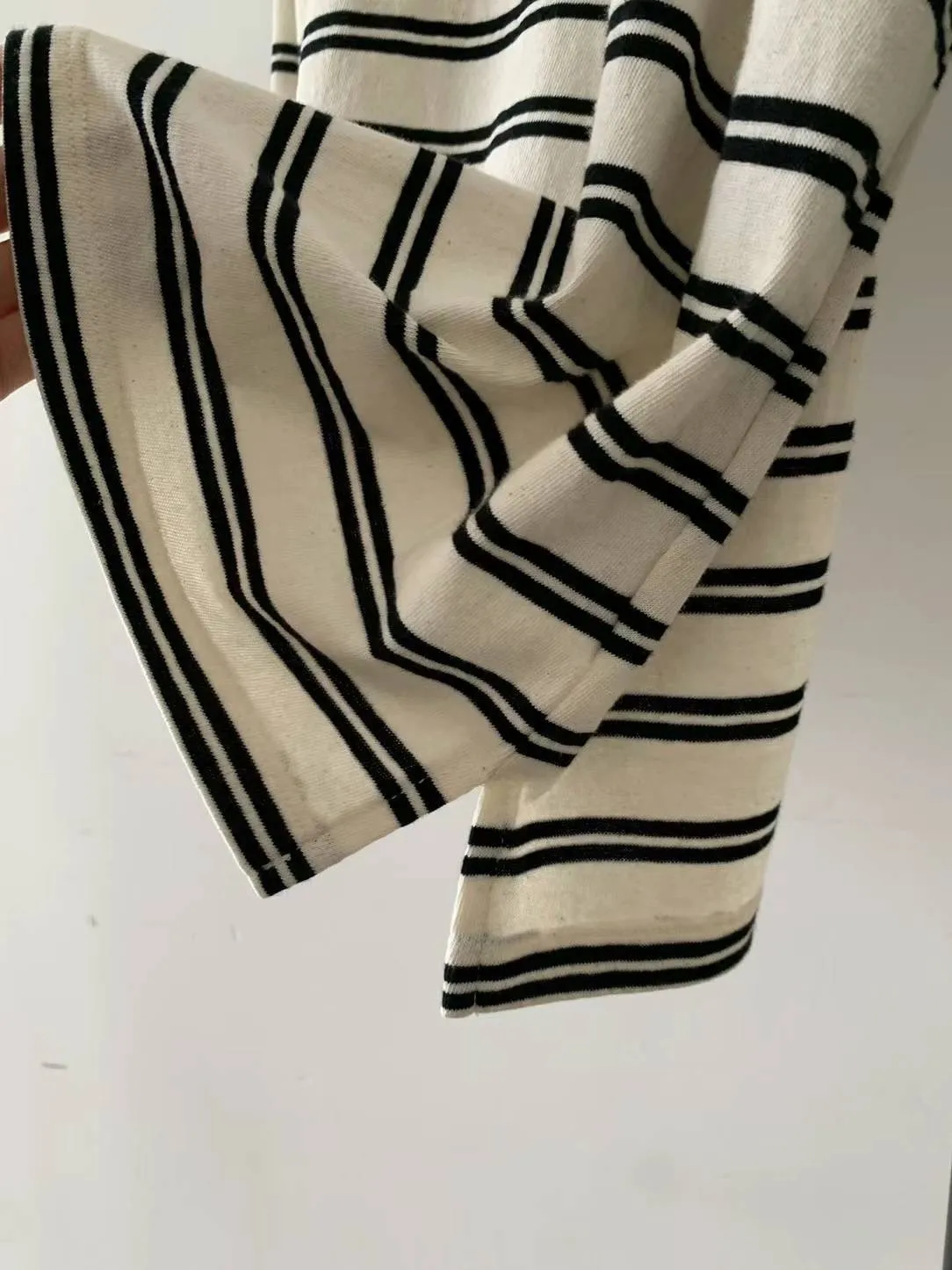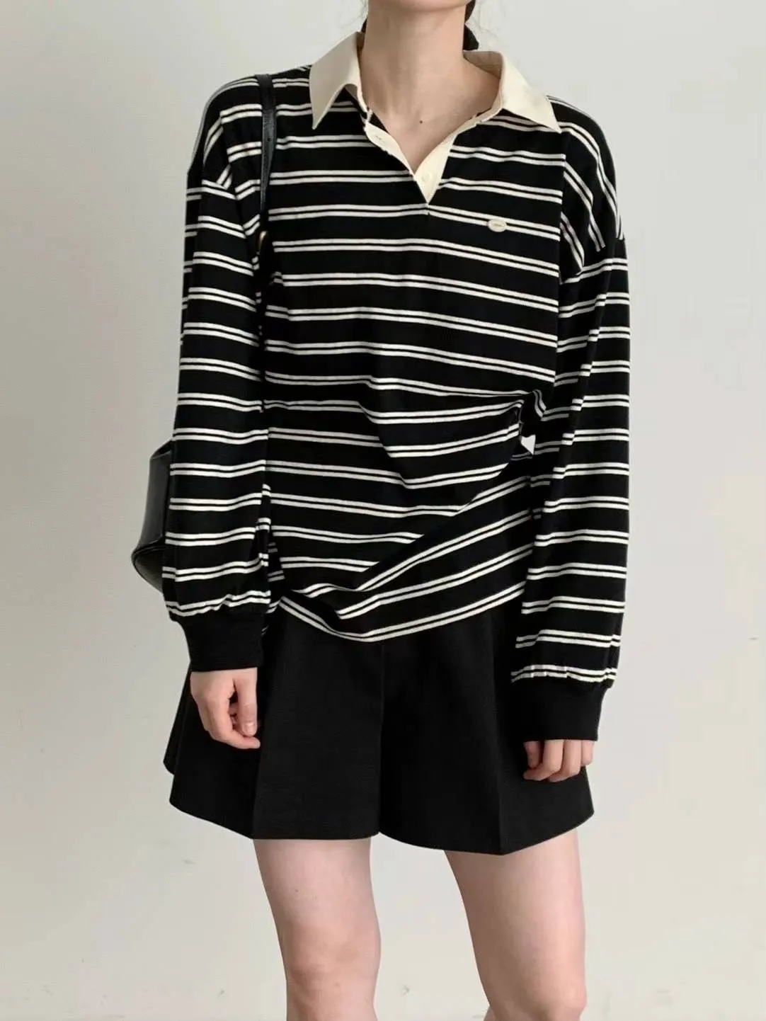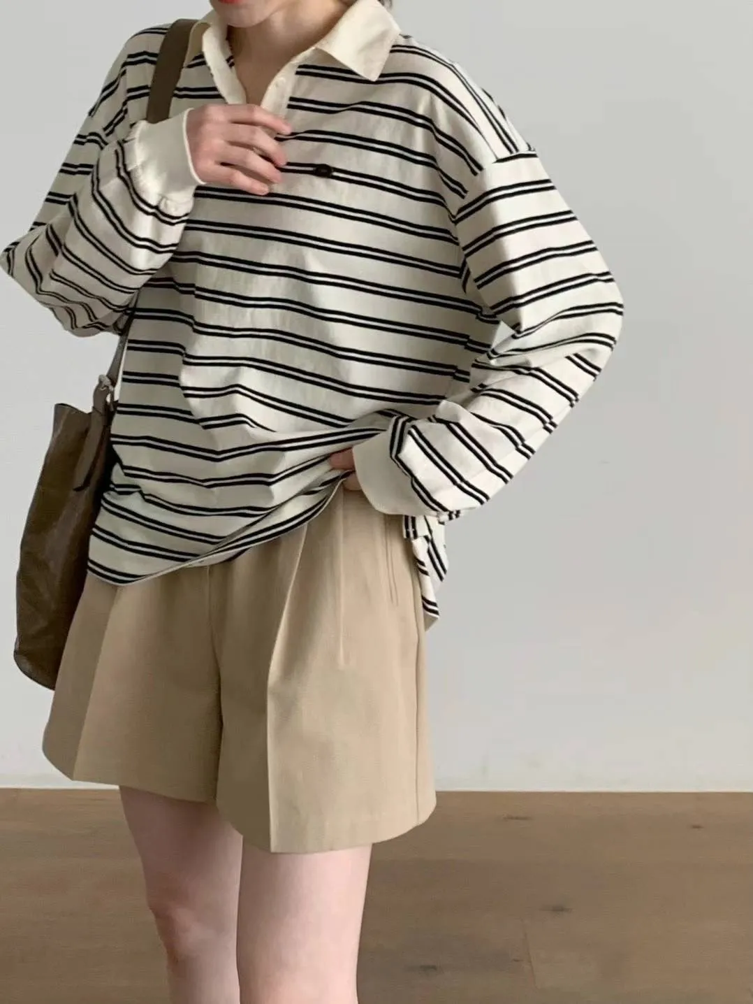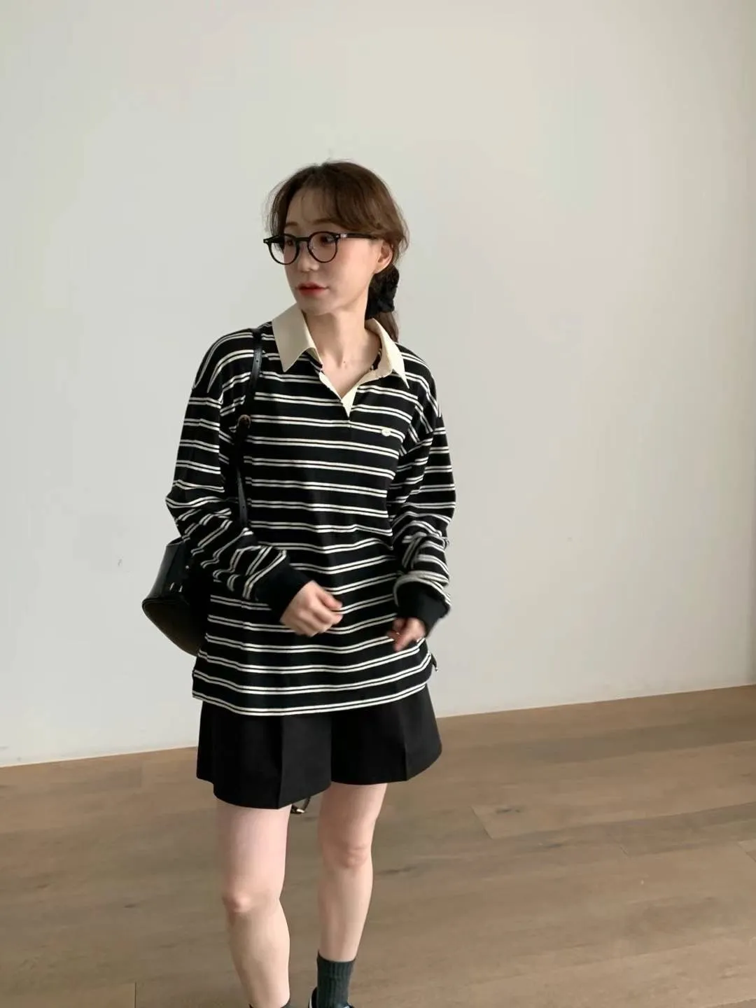 棉,雙線橫條紋 跳色領 胸前品牌小標