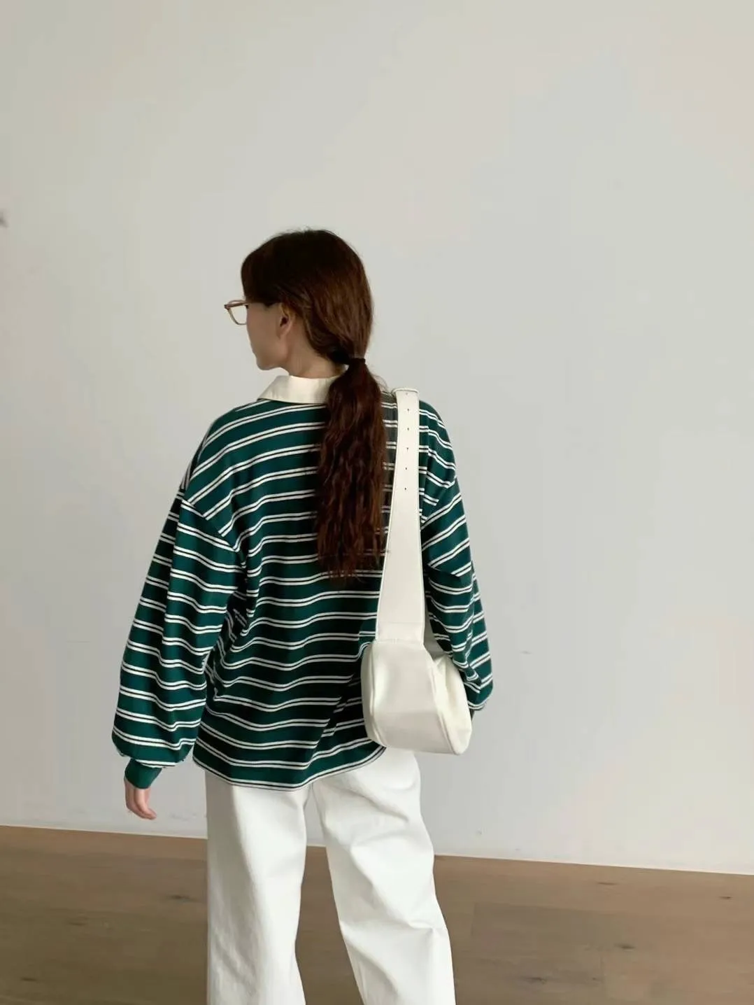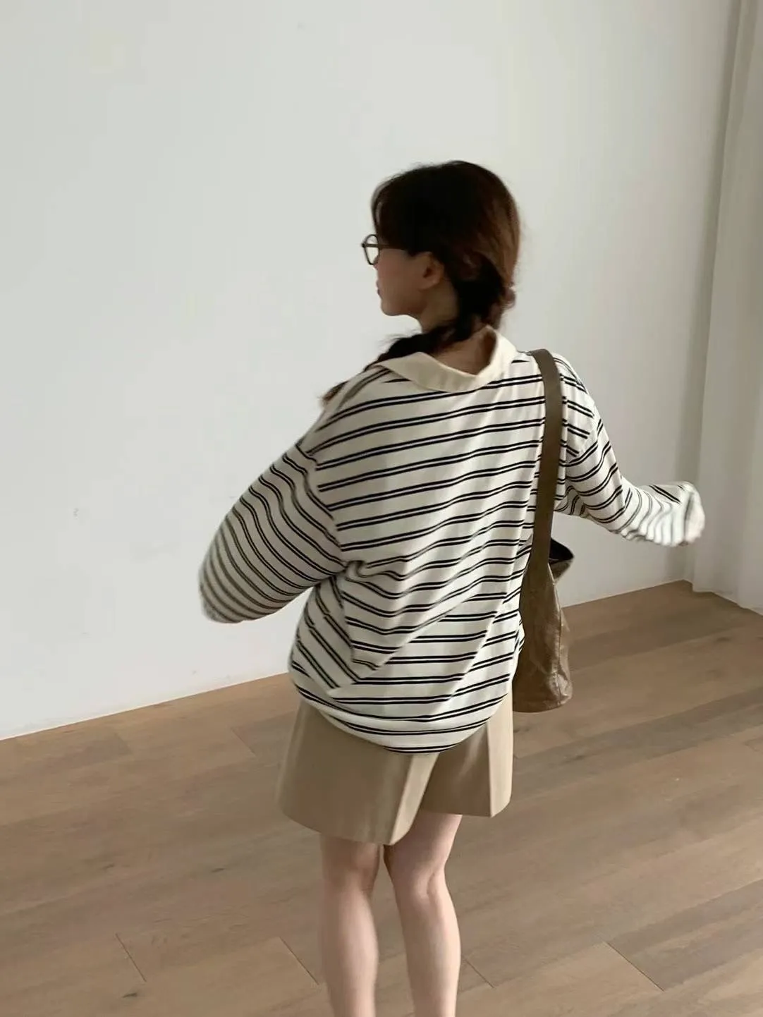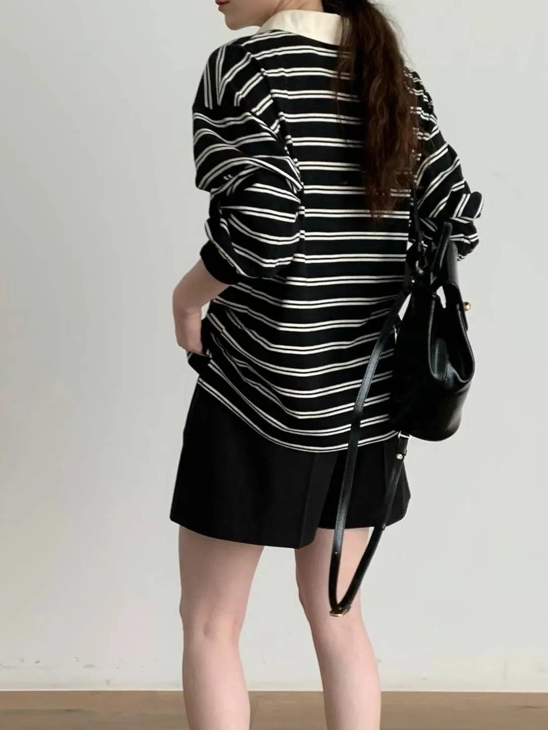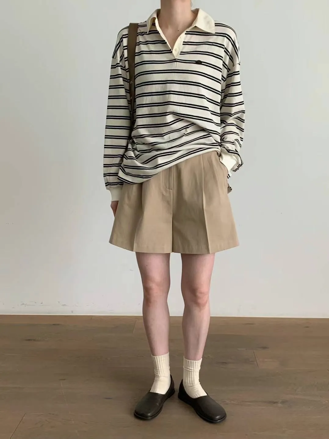 棉,雙線橫條紋 跳色領 胸前品牌小標