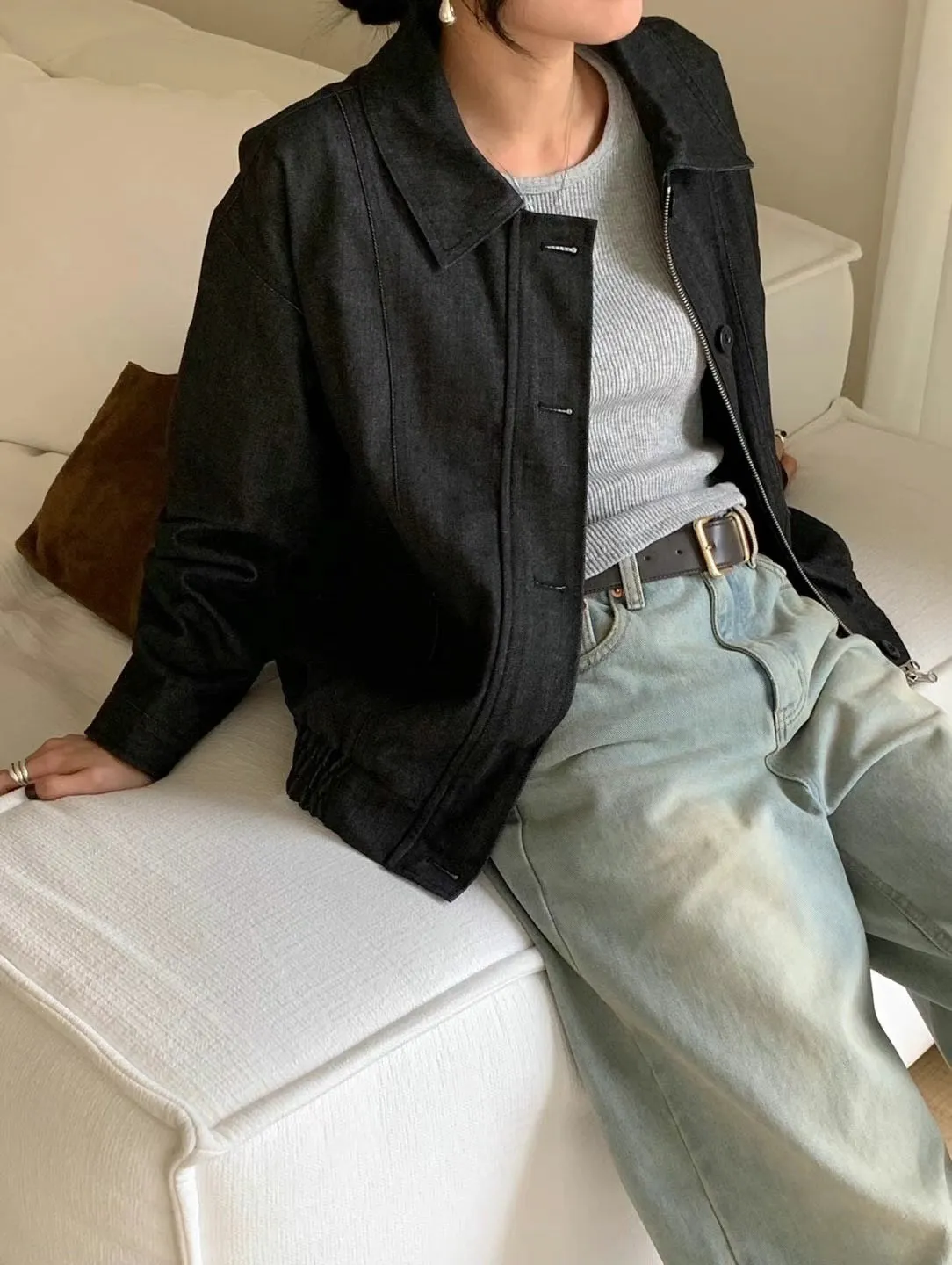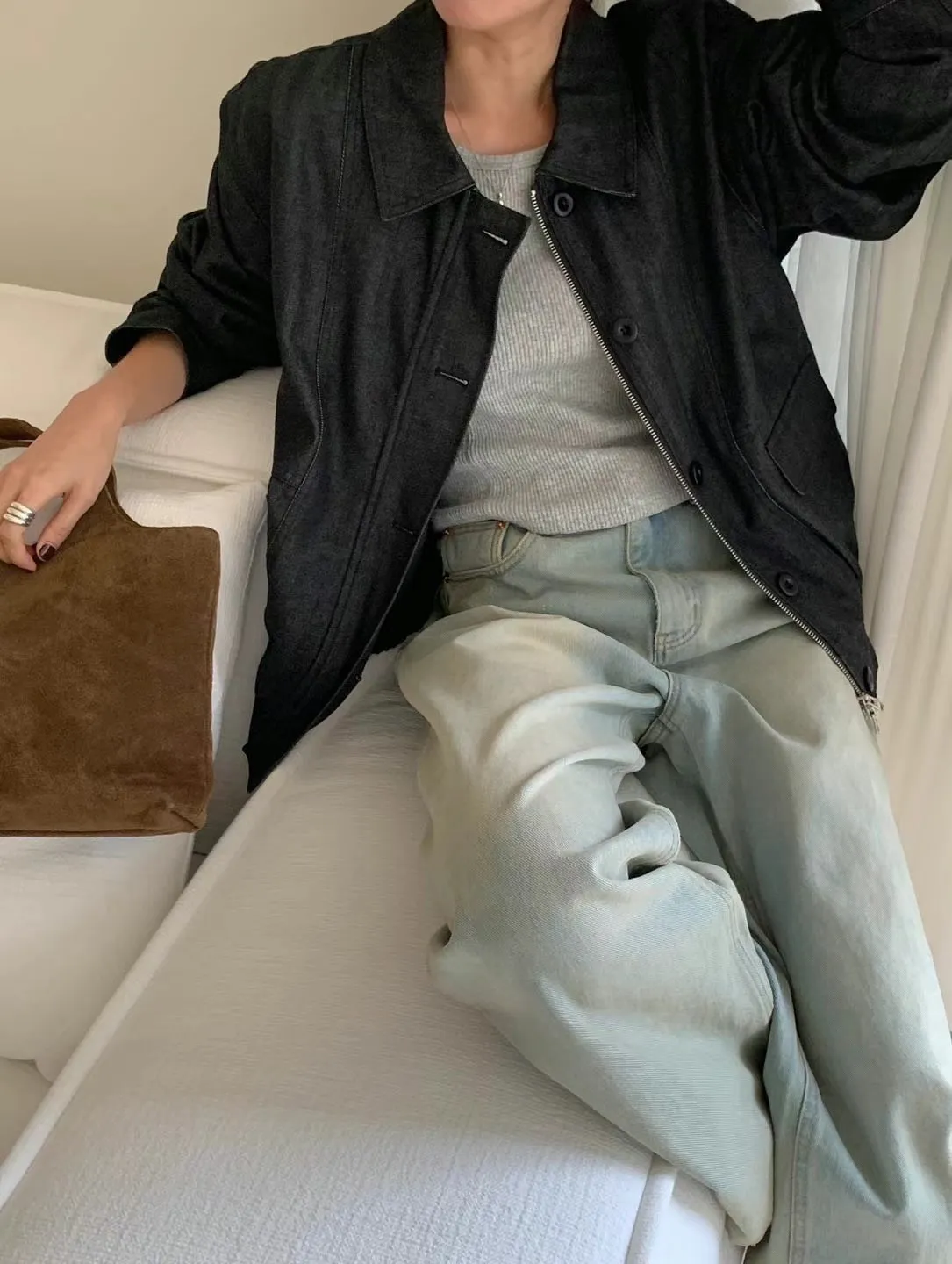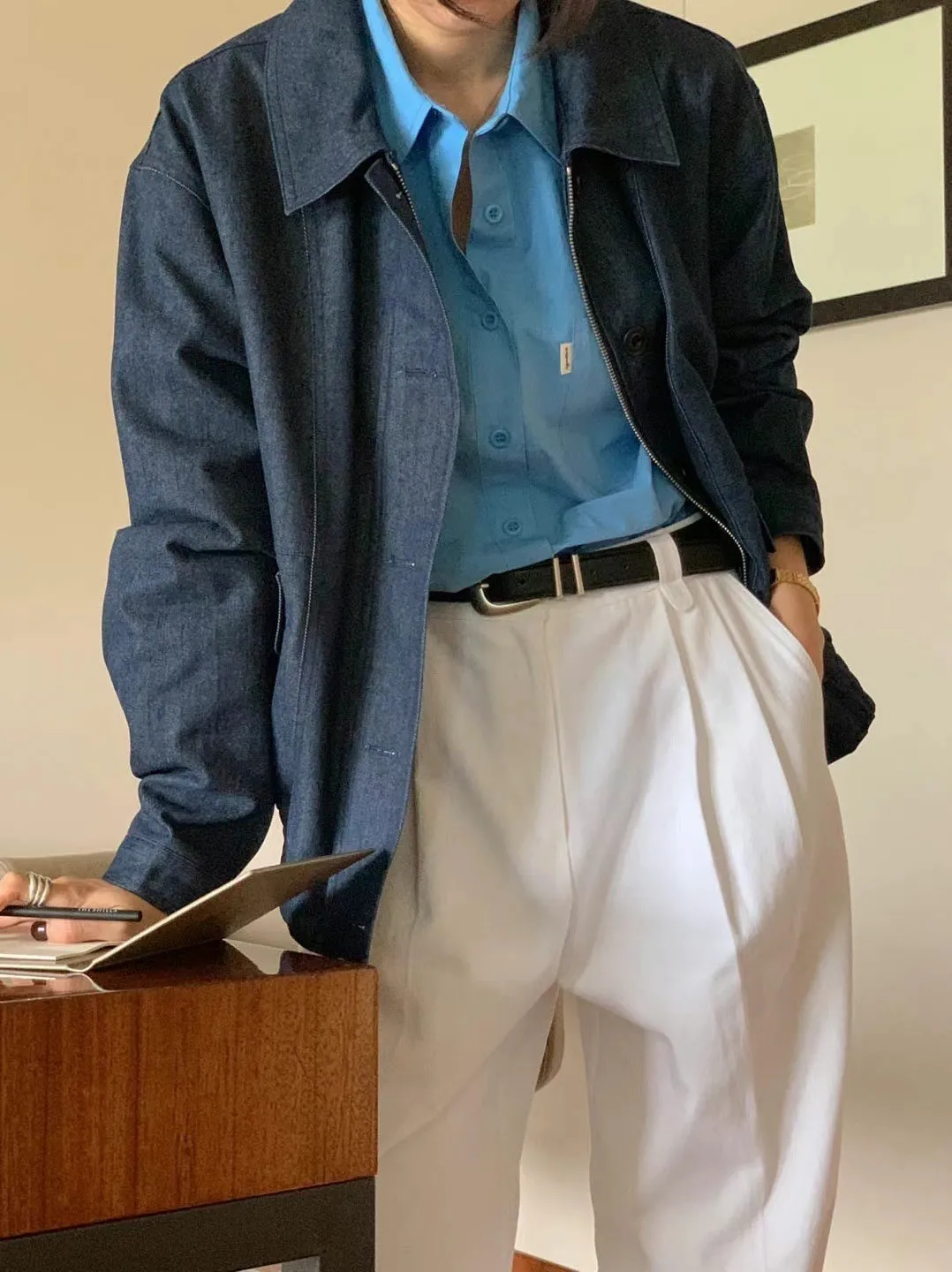 牛仔棉 高級質感 雙頭拉鍊釦子穿脫 有內理 下擺鬆緊 穿到L號