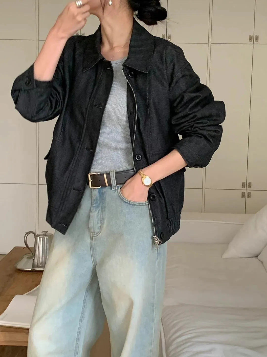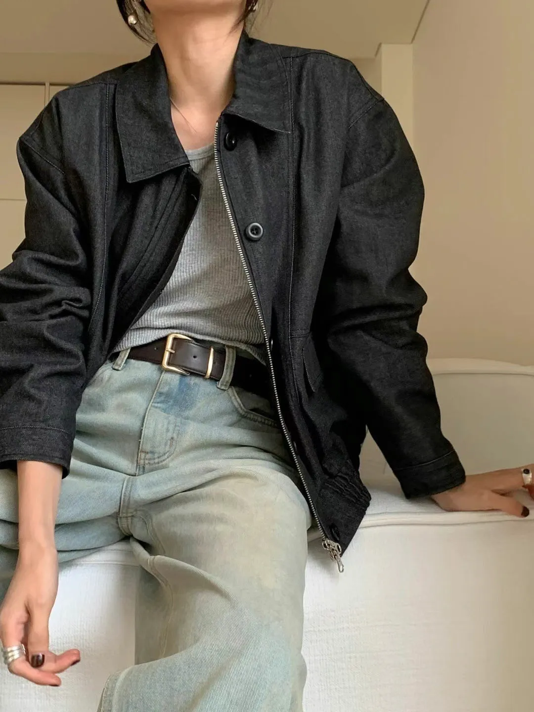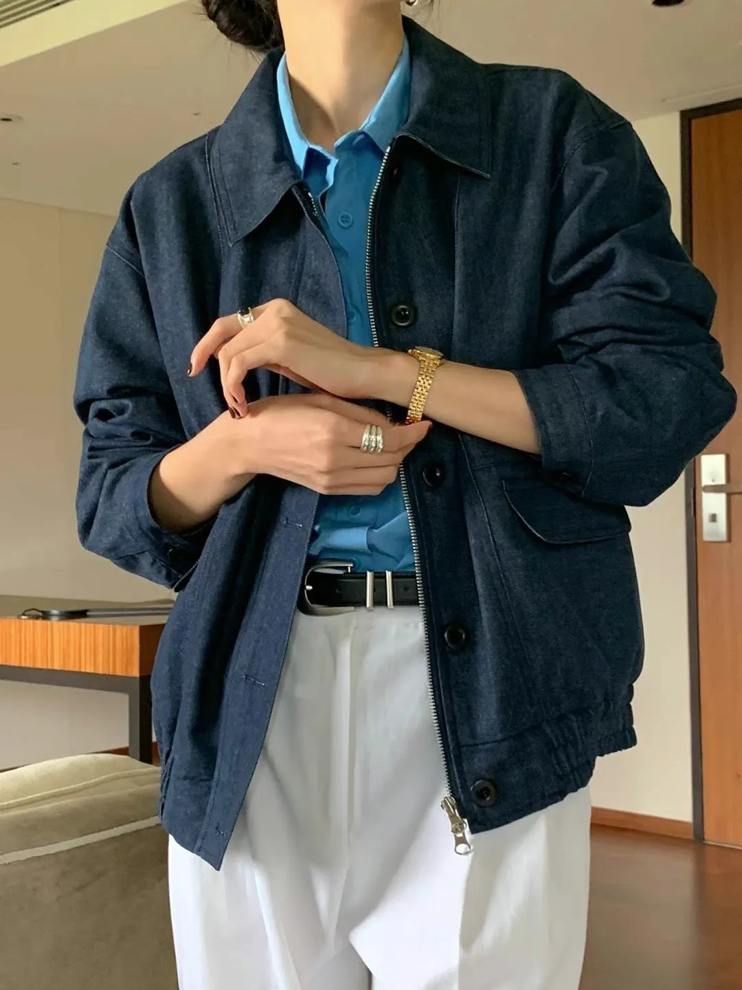 牛仔棉 高級質感 雙頭拉鍊釦子穿脫 有內理 下擺鬆緊 穿到L號
