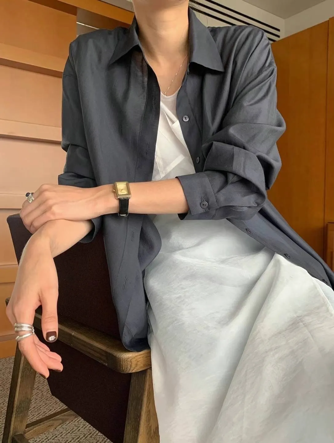 天絲+聚酯 推薦款 細緻光澤感 薄款舒適 版型優秀空間佳 L號友善