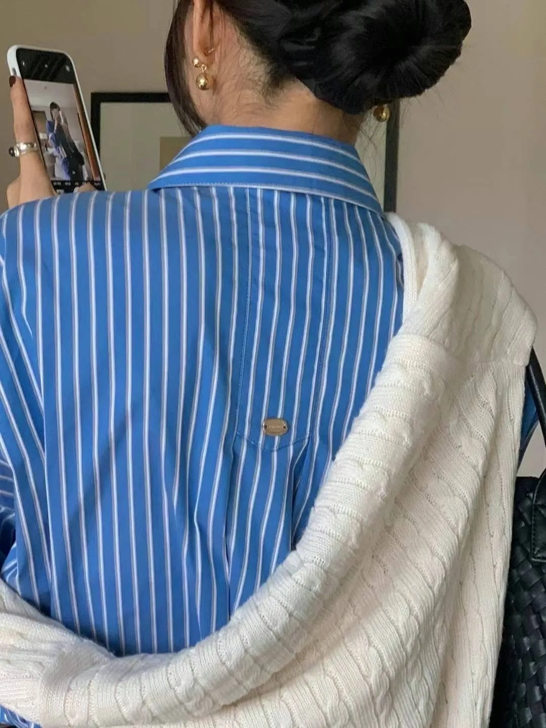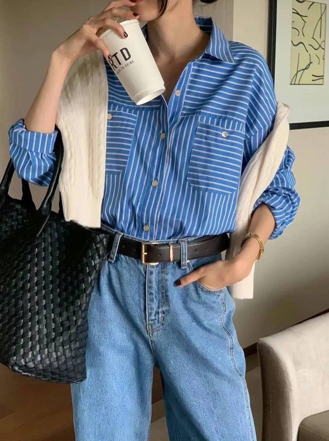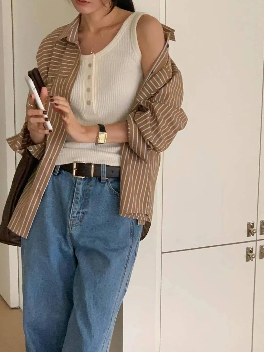 棉 透氣舒適 立體視覺交錯條紋設計 同色系貝殼釦 L號友善