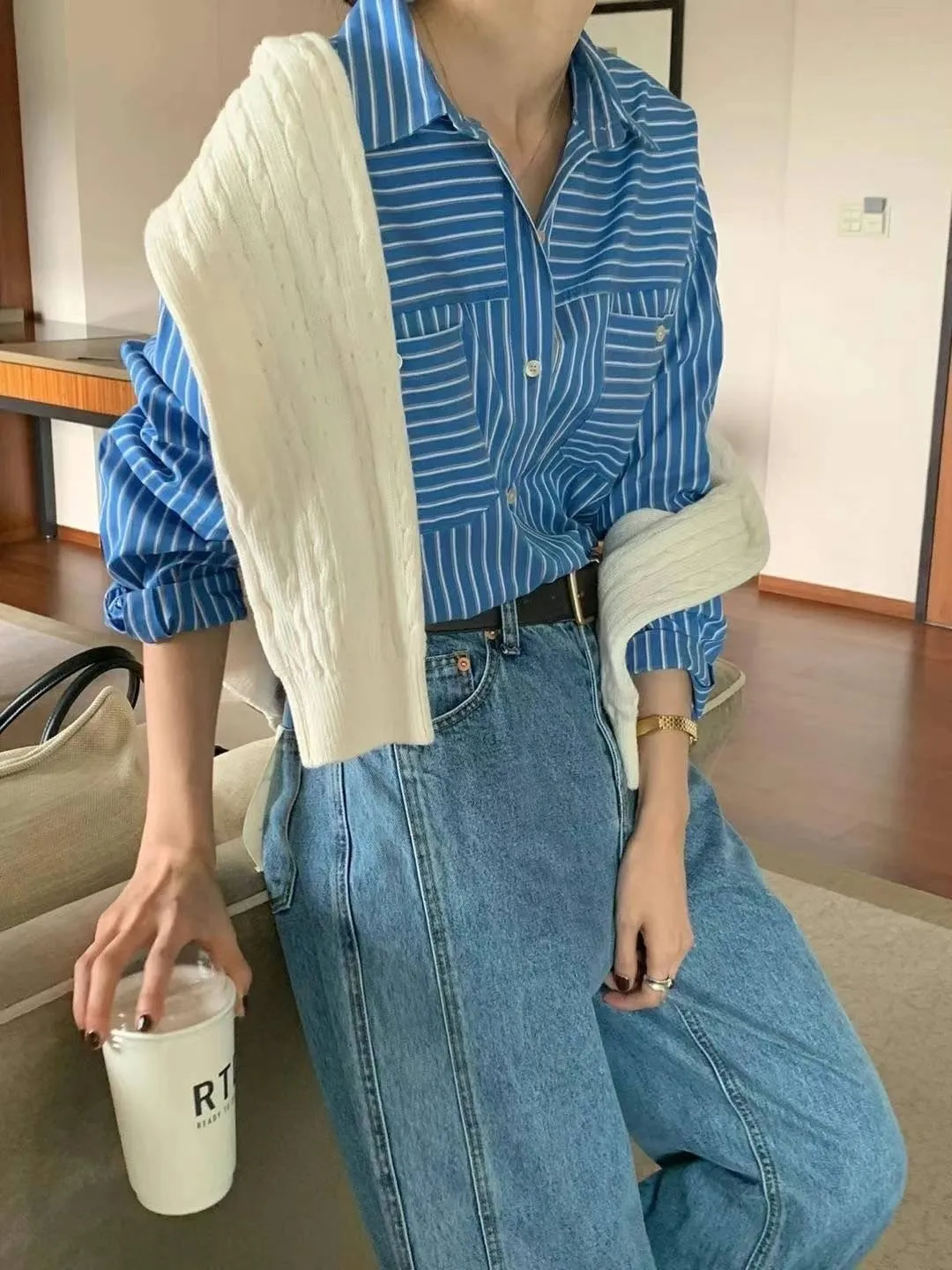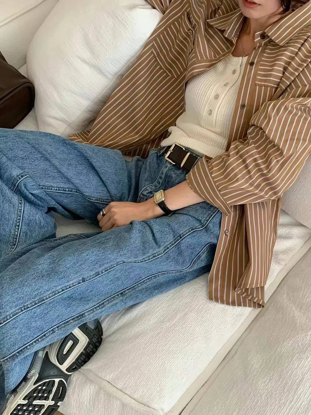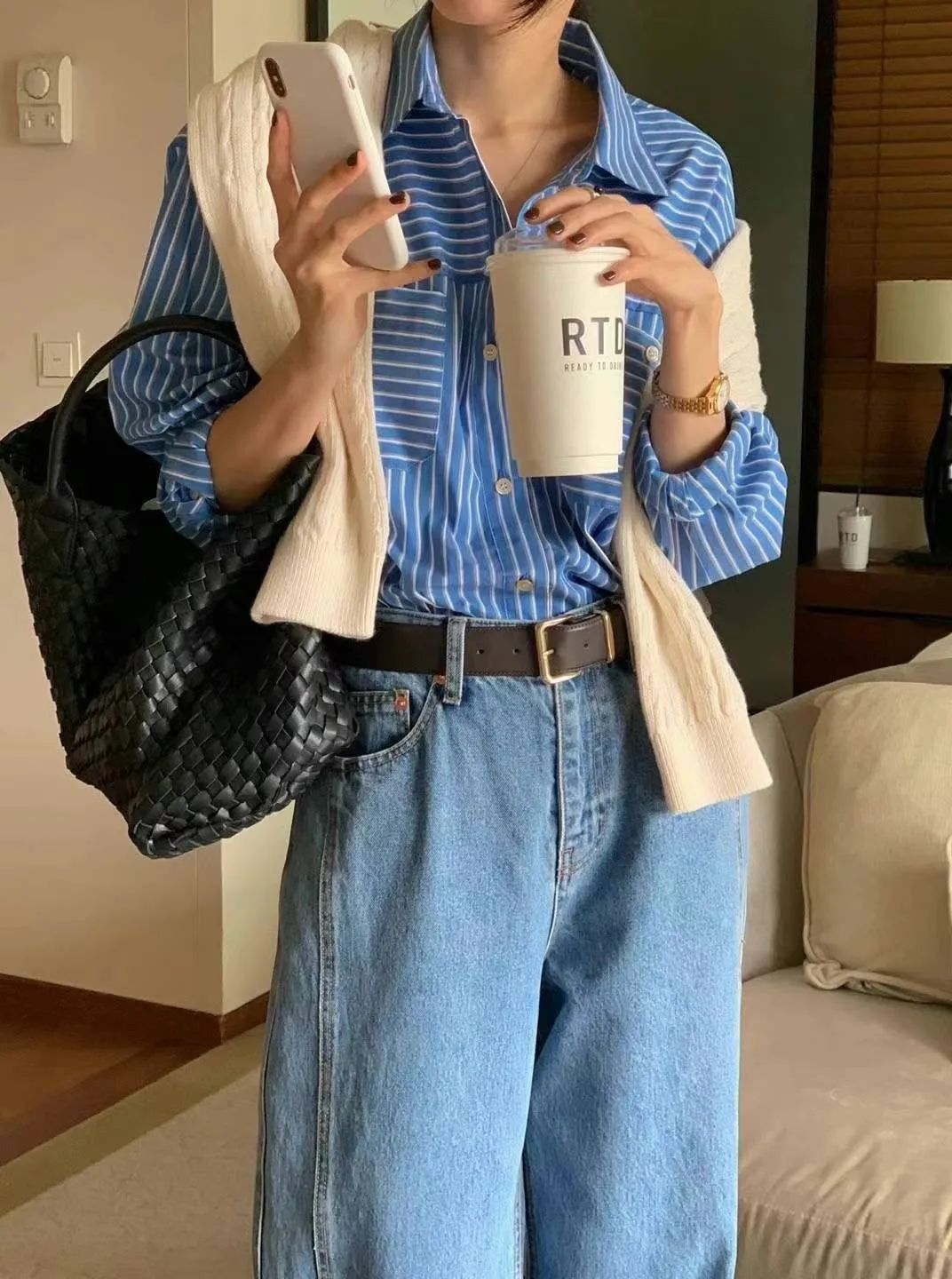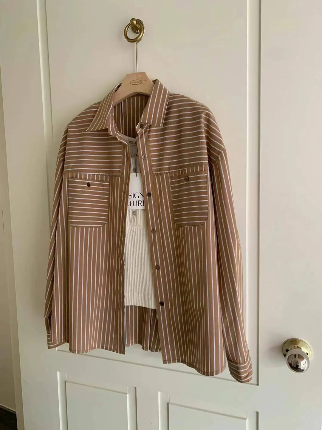 棉 透氣舒適 立體視覺交錯條紋設計 同色系貝殼釦 L號友善