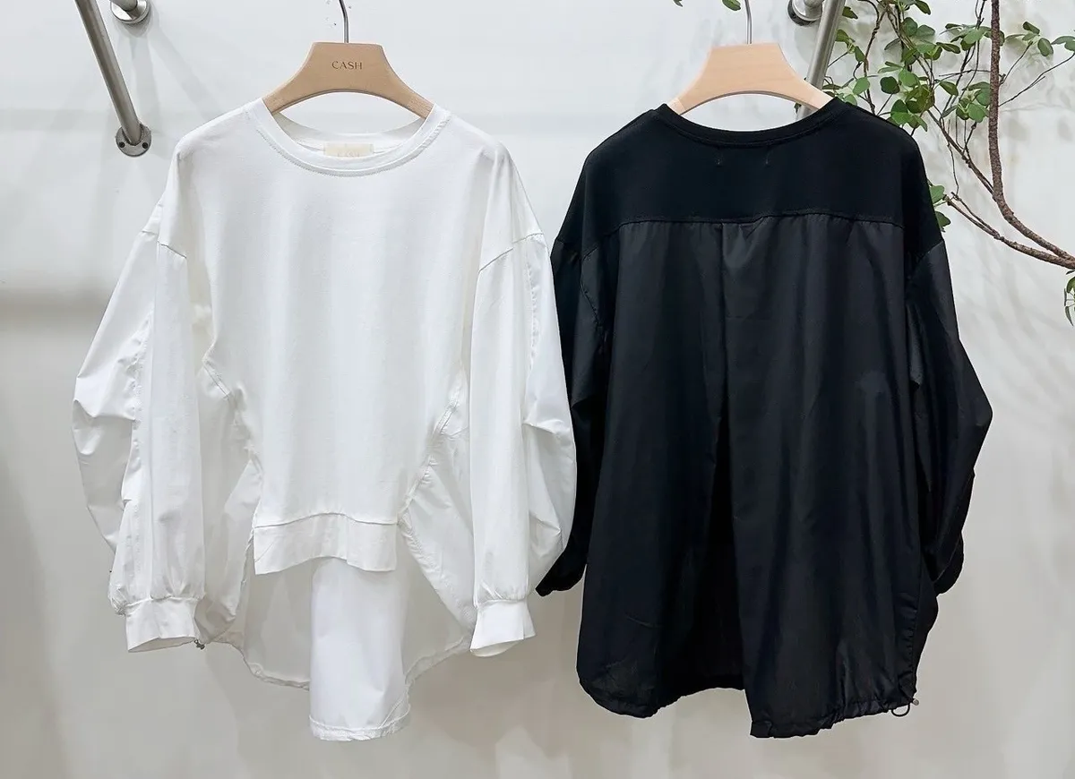 棉+雪紡,下擺抽繩縮身 前短後長 拼接異材質