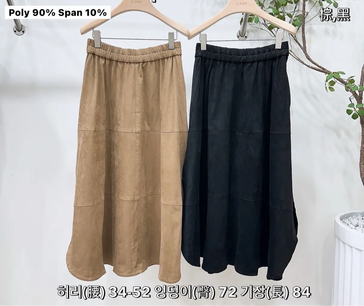 麂皮 側開叉 美麗圓弧下擺 全腰鬆緊 有口袋 XL友善