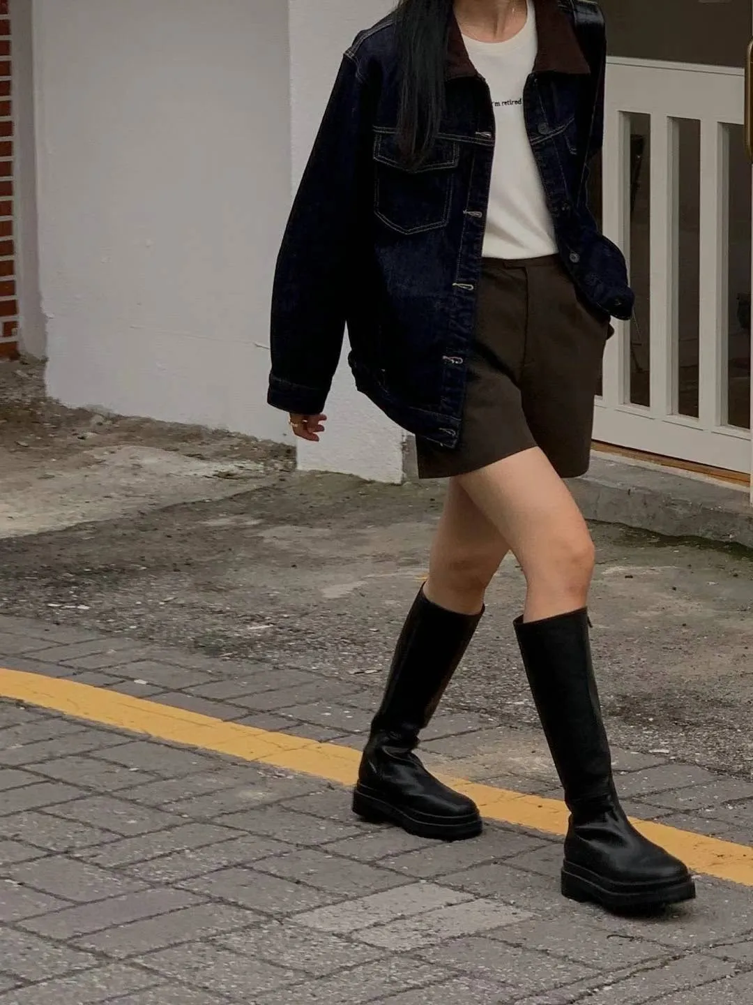 棉 柔軟牛仔 釦子穿脫 跳色翻領