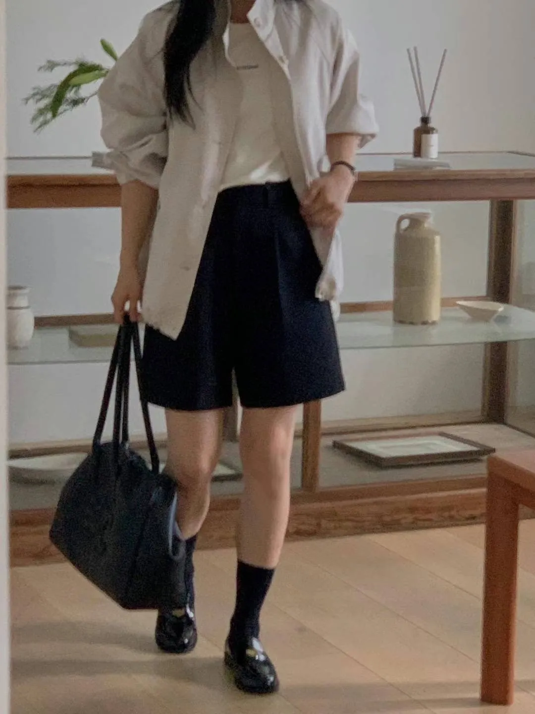 BS735側腰雙釦黑色短褲 S M L 官網價$1020 線上價$990