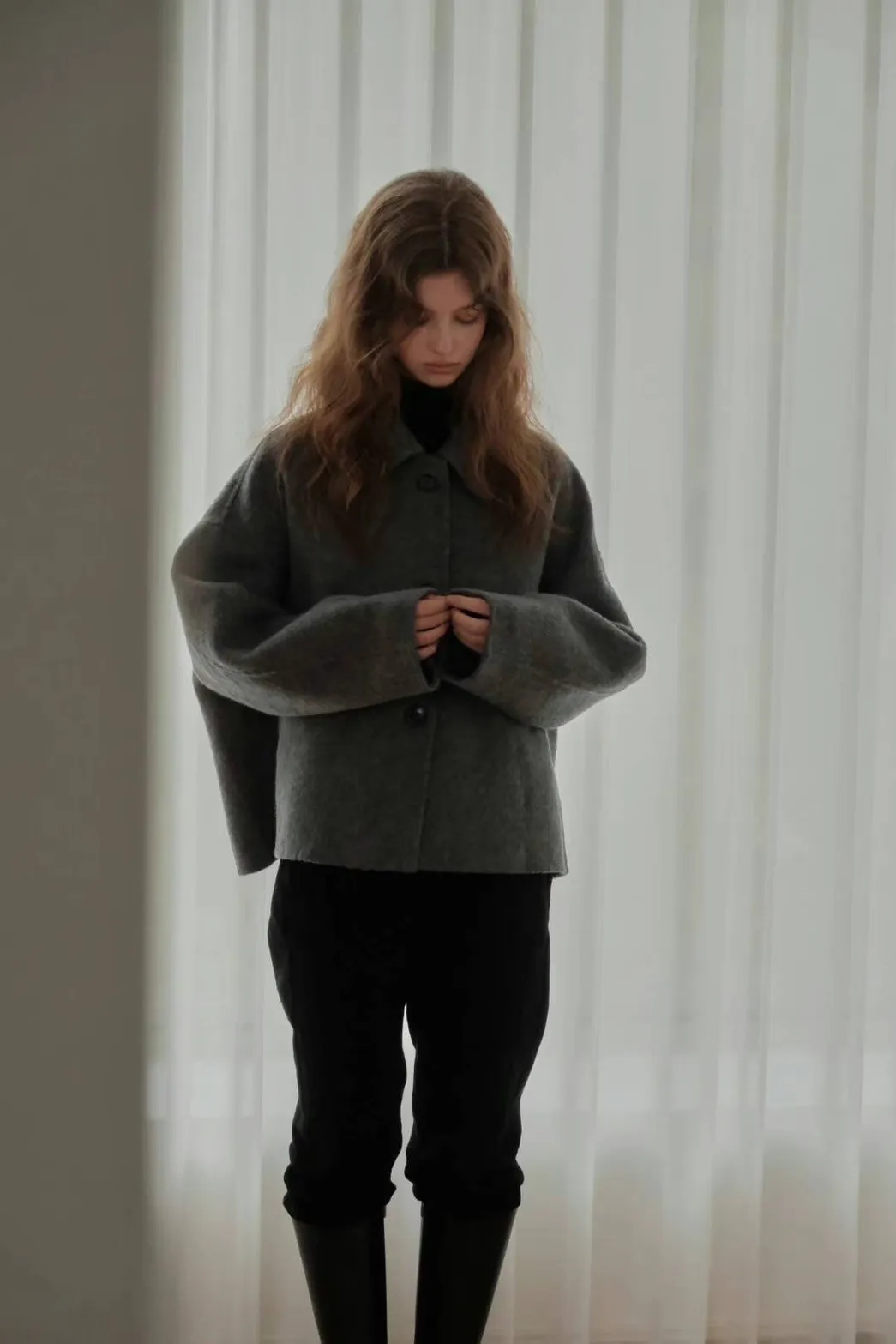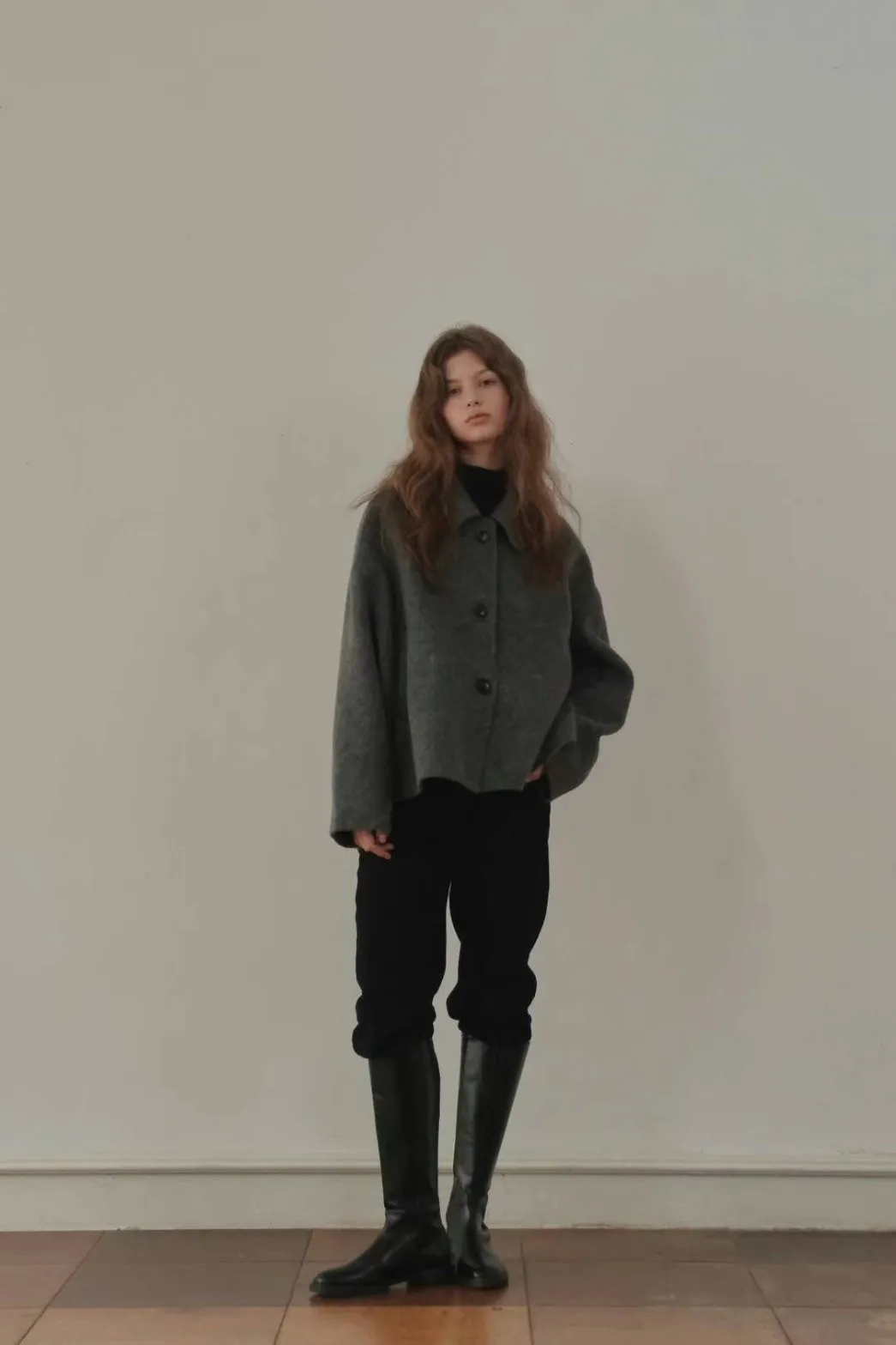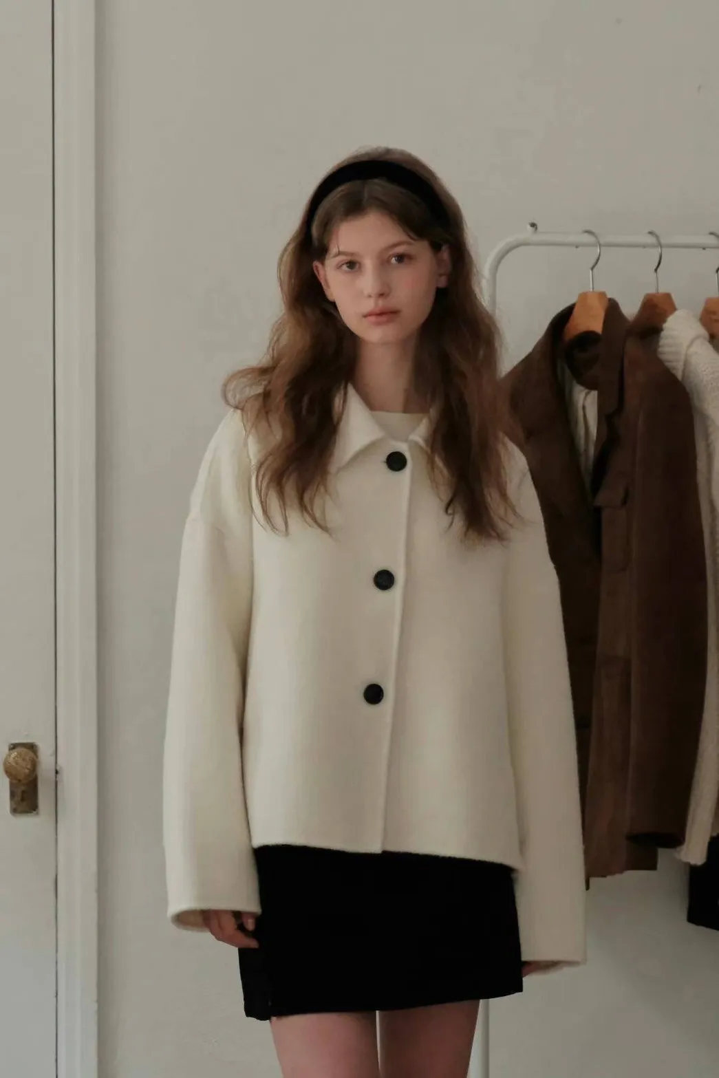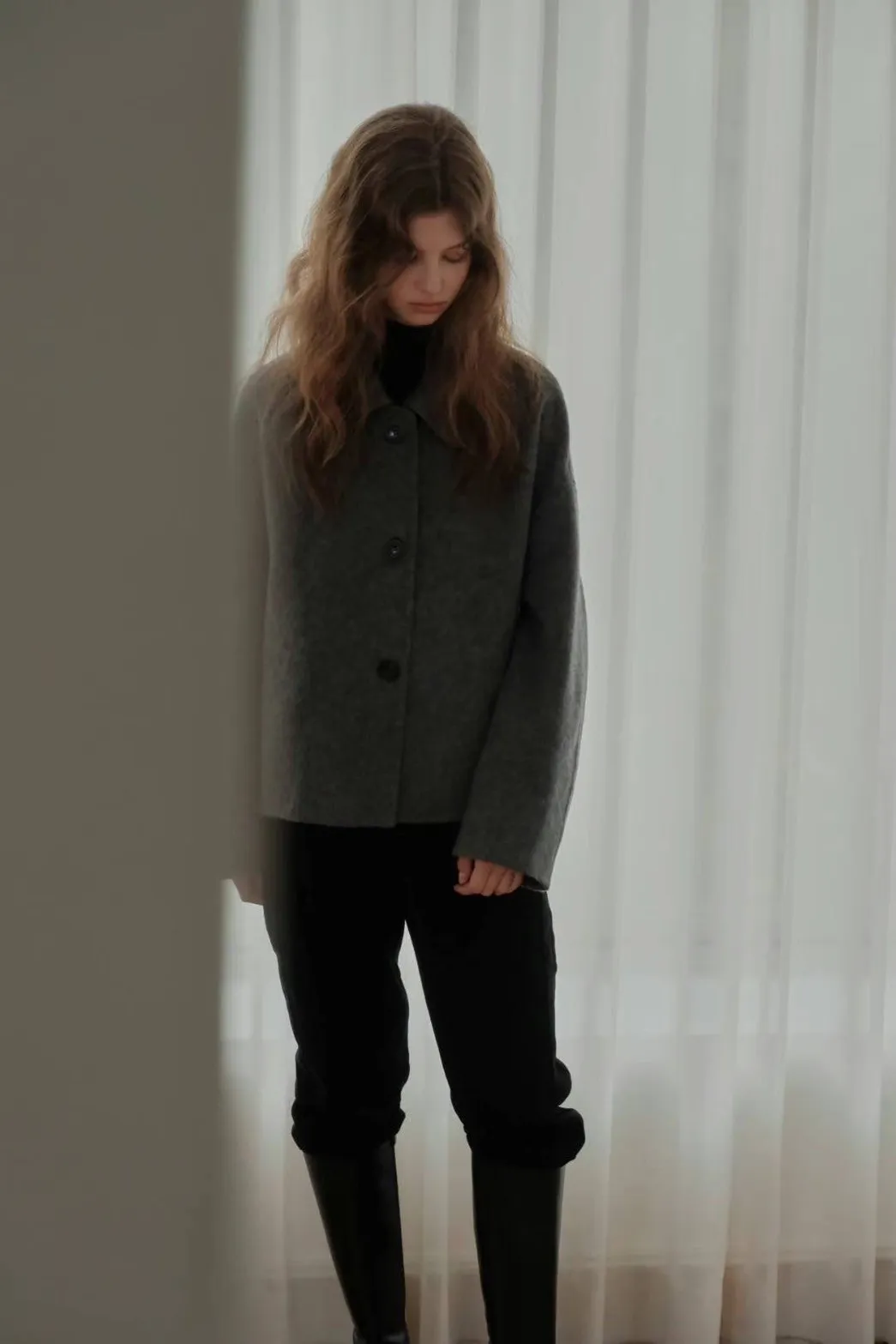 BS741推薦款經典三釦羊毛短版外套 米 灰 官網價$2880 線上價$2850