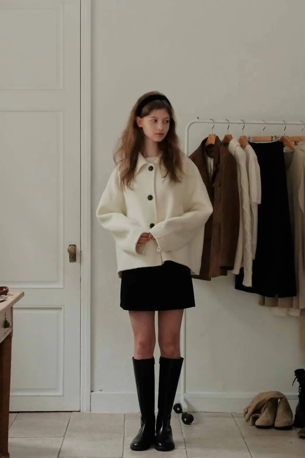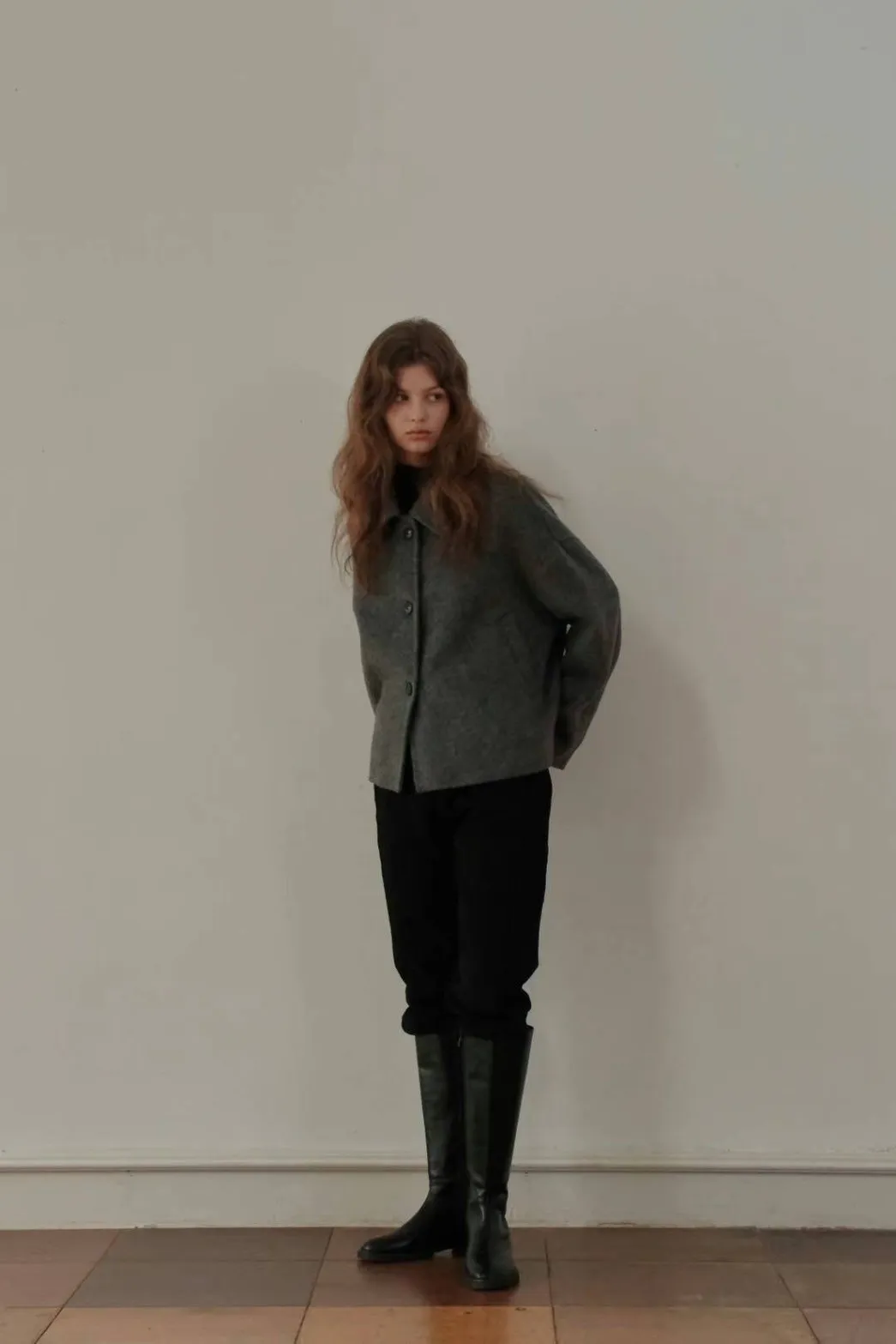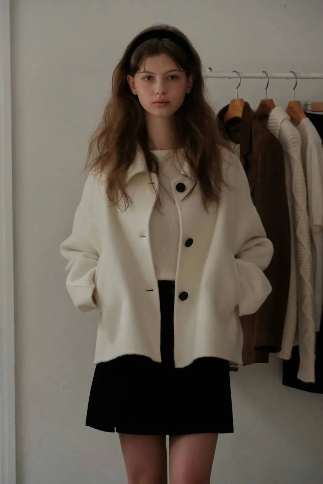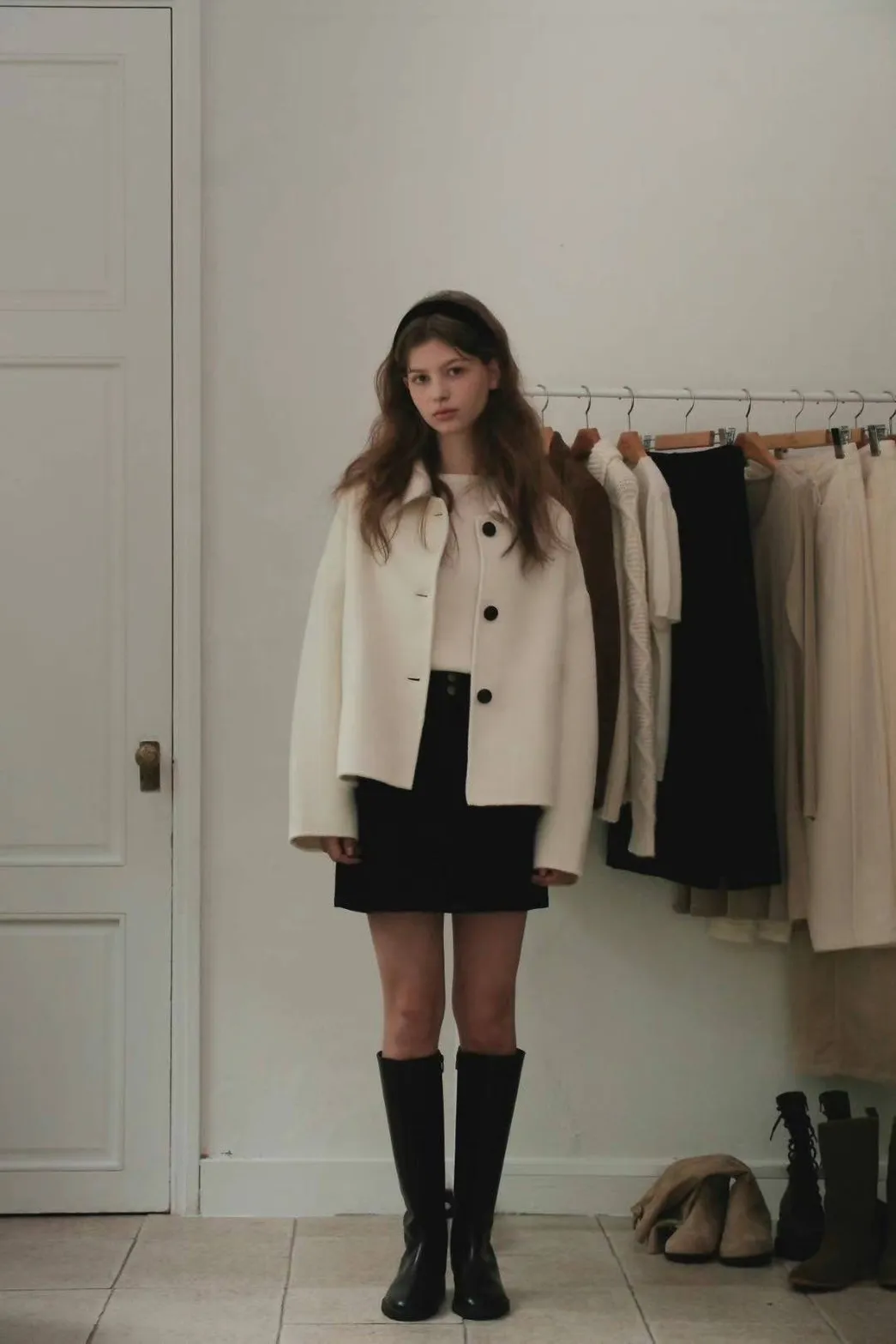 BS741推薦款經典三釦羊毛短版外套 米 灰 官網價$2880 線上價$2850
