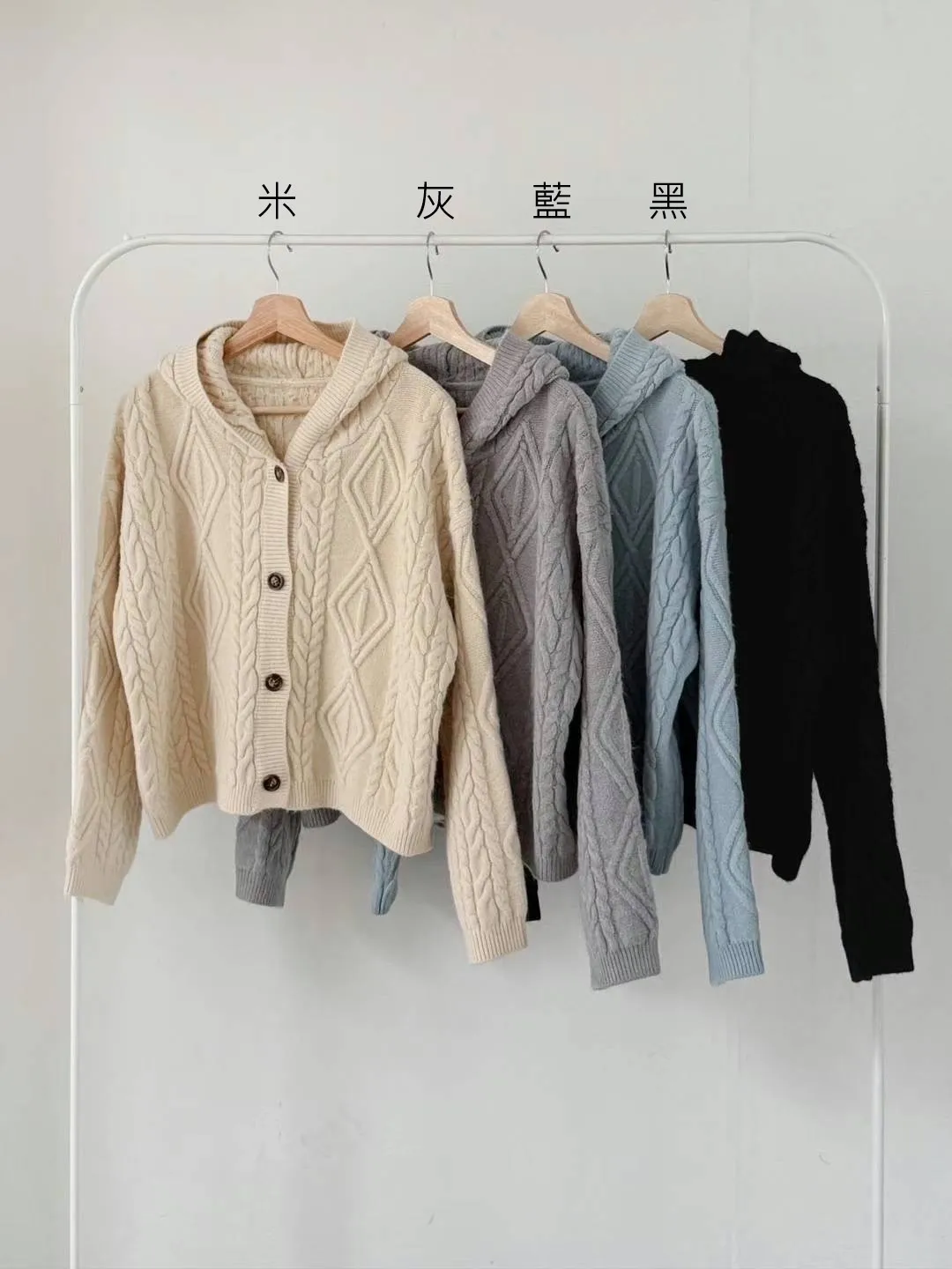 BS744麻花針織連帽外套 米 灰 藍 黑 官網價$1220 線上價$1190