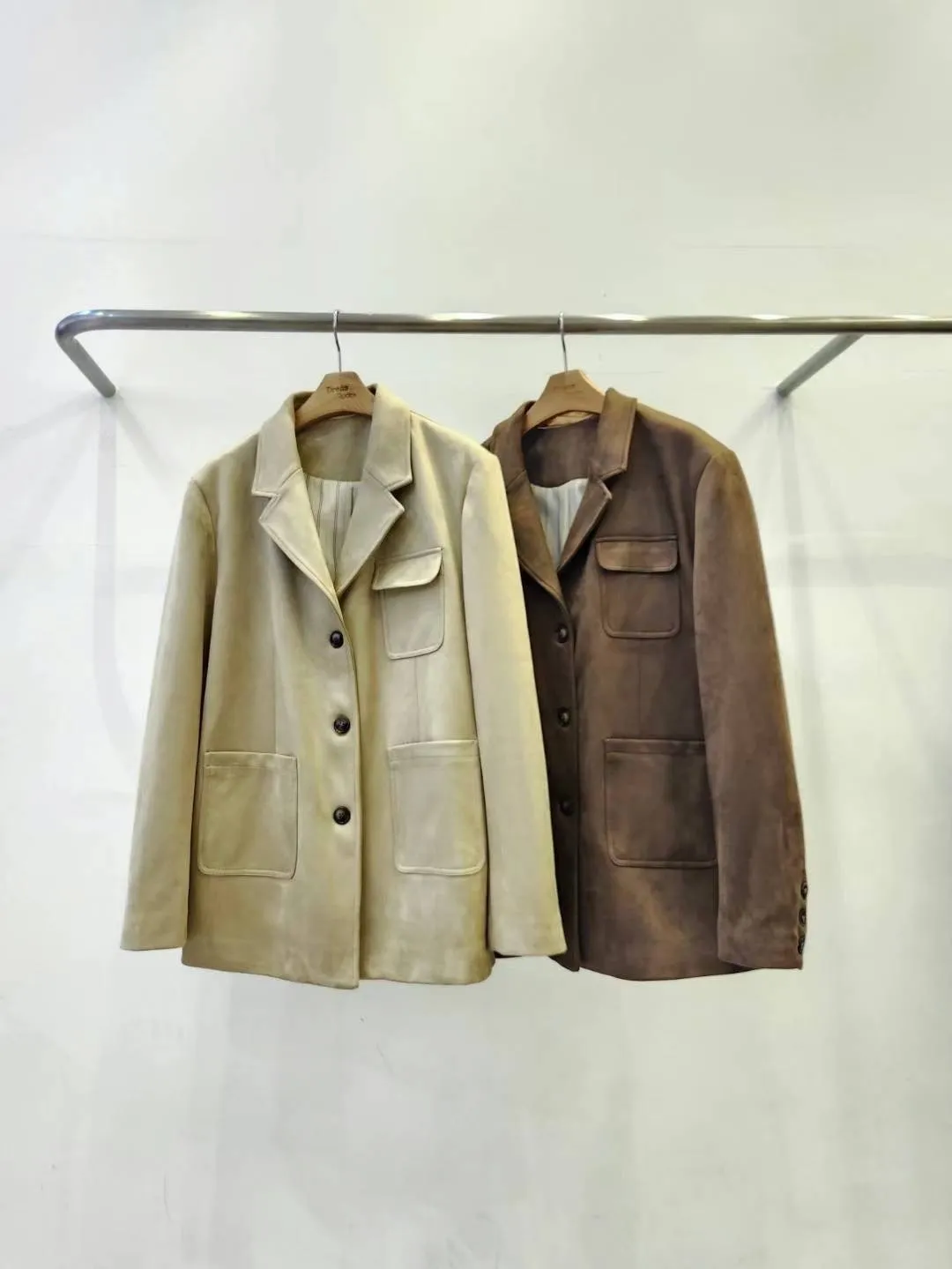 BS746西裝領三口袋麂皮外套 米 咖 官網價$2350 線上價$2320