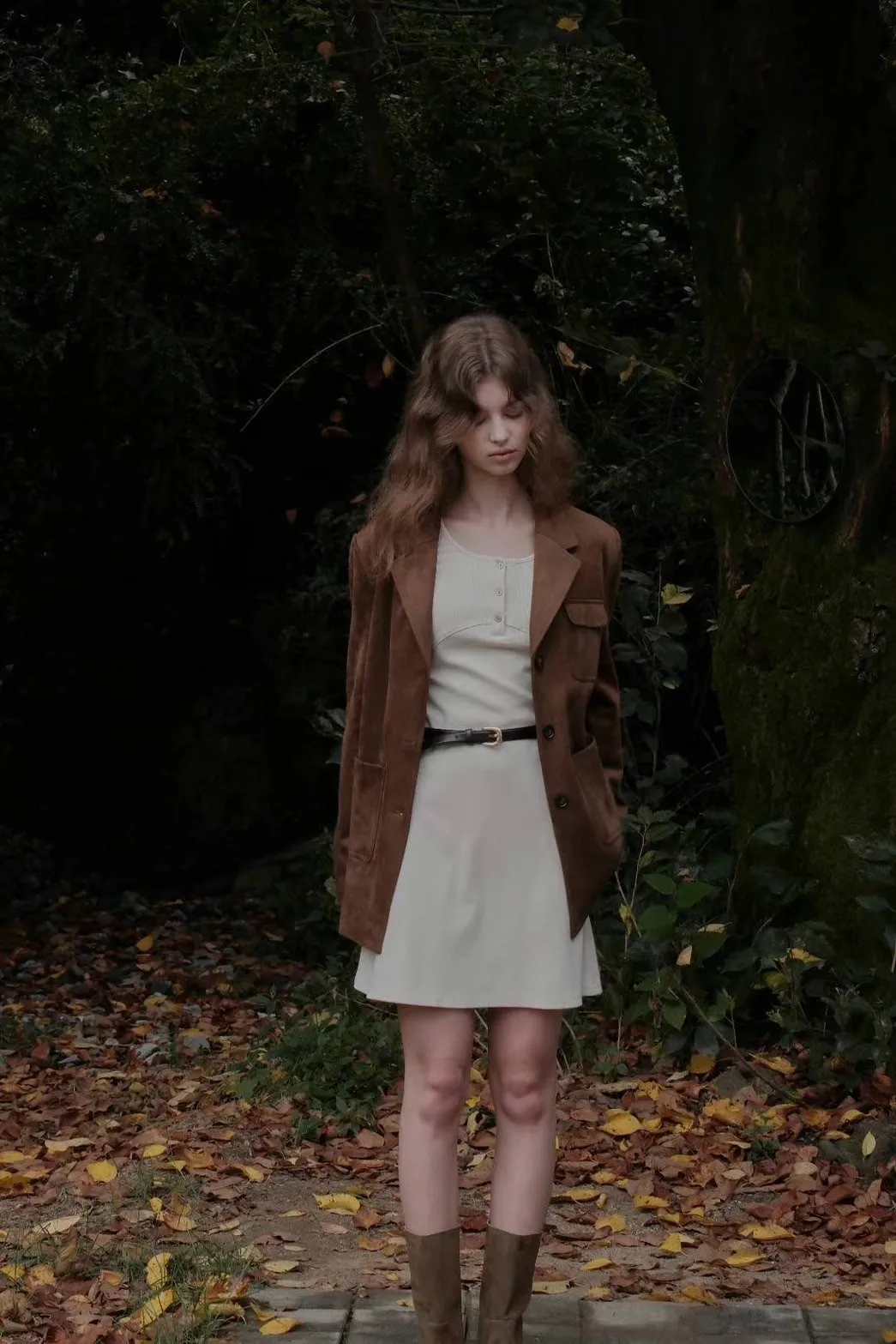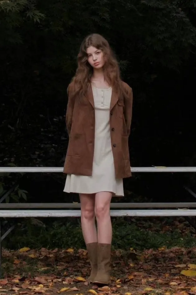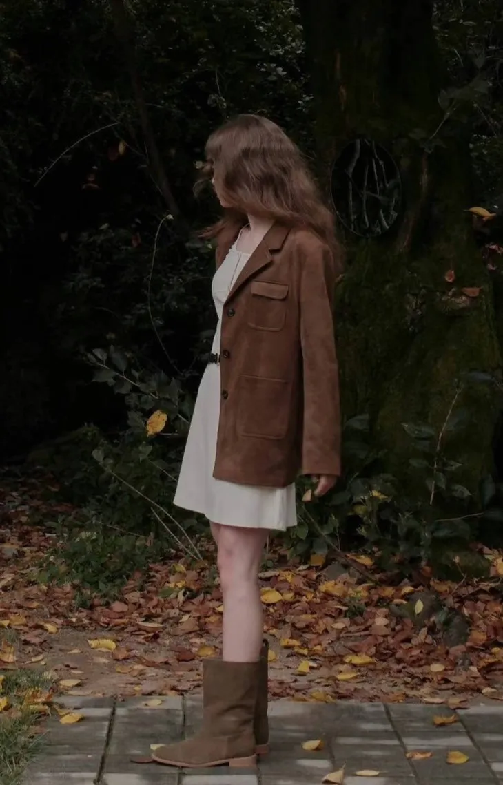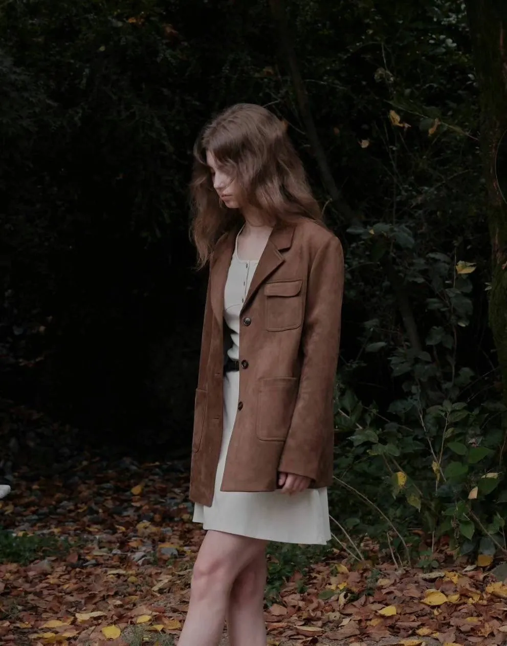 麂皮 有內理 三個口袋 西裝領 有墊肩